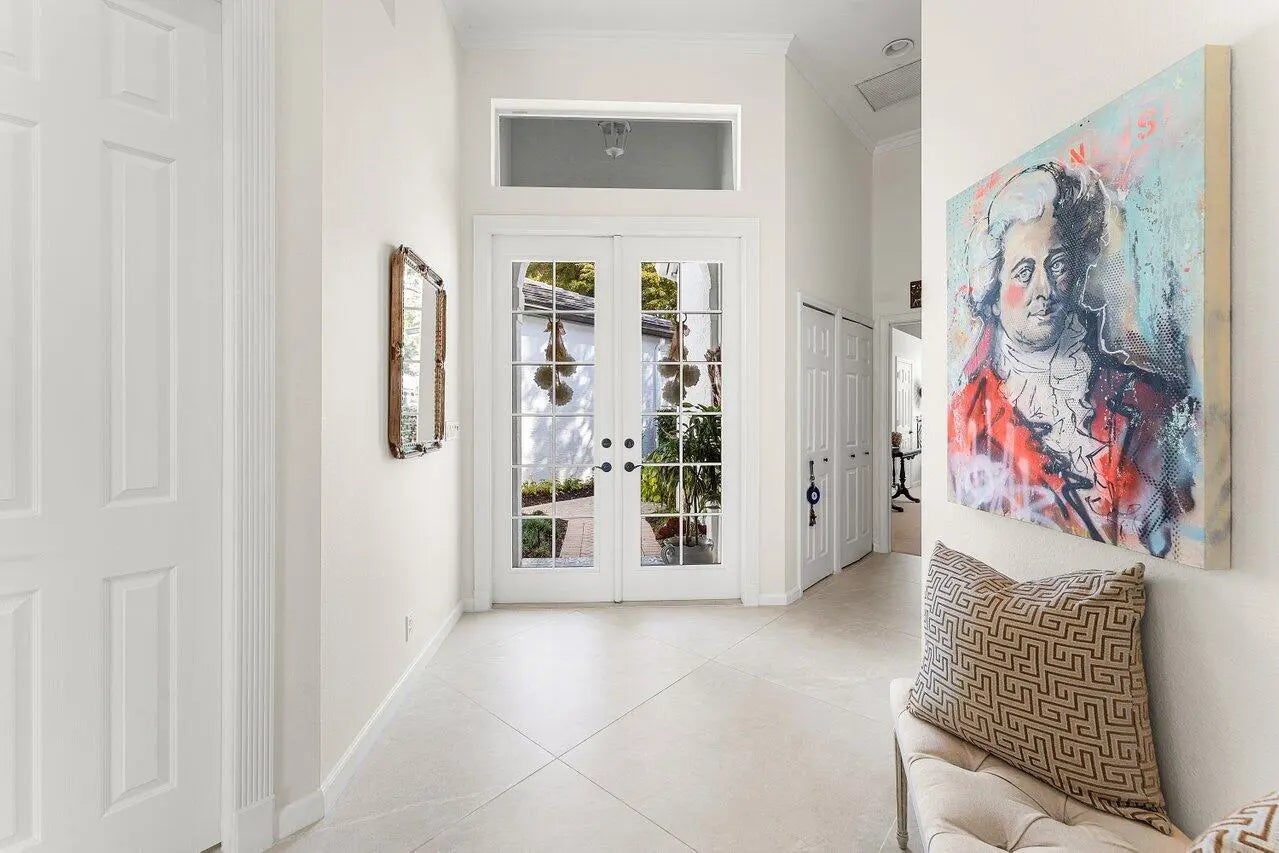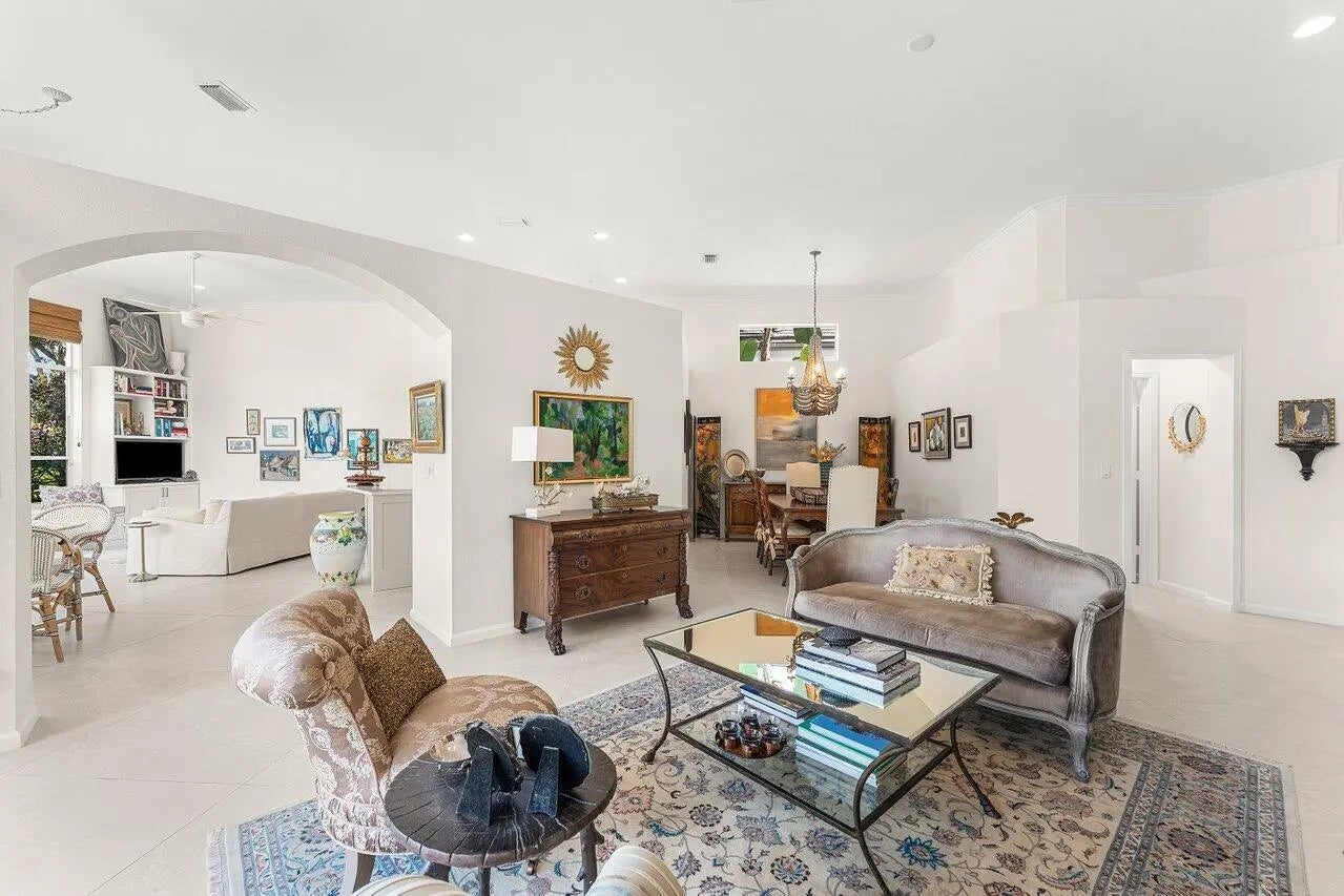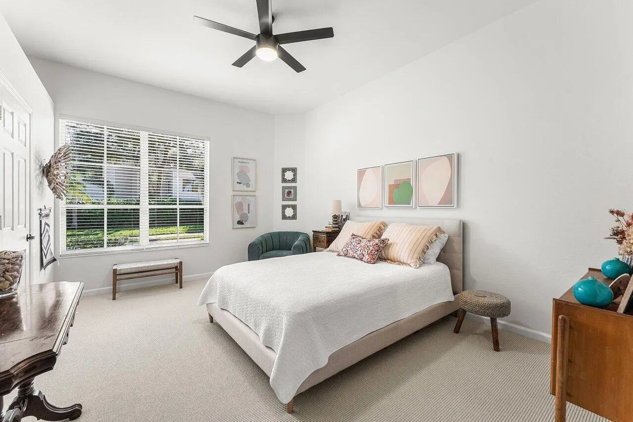 Immediate Full Golf Membership Opportunity! Skip the waitlist! Welcome to 112 Sunset Bay Drive in award-winning BallenIsles Country Club. Set at the Professional tee box of the picturesque 9th Hole, Par 5 of the South Course, this charming home enjoys some of the most magnificent sunsets in all of BallenIsles given its' Western rear exposure! This beautifully renovated home offers timeless style and creates a sense of calm the moment you arrive. Featuring 3 bedrooms (one of which is currently an office), 2 ½ baths and 2 car garage, the meticulously maintained 2,193sf living space is designed with classic finishes offering serenity in perfect balance with practical use. Upon entry, beautiful 40x40 imported Portuguese porcelain tile and soaring 12 foot ceilings create an open, airy interior. Floor to ceiling windows and sliding glass doors allow for abundant light and brightness throughout the home. The fully renovated kitchen, bathrooms, laundry room, new flooring and custom cabinetry throughout along with a 2018 new roof allow you to enjoy this move-in-ready home from the day of purchase! The Gourmet Kitchen showcases beautiful white and pale blue shaker cabinetry, stainless appliances, a gas range, thoughtfully planned pantry and abundant storage. Adjoining the kitchen is a breakfast nook and cozy family room with a built-in window seat offering the perfect place to relax and unwind while taking in the outdoor view of the patio and golf course. The Primary Suite features an extremely large closet fitted with custom built-in shelving. The fully updated spa-like Primary bathroom showcases dual vanities with custom cabinetry topped with gorgeous porcelain. The stunning porcelain also surrounds the bathtub and continues with fabulous full slabs in the shower offering seamless cleaning. A private water toilet completes the large Primary bathroom. The Guest Bedroom is oversized providing space for guest seating and plenty of room to add a desk for remote work. The En-Suite guest bathroom has an updated vanity and flooring. The Office/Den can easily be converted into a 3rd bedroom and adjoining half bath can also be converted into a full bath. The redesigned interior laundry room with beautiful Spanish tile, sink and cabinetry from California Closets offers a pleasing welcome when entering the home from the garage. Step outside into the spacious patio which can either offer privacy or allow for great views of the golf course. Perfect for entertaining and taking in the beautiful sunsets! Sunset Bay offers a neighborhood pool just a short walk away. Don't miss your opportunity to secure your Full Golf Membership (mandatory purchase in addition to the home price) and begin enjoying all of the amenities and leisurely lifestyle of BallenIsles! Ballenisles Country Club is recognized as a 5-star platinum rated club offering world class amenities and facilities with three championship golf courses, a top rated tennis & pickleball facility, beautiful newly renovated clubhouse and sports complex, six dining options, fitness center, spa & salon, community pool, dog park, walking paths, and so much more!