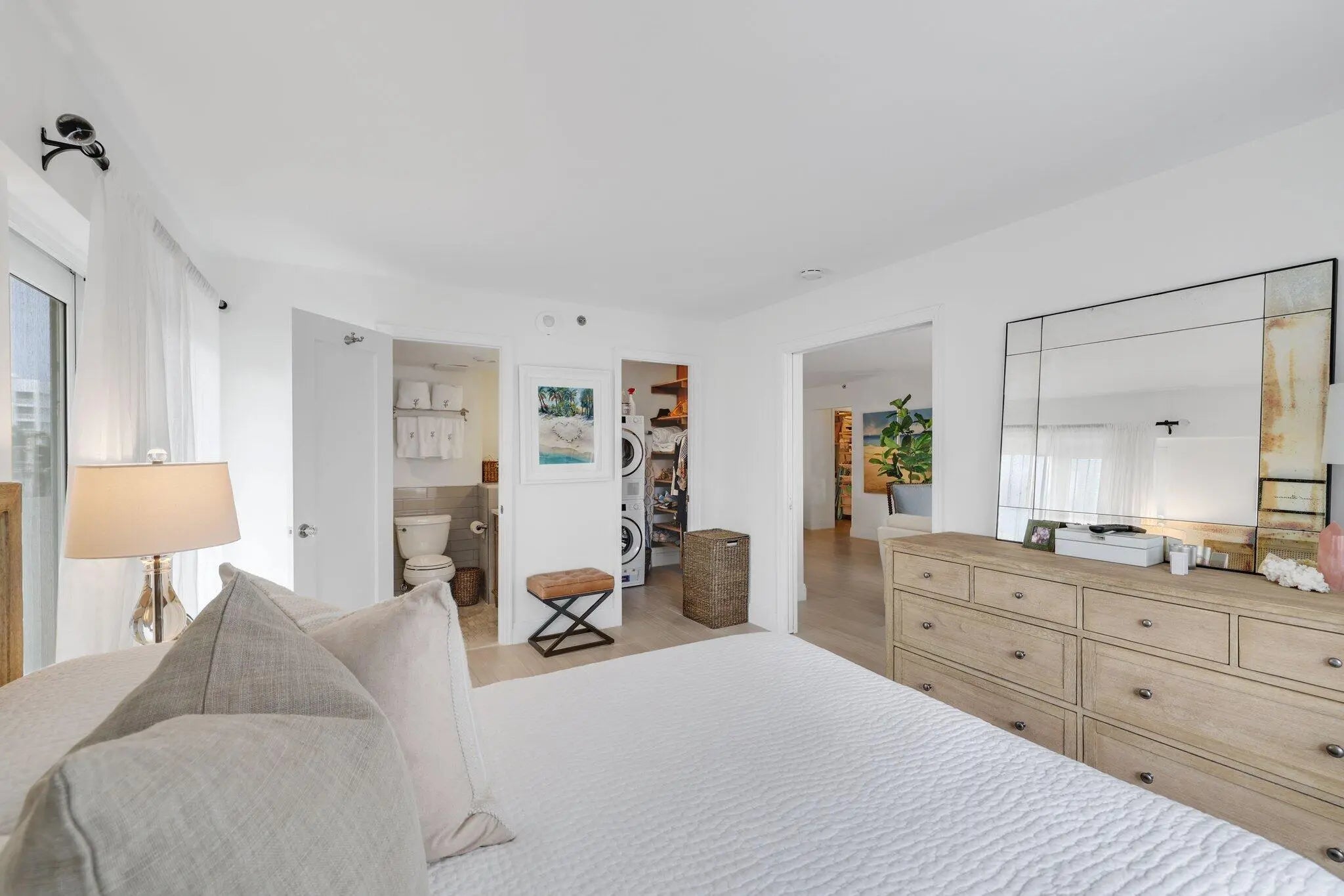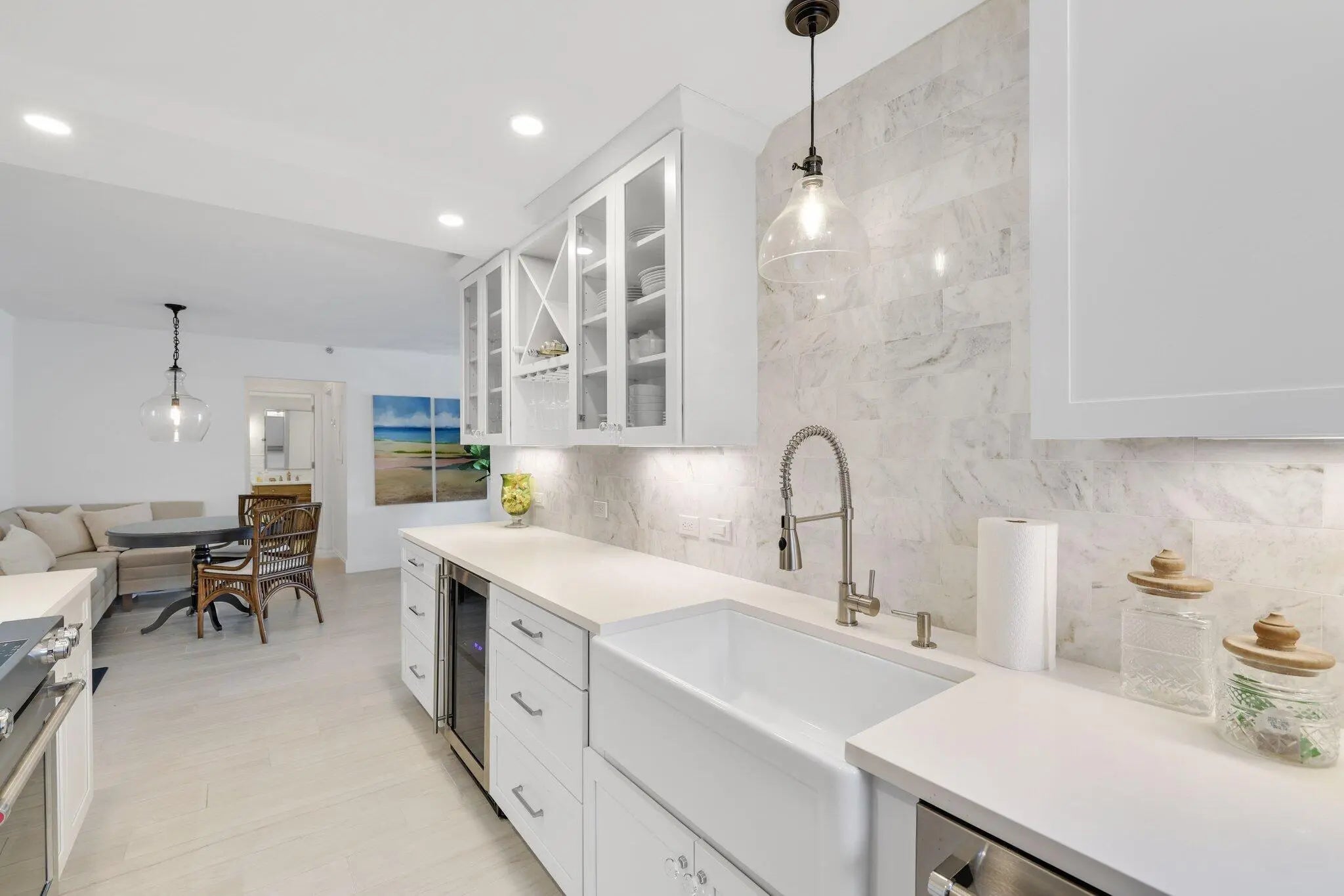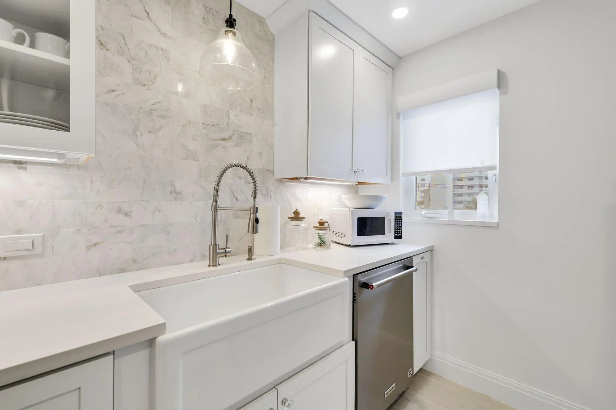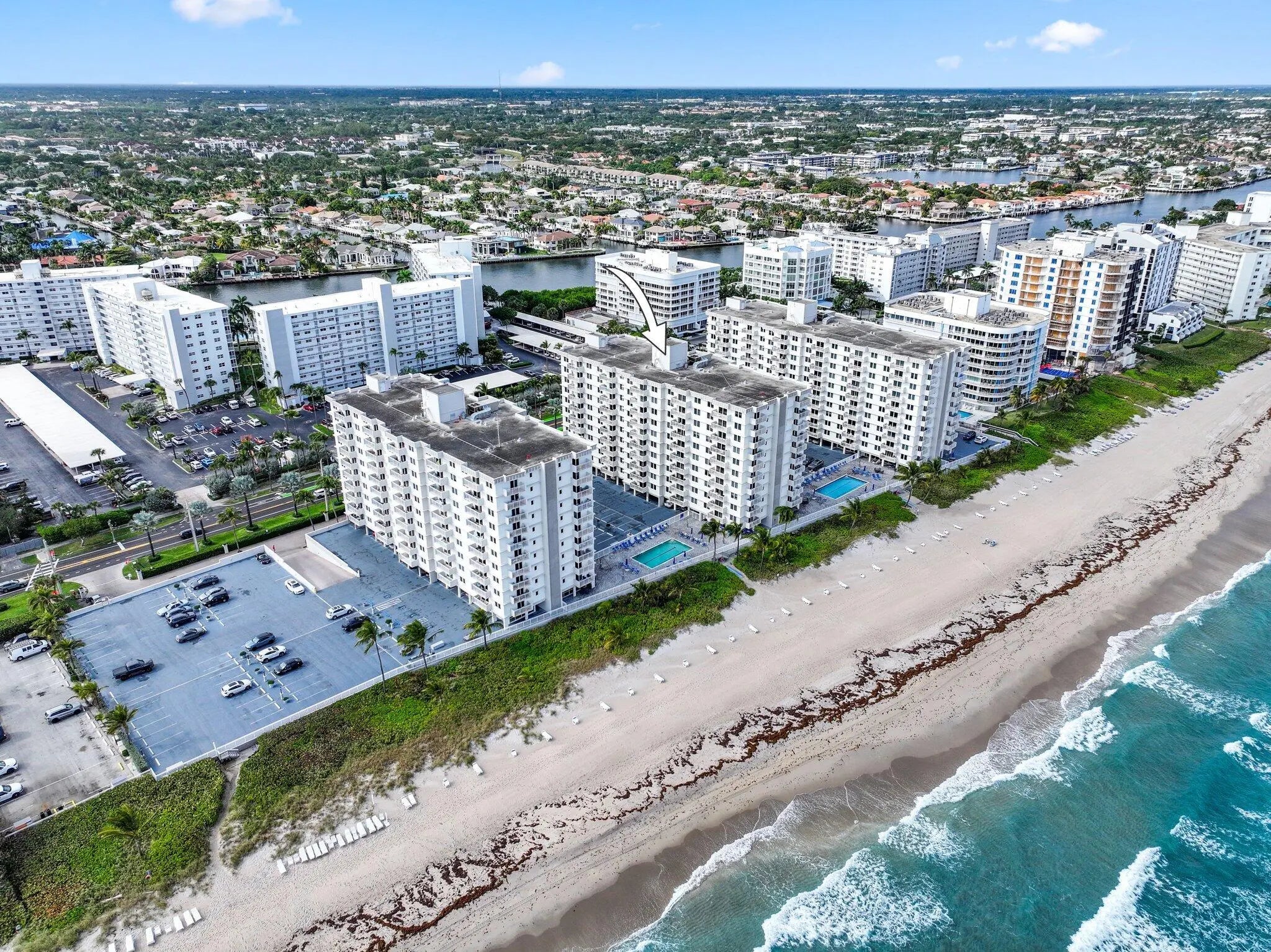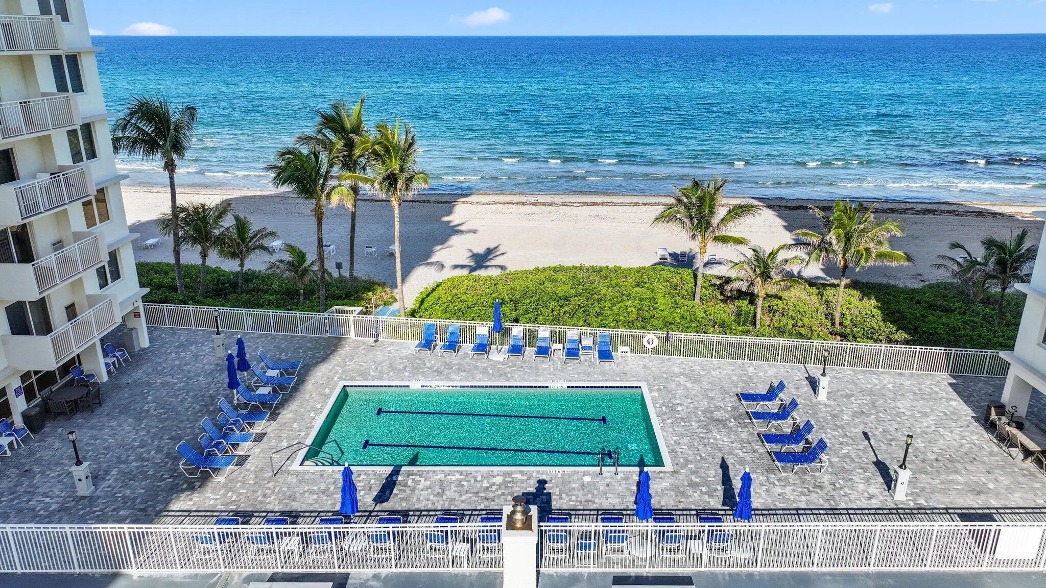 Live the ultimate Florida lifestyle at Ambassadors East, ideally situated directly on the ocean in beautiful Highland Beach. This furnished 2-bed, 2-bath condo has undergone a complete renovation, offering an open, airy layout & high-end designer finishes. Interior upgrades include custom interior doors, ceramic plank-style flooring, custom closets, and remote-controlled window shades. The custom kitchen features new stainless steel appliances, quartz countertops, marble backsplash, and farmhouse sink. A soft, neutral palette creates a timeless coastal feel, while impact glass provides added peace of mind. The bathrooms showcase marble flooring and custom showers, creating a spa-like retreat. This corner unit condo features 2 balconies with panoramic ocean and city views. Additional improvements include a new air conditioning system, new hot water heater and Miele washer and dryer. Enjoy ocean views from the open balconies and resort-style amenities including a heated pool, fitness center, and private beach access. Ideally located between Boca Raton and Delray Beach, just minutes to Atlantic Avenue's renowned dining and shopping, with convenient access to area airports. Highland Beach is truly a coastal gem and this condo is an exceptional place to call home.