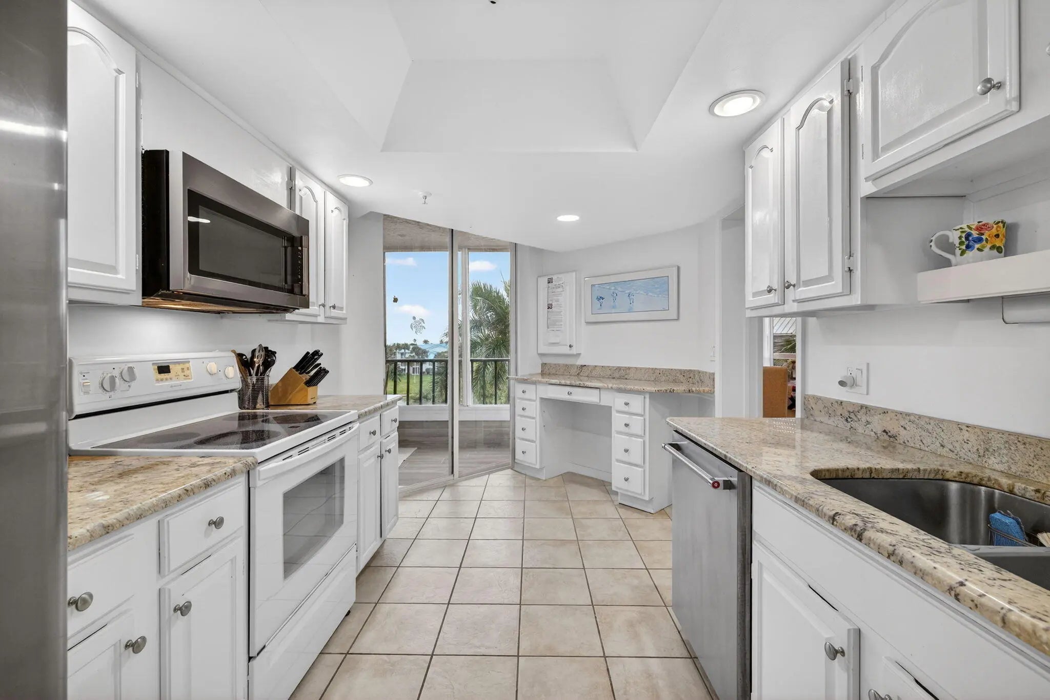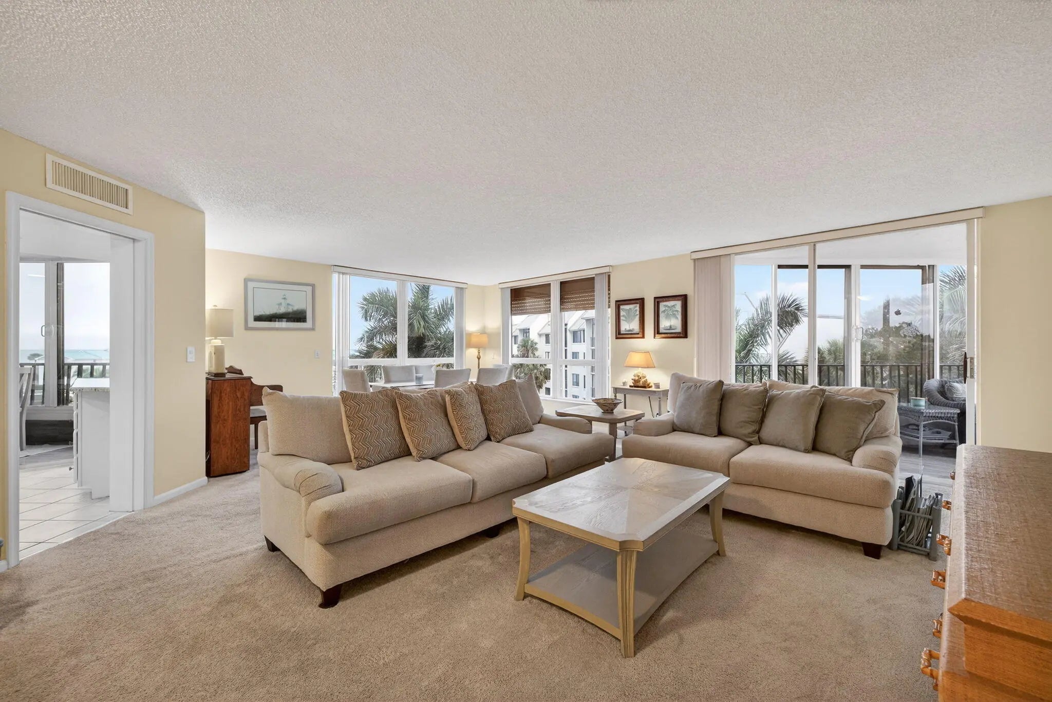 Beautiful 2 bedrrom 2 bath furnished condo in ''Seascape 1'' at Ocean Village. This unit has a one car garage & extra storage. Beautiful ocean & pool views from this 4th floor end unt. Spacious split bedroom floor plan. Great rental potential if owner so desires. Seascape I has a private pool, large recreation rooms, two elevators per building, large lobbies & beach access. Enjoy the ultimate Florida lifestyle at this beautful oceanfront community offering resort style amenities, 24 hr gated entry, 9 hole par 3 golf, tennis, pickleball, bocce ball, 4 heated pools, new clubhouse & fitness center, oceanfront restaurant & tiki bar & 3500 feet of oceanfront. Located on South Hutchinson Island with 21 miles of uncrowded & unspoiled beaches. Measurements approximate.