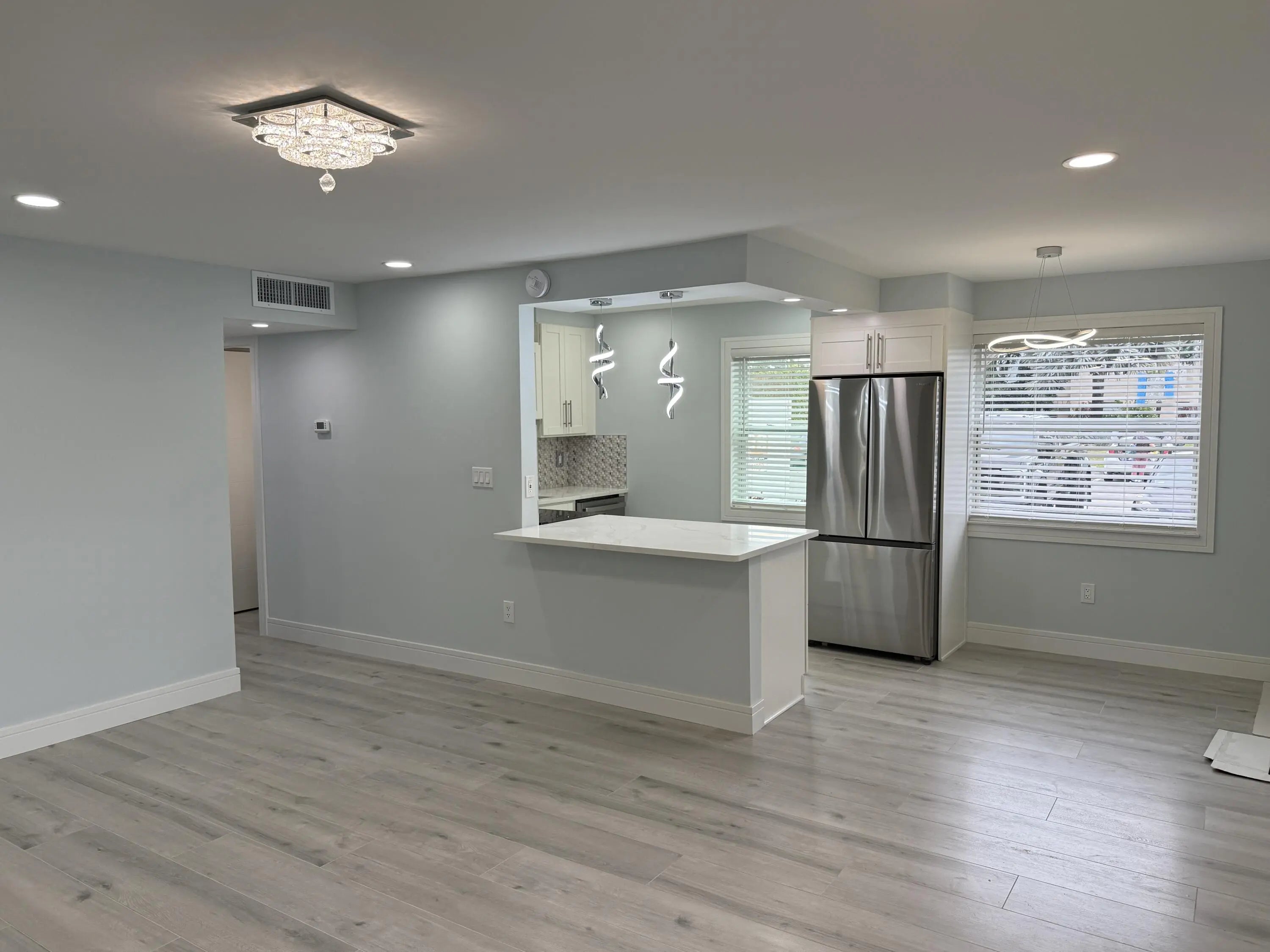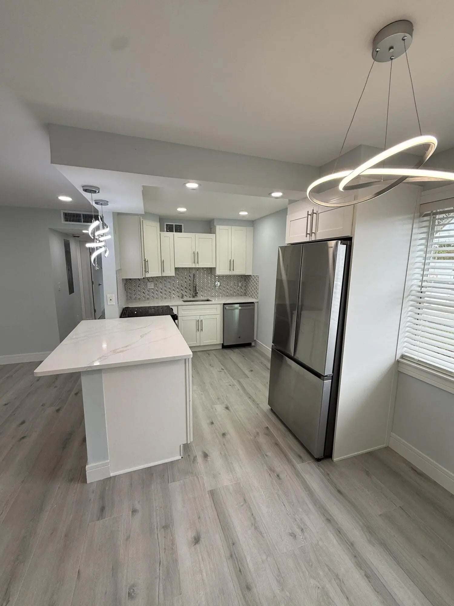 Experience resort-style living at Kings Point in this stunning, fully renovated first-floor corner unit. This elegant home boasts granite countertops, high-end stainless steel appliances, custom wood cabinetry with deep drawers and pull-out shelving, LED lighting, and beautiful tile flooring throughout. Bathrooms showcase impeccable finishes, while custom-built closets add both style and functionality. Impact windows, a brand-new A/C, and a new water heater make this home completely move-in ready. Enjoy the lifestyle of this sought-after 55+ active community with golf, fitness center, and a lively clubhouse offering endless activities and events.