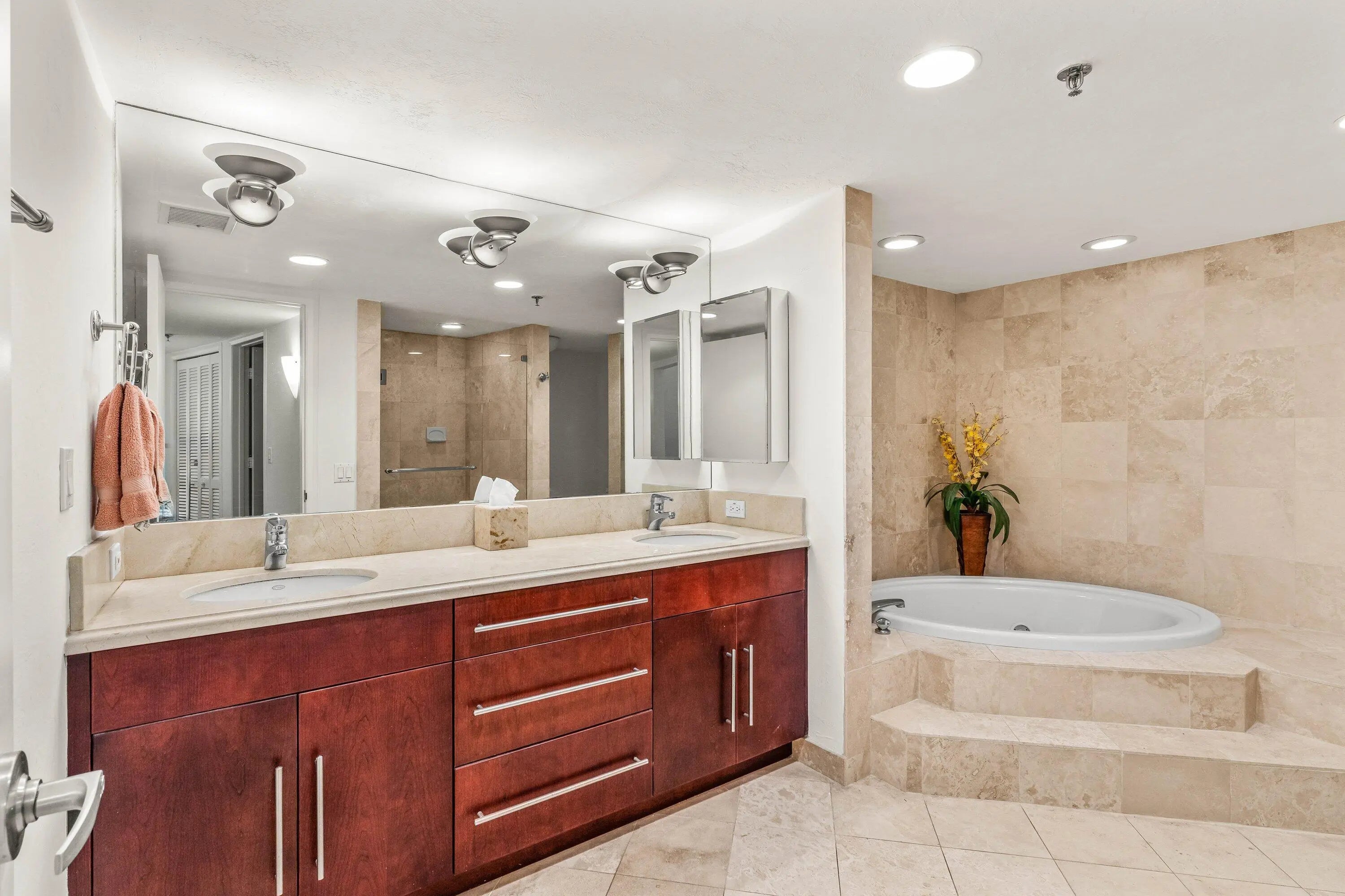 Waterfront home with spectacular, direct views of the Atlantic Ocean and Intracoastal from all main rooms. Spacious 3BR/2.5BA condominium encompasses nearly 2,500 square feet with east and west exposures. Corner residence features 2-private wraparound balconies with sunrise to sunset vistas. Renovation includes updates throughout with impact glass, travertine flooring, fresh paint and carpet. Gourmet open kitchen showcases quality cabinetry, stone countertops and stainless-steel appliances. The 3360-building provides 24-hour doorman, onsite manager and garage parking. Resort-like amenities include beach access, saltwater pool, tennis courts and fitness center. Short distance to Par 3 golf. Recently completed concrete restoration with assessment was paid by the seller.