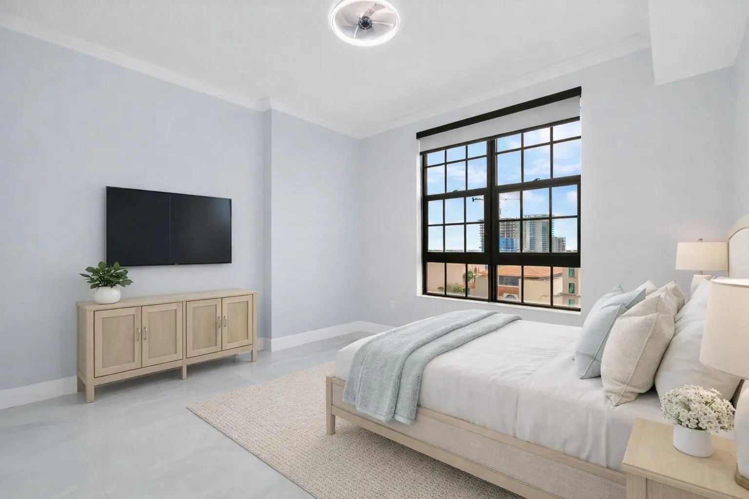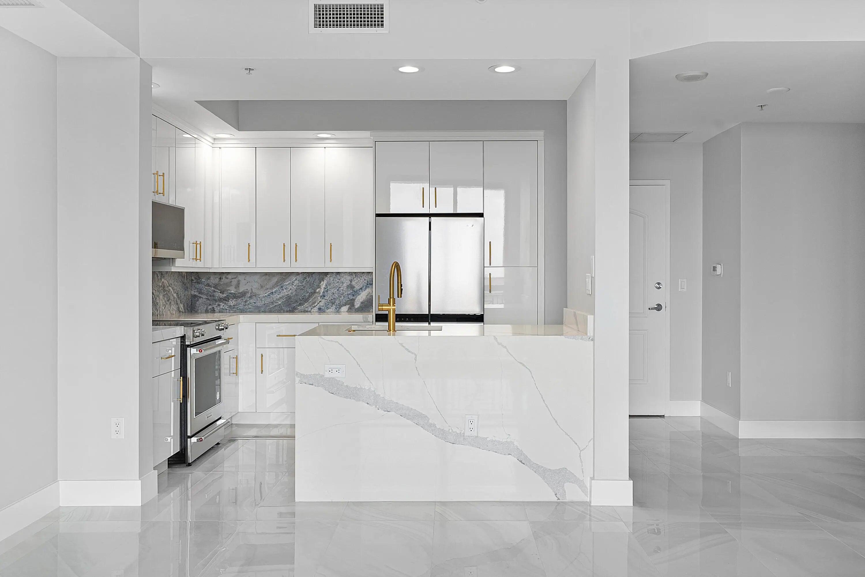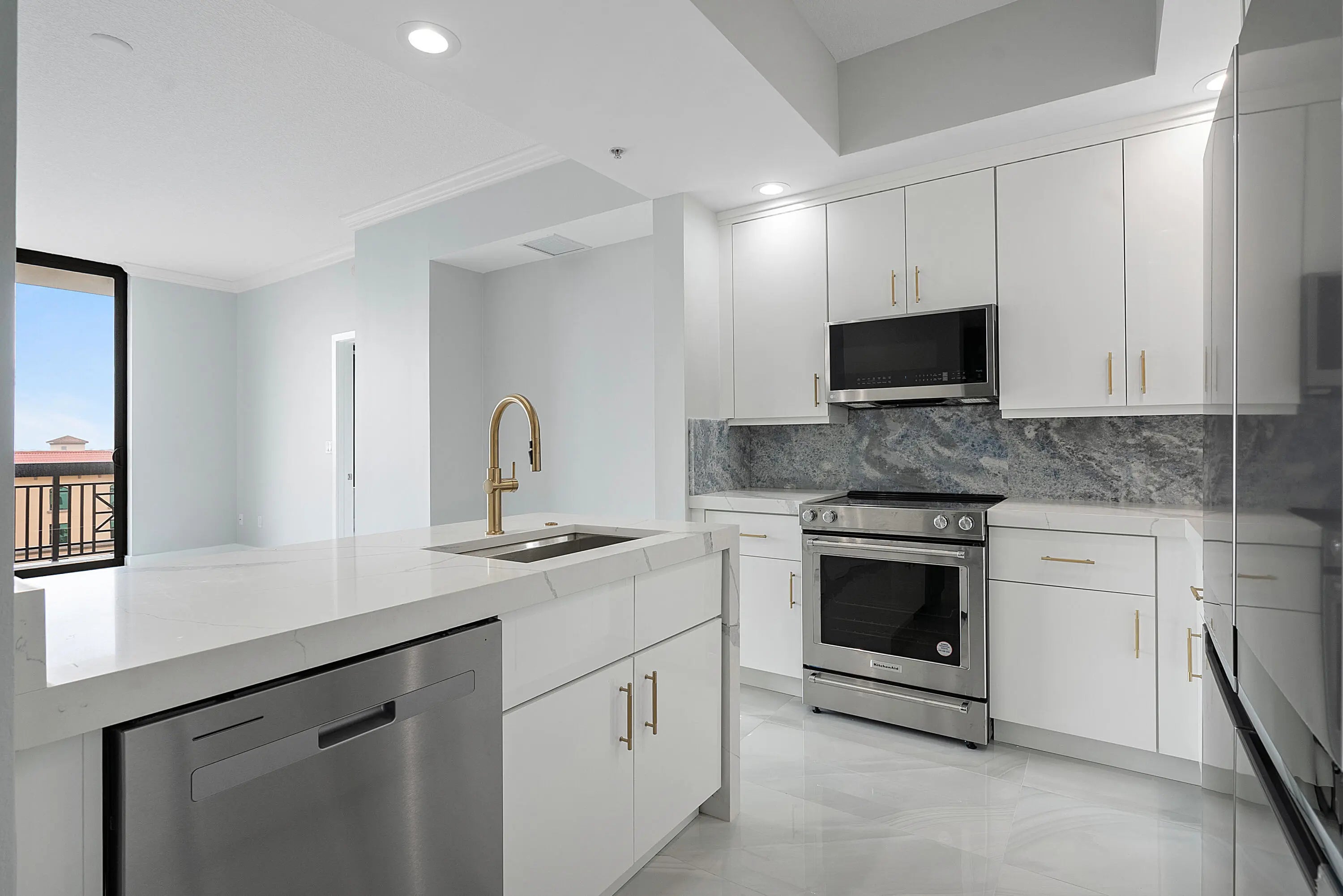 Welcome to a truly exceptional residence that will take your breath away from the moment you step inside. This magnificent home in the sky offers panoramic southeast views of the intracoastal and ocean while also boasting a stunning city sunset skyline. All framed with soaring 10' ceilings and floor to ceiling sliders to seamlessly connect the living and dining /kitchen spaces with the awe-inspiring surroundings. Featuring 2-bedroom, 2 fully renovated bathrooms plus den/ flex 3rd room. The newly remodeled kitchen is stunning, highlighting custom cabinetry, counters, backsplash and all new appliances. The flexibility of this residence is evident with a bonus 3rd room that can serve as a den, sitting/TV, or a third flex room. The spacious master suite is a sanctuary in itself, featuring.. a luxurious designer spa-like bathroom with a generous customized shower, all new cabinetry, counters and fixtures. It boasts an oversized fitted walk-in closet. The second bedroom, which also benefits from stunning intracoastal views, comes with a fully renovated incredible bathroom. Beautiful new flooring runs throughout the entire residence, adding a touch of luxury to every step. With 24-hour security, a dedicated concierge, complimentary valet parking, and an exceptional staff. And when it's time to venture out, you're just across from One Flagler, minutes away from the convenience of PBI Airport, the elegance of Palm Beach Island, the vibrant atmosphere of The Square, and much more. This is more than a residence; it's a lifestyle where every day is filled with unparalleled beauty and comfort.