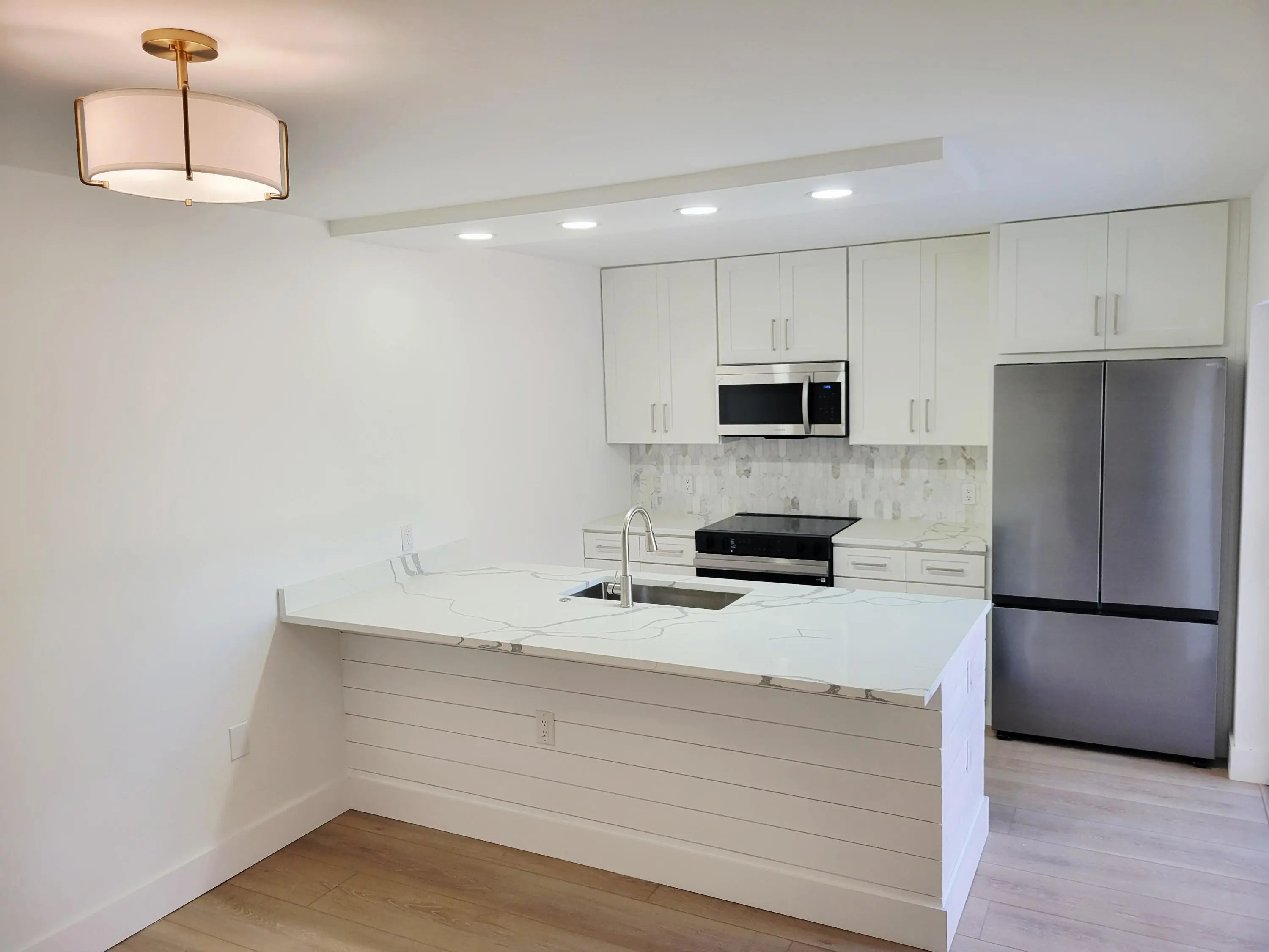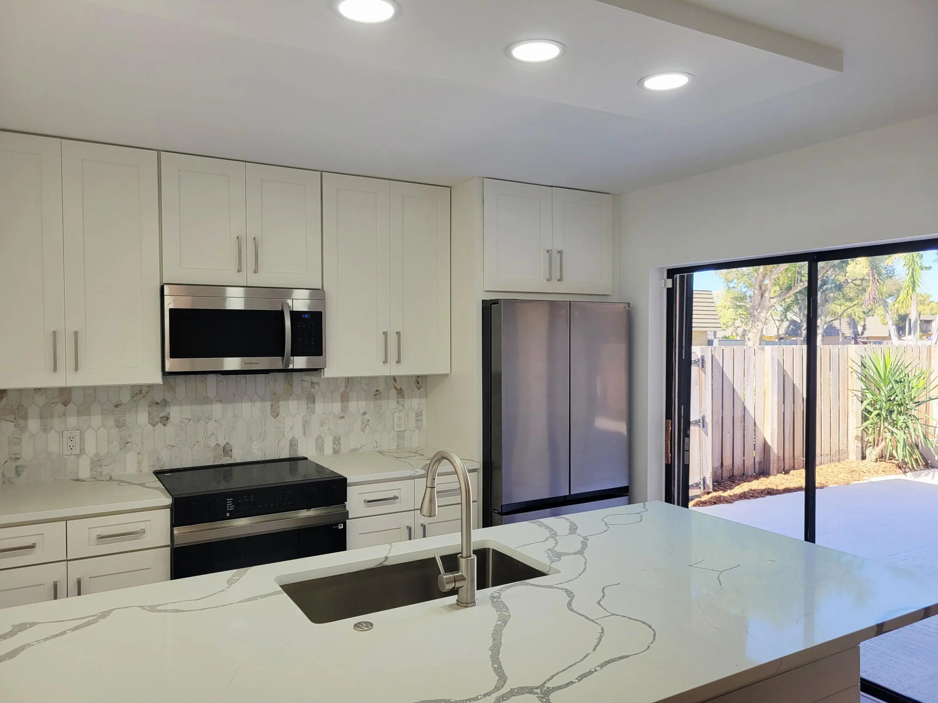 :If you're looking for a townhome with everything new, this is the one! New fixtures, flooring , cabinetry, trim and more. This newly renovated townhome will not disappoint! All new 3/4'' solid kitchen cabinets and vanities with quartz and Calcutta tops. Flooring in main areas is 100% waterproof with a 40 year warranty. The master bath is outfitted with double sinks and a frameless shower enclosure with modern fixtures. AC replaced in 2021. Accordion shutters for all openings.! Call Glenn for a showing ...this won't last!