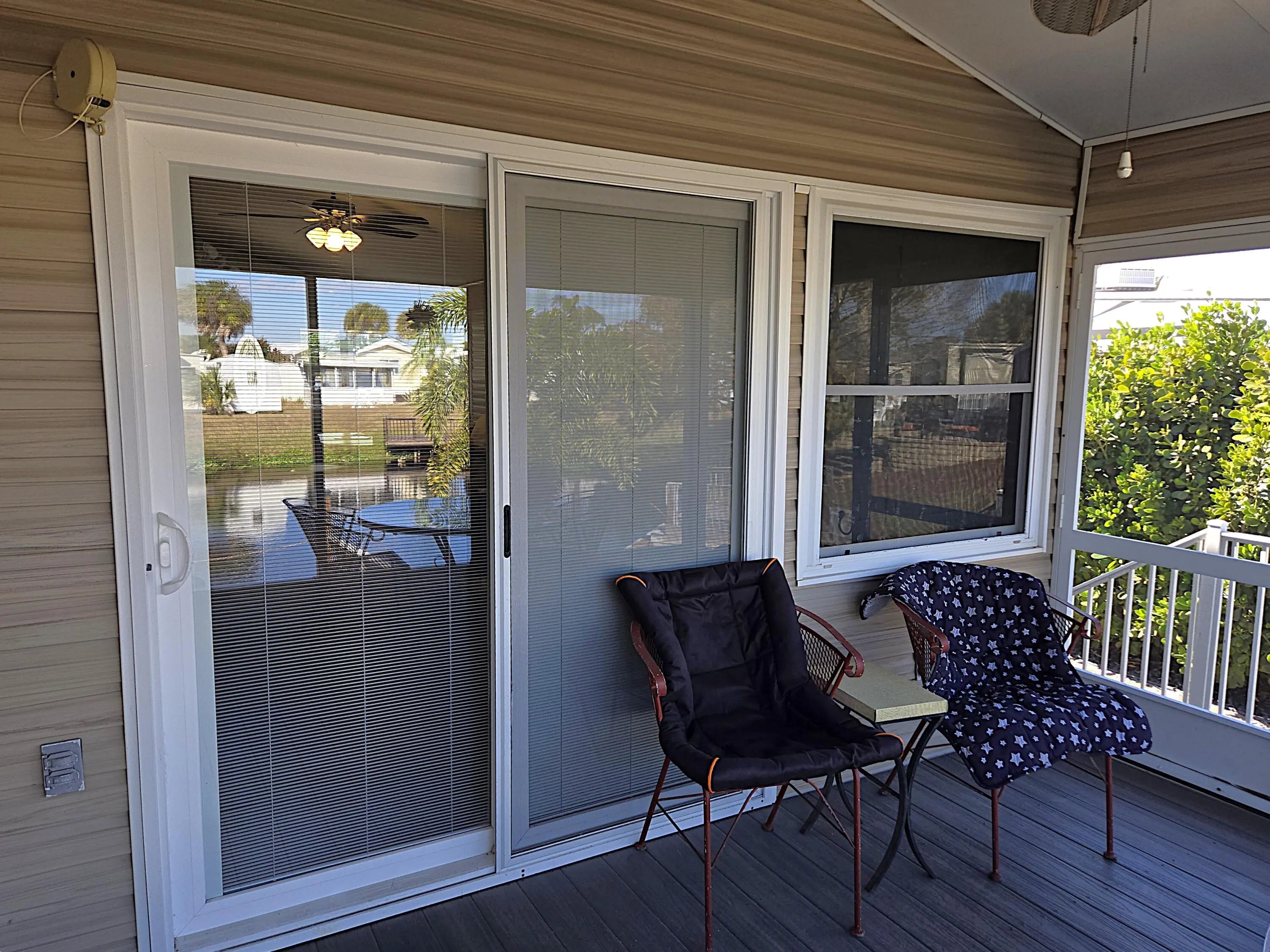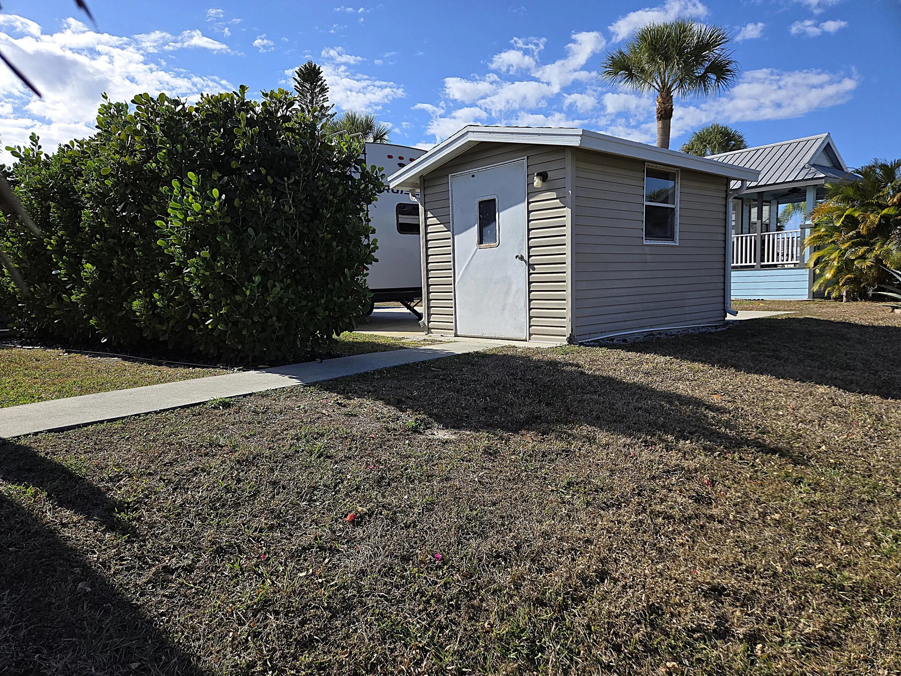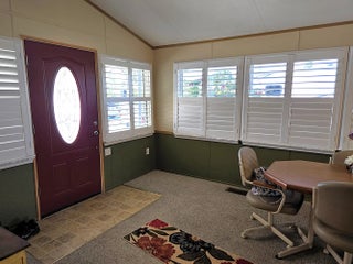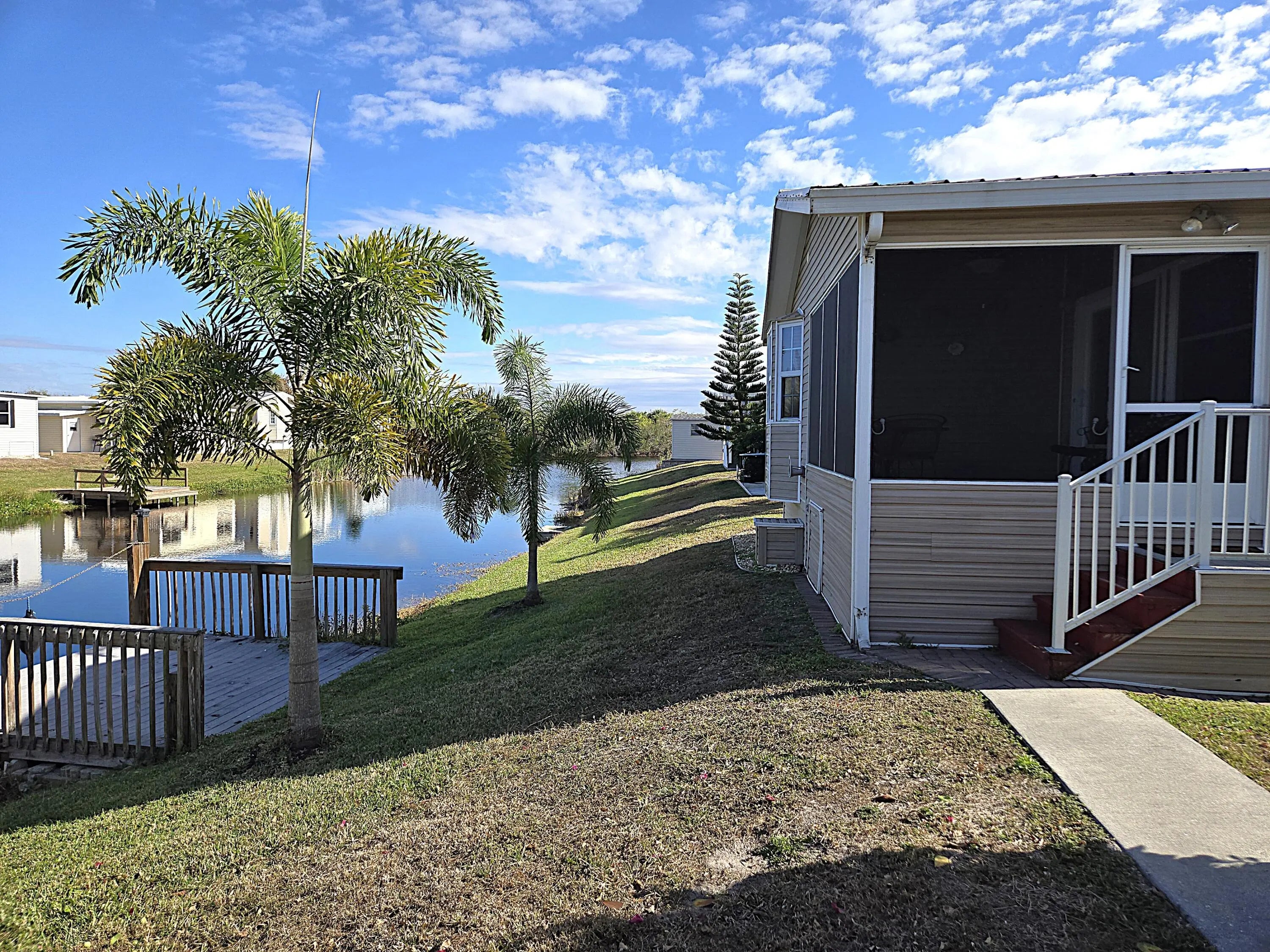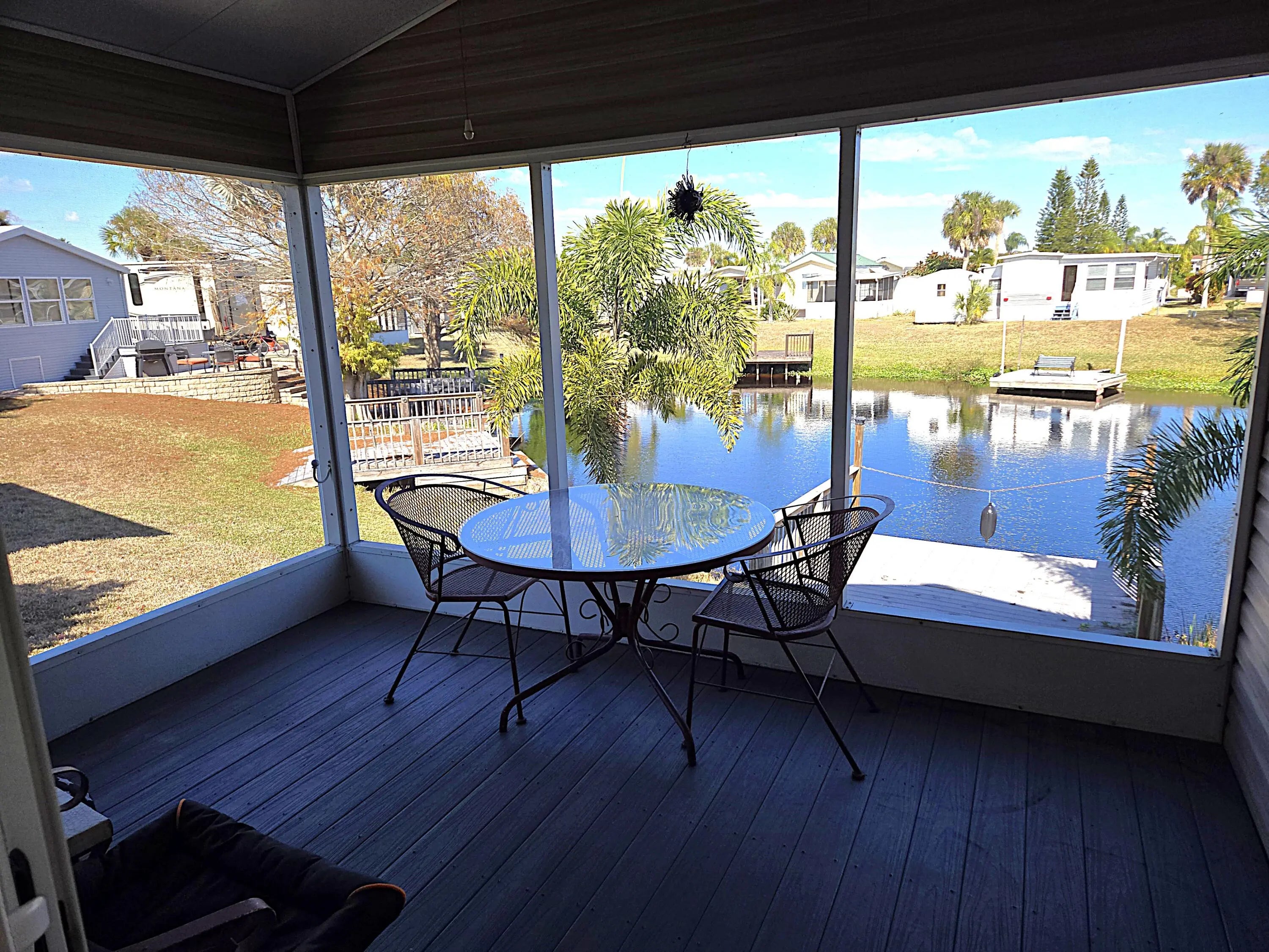 BLUE CYPRESS GOLF & RV RESORT - Bring the toothbrush - this METICULOUS 2bd 1 ba furnished home is waiting for you! With 974 sf under air and a total of 2.785 sf under roof this home offers a perfect winter retreat or that retirement home you've been looking for. Family/Dining room features window-lined wall w/plantation shutters. Kitchen features tons of storage w/a built-in hutch. Pantry. Large Master w/bay window. Spacious closet. Plenty of walk-around space. Pocket Doors. Wood Encased Windows. Indoor laundry. Screened porch offers picturesque views of the water. Paver drive provides ample parking for car(s), boat & golf cart. A 12x12 workshop is perfect for afternoon tinkering. Perfect location for golfers and boating enthusiasts. Dock space & ramp . Don't miss out on this one