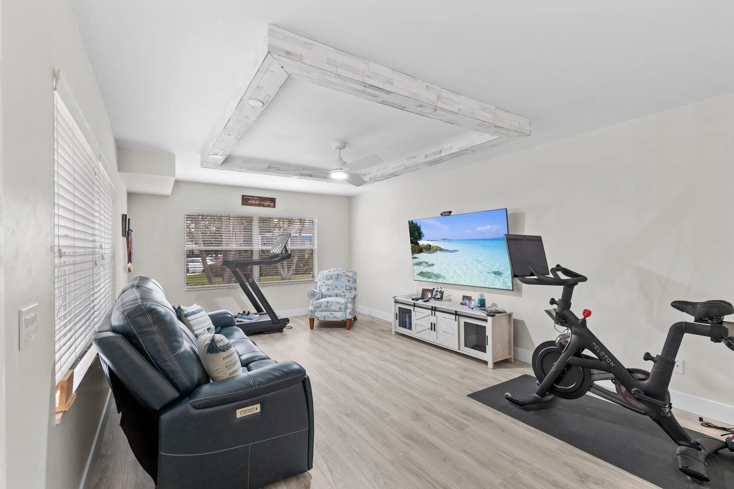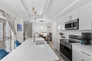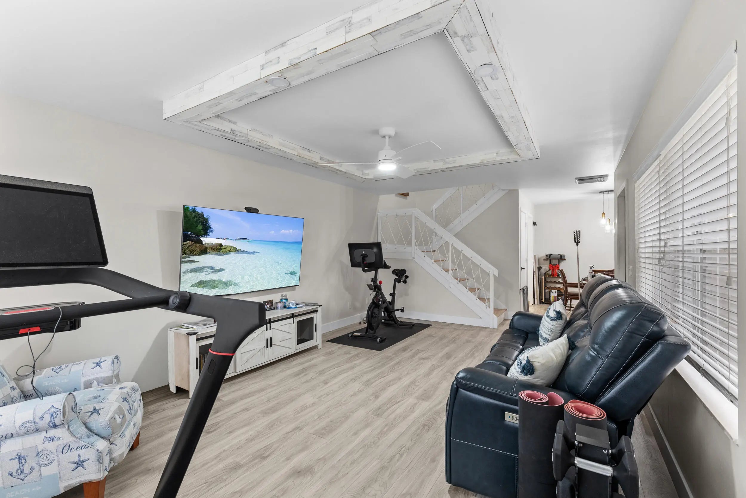 This renovated townhouse has been thoughtfully updated from top to bottom with a fresh, coastal feel. Laminate flooring flows throughout, leading into a bright, open kitchen with quartz countertops, stainless steel appliances, and a redesigned layout with a separate island—perfect for everyday living and easy entertaining. The living room features custom touches like a lowered ceiling for updated electrical, added high-to The living room has been thoughtfully customized with a lowered ceiling to accommodate updated electrical, added high hat lighting, and a ceiling fan, creating a cozy and functional space to relax. Bathrooms have been refreshed with new vanities and flooring. Updated closets feature built-in organization and barn doors, blending smart storage with a relaxed coastal look. Closets are upgraded with built-in organization and barn doors, accordion shutters offer peace of mind, and the big updates are already done—AC 2019 and roof 2018. Bonus: HOA includes wifi and cable and it is close to all shopping and major highways, making life just a little easier. Move-in ready. Well cared for. Easy to love.