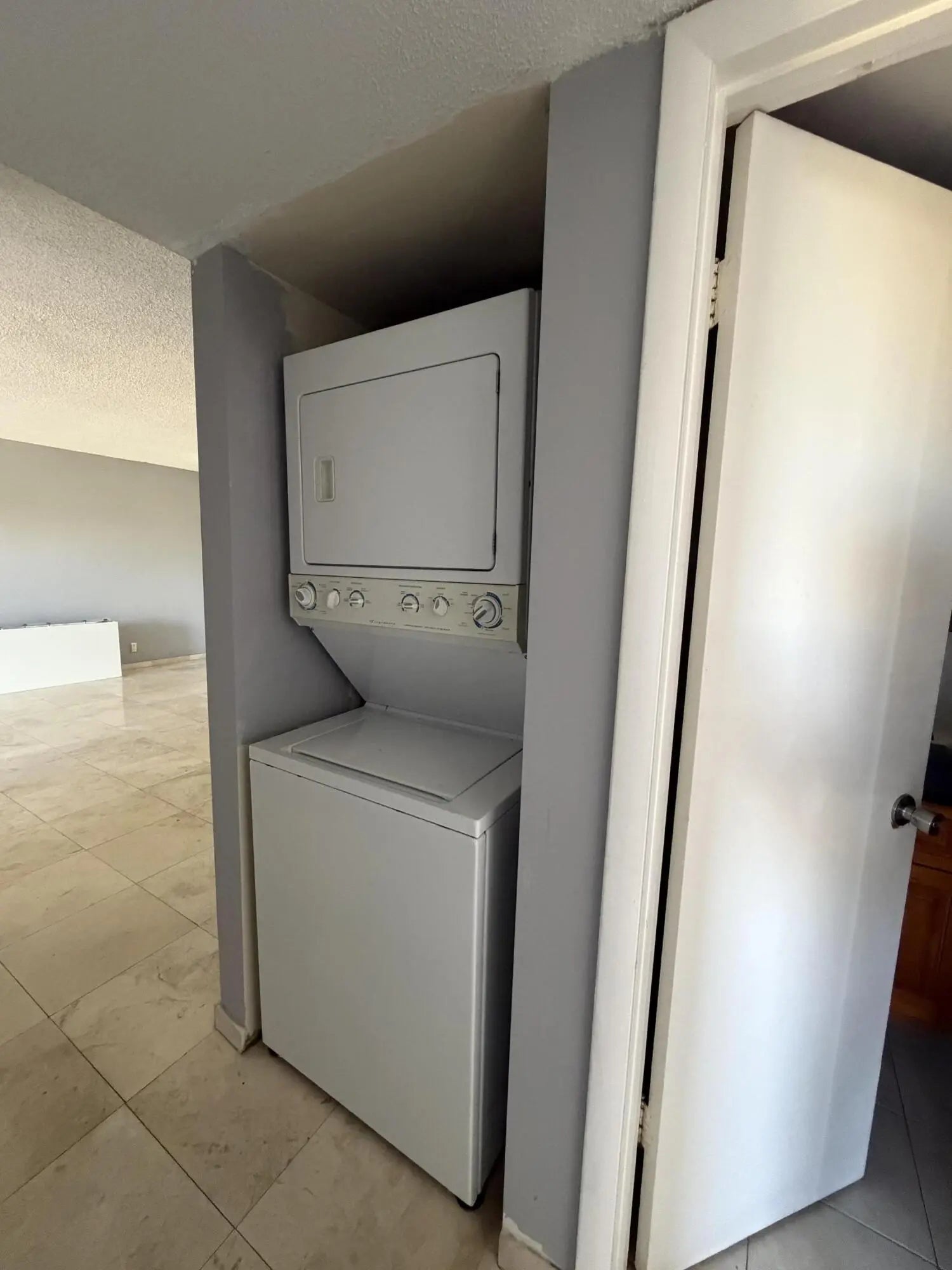 Perfectly located in central West Palm Beach! This spacious 2BR/2BA unit features a carpet-free interior, in-unit washer/dryer, elevator access, accordion shutters for storm protection, and a screened balcony with pool views. Water and internet included. Gated lobby, community pool, 2 parking spaces plus guest parking. Building interiors have been freshly painted with new hallway carpeting on every floor. Minutes to Downtown WPB, CityPlace/Rosemary Square, Palm Beach Outlets, beaches, dining, markets, hospitals, I-95, PBI Airport, and Brightline/Amtrak. No pets.