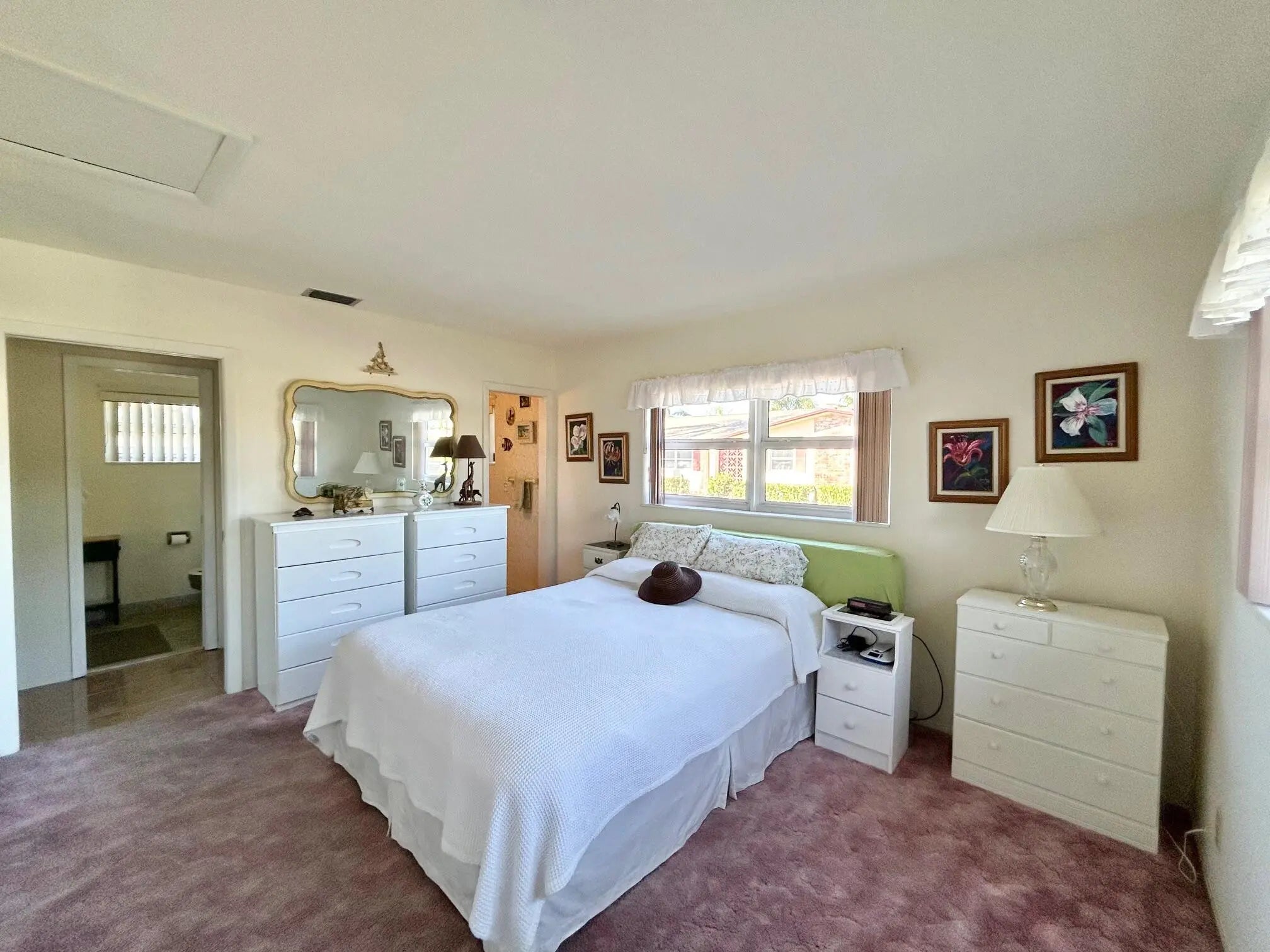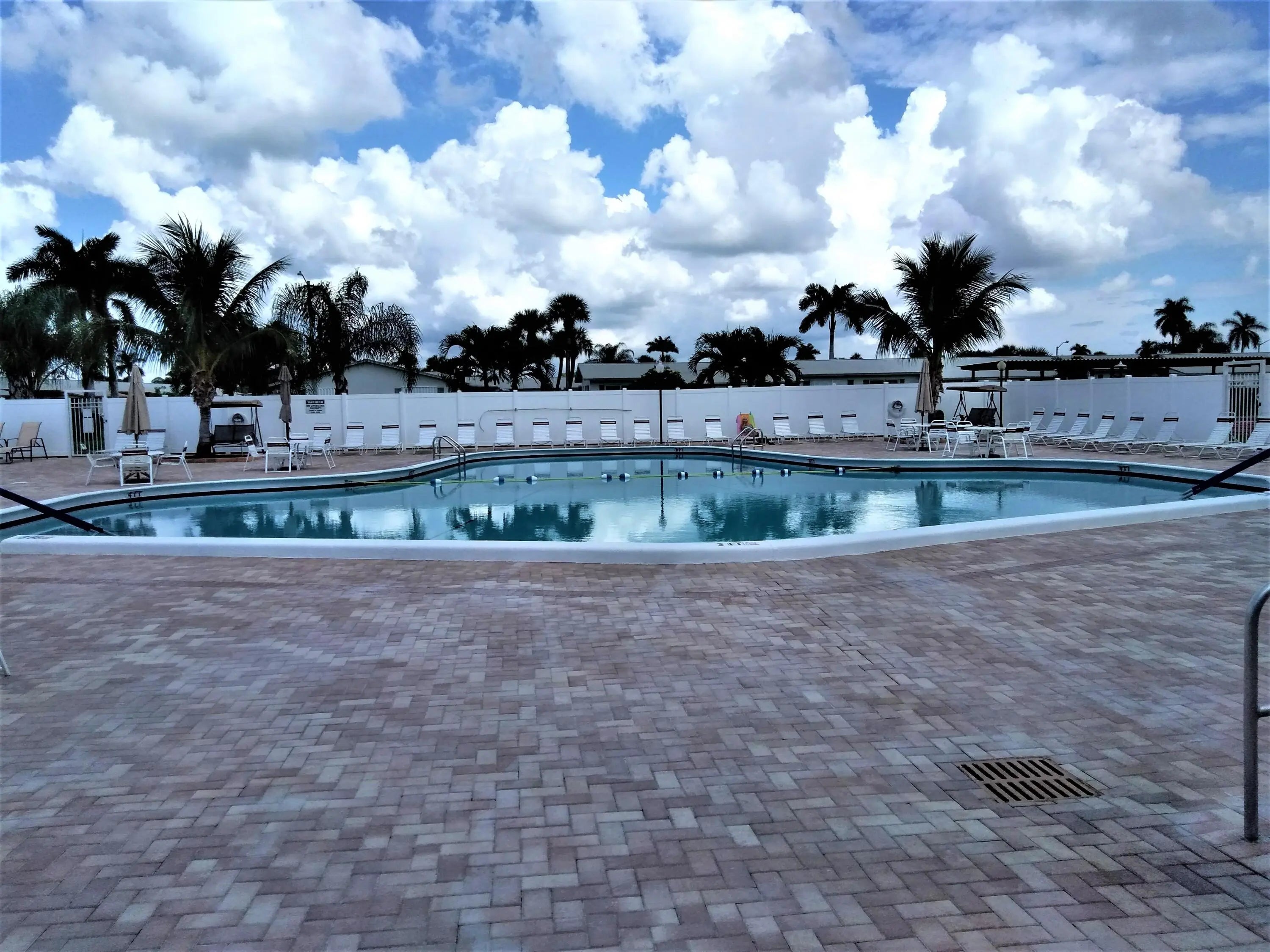 LOCATION, LOCATION !!! Don't miss out on this one. Located right across from the clubhouse and all the activities. This charming CORNER VILLA is a 1 bedroom 1 1/2 bath with NEW ROOF, HURRICANE IMPACT WINDOWS, NEW ELECTRIC PANEL AND NEW A/C. The spacious bedroom features windows on 2 walls making it light and bright, a full wall closet and ensuite bathroom. Linen closet, double length coat closet and walk in storage room on back porch. Enclosed back porch has new glass windows and overlooks the clubhouse. Patio's and BBQ grills are allowed. Service & emotional support animals welcome. Low monthly maintenance of $434 includes water, cable & internet. No assessments. Amenities include clubhouse, heated pool, fitness center. Community is close to shopping, bus service, medical and the BEACH!