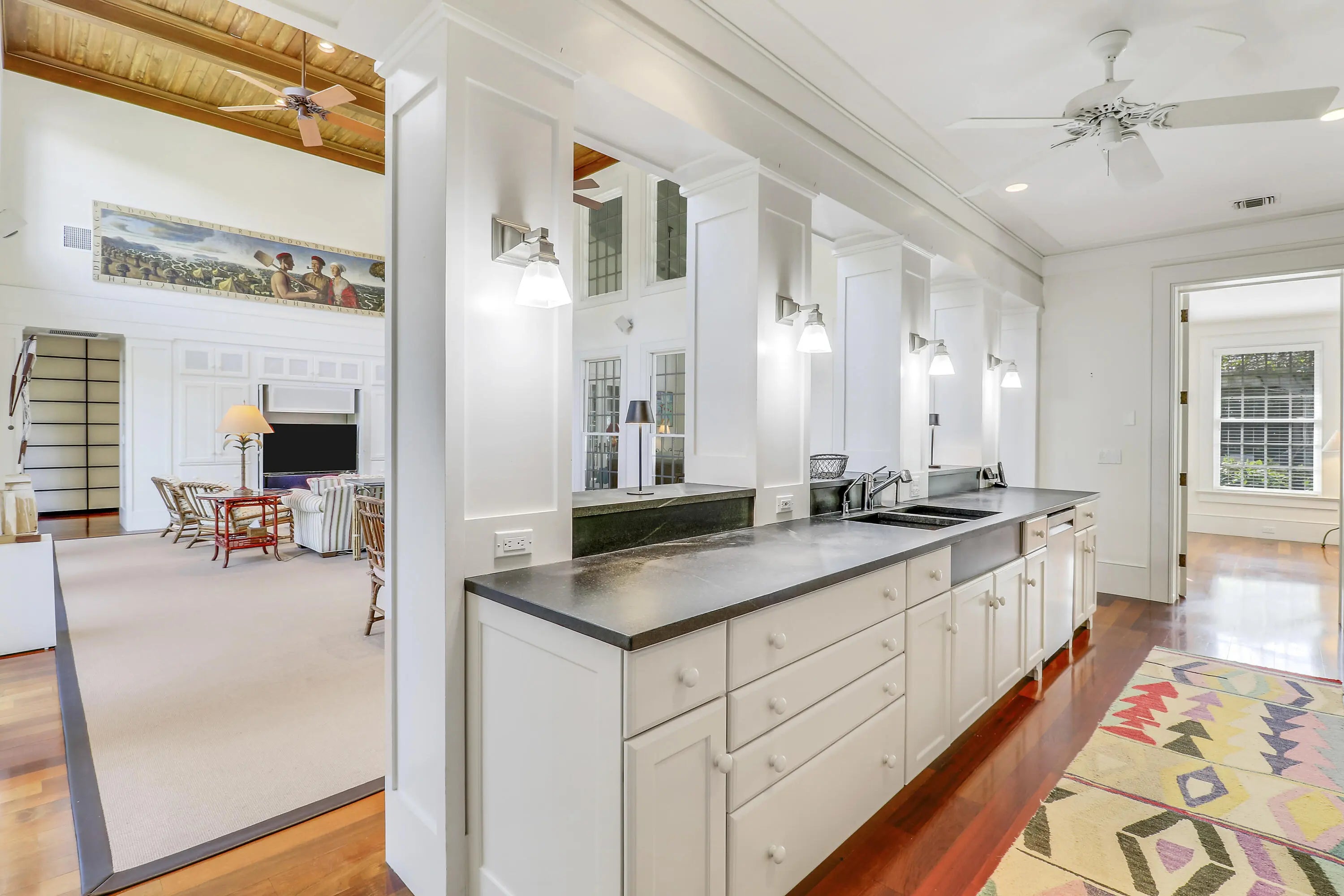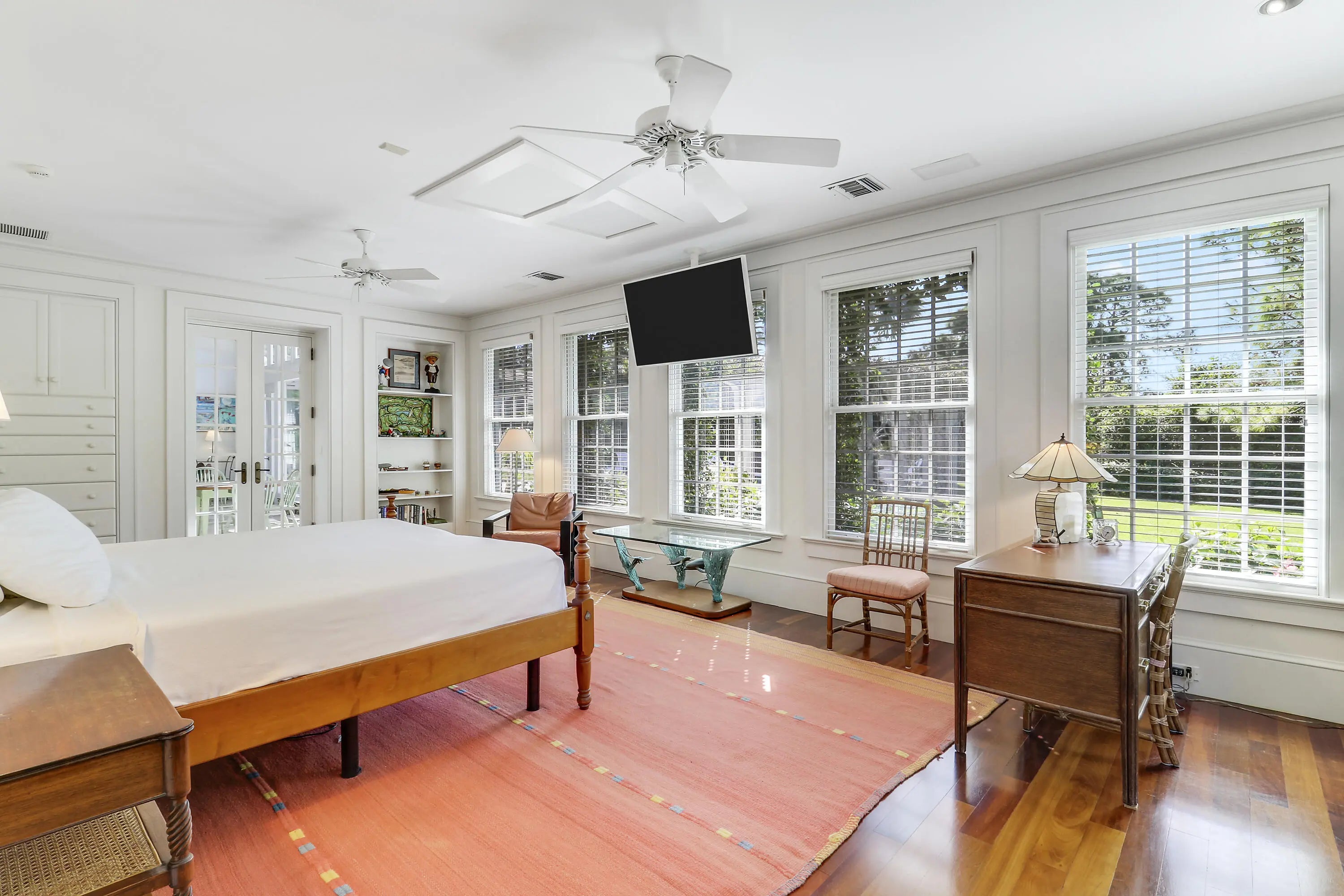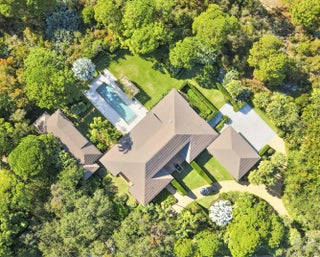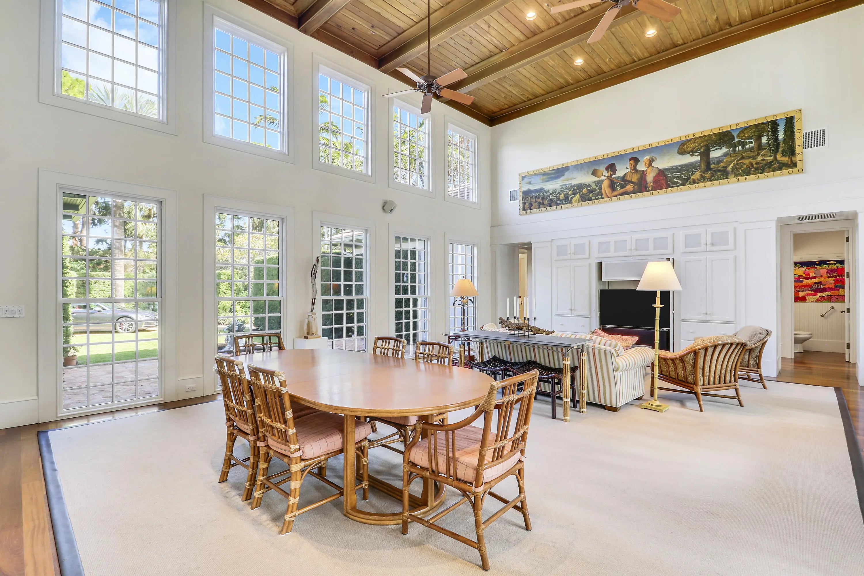 Situated on an expansive double lot totaling 1.37 acres, this inviting property offers privacy, flexibility, and room to enjoy outdoor living. The main residence features two bedrooms and two-and-a-half baths, with hardwood floors throughout the main living areas and soaring volume ceilings that enhance the bright, open great room. A screened, covered loggia overlooks the pool, creating a seamless indoor-outdoor living experience ideal for relaxing or entertaining. A detached guest house adds exceptional versatility, offering two bedrooms and two full baths, perfect for hosting guests, extended family, or creating a private work-from-home retreat. With generous living spaces, a resort-style pool, and a rare oversized lot, this property presents a unique opportunity to enjoy comfort, space
