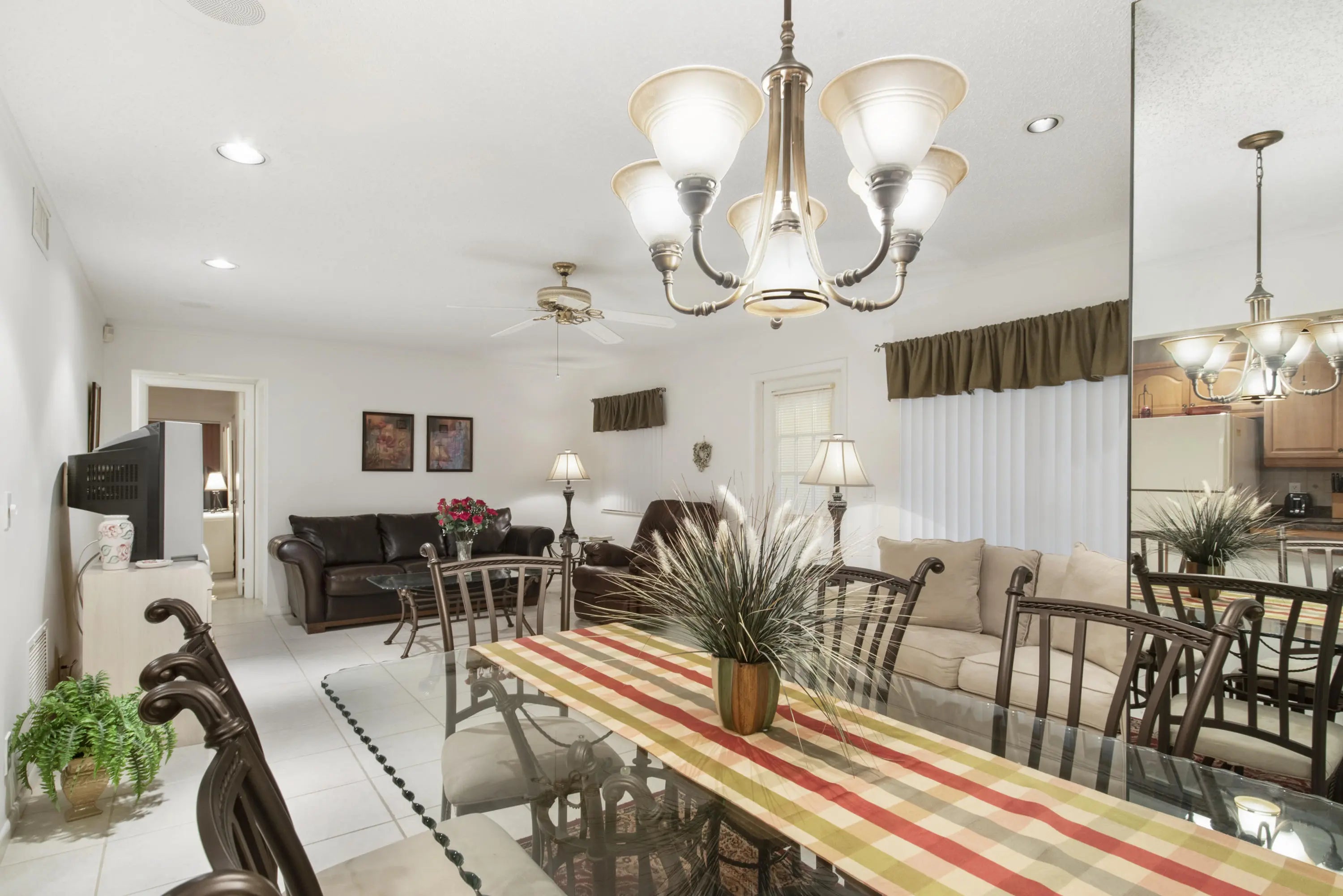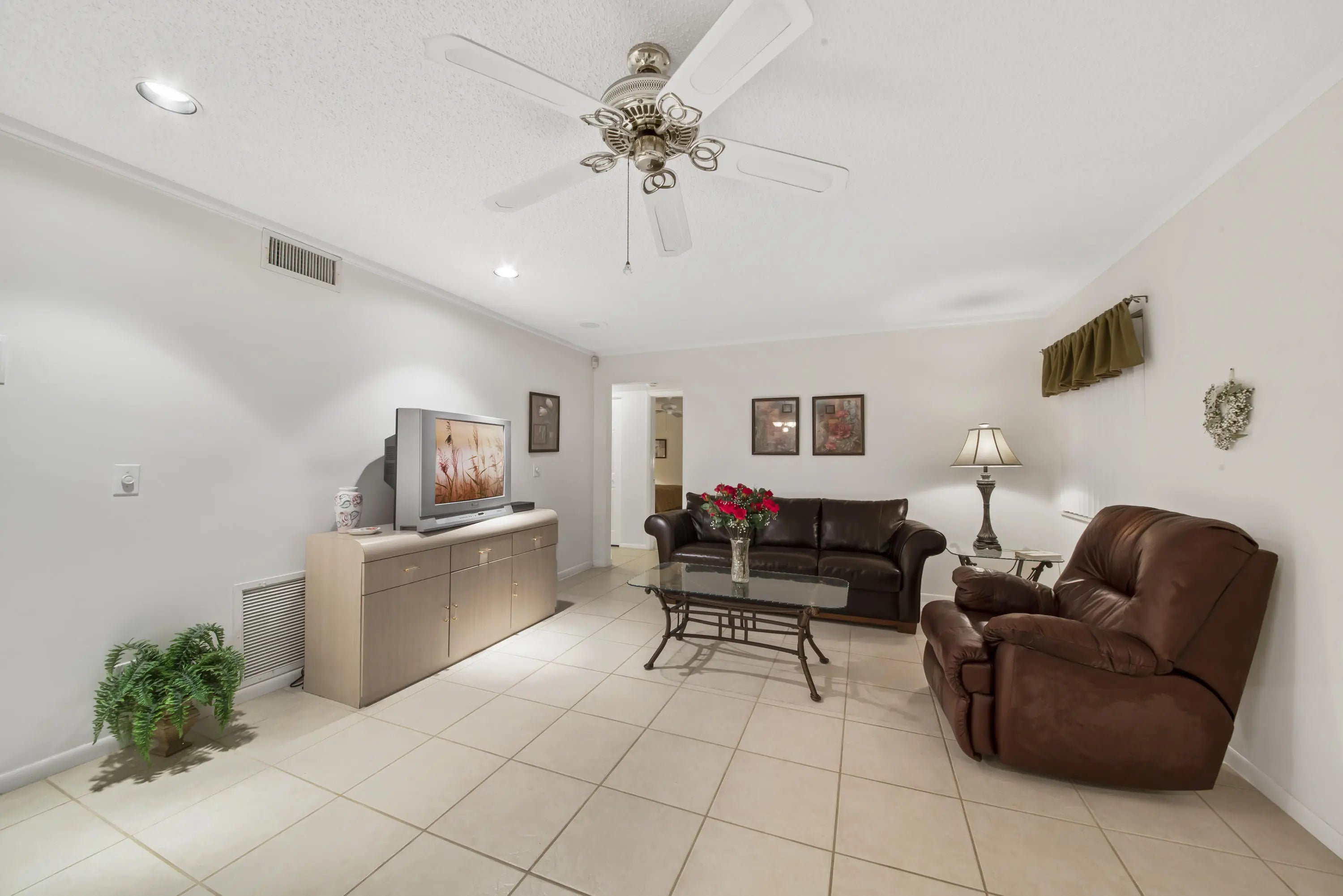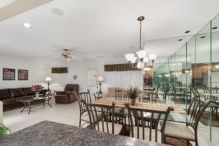 What a Beauty! 2 bedroom, 2 bath, bright corner unit has so much to offer. Beautiful Kitchen cabinets and bathrooms! Ceramic Tile floor in living areas with soft carpet in the bedrooms; Walk-In Closets in Both rooms; Full Size washer and dryer. Enjoy Peaceful Green Belt Views from your FLORIDA ROOM/ PATIO, & exterior storage closet. IMPACT GLASS WINDOWS & Plenty of parking for guests or relatives. Walking distance to clubhouse and pool! This 55+ community offers so much for anyone's lifestyle, from quiet walks around the lake, sitting out on your screened in porch, playing bingo or cards, Bocce Ball, Tons of Social Activities & Clubs. This home is Offered Furnished & TURN KEY!! Bring your toothbrush & Suite case!