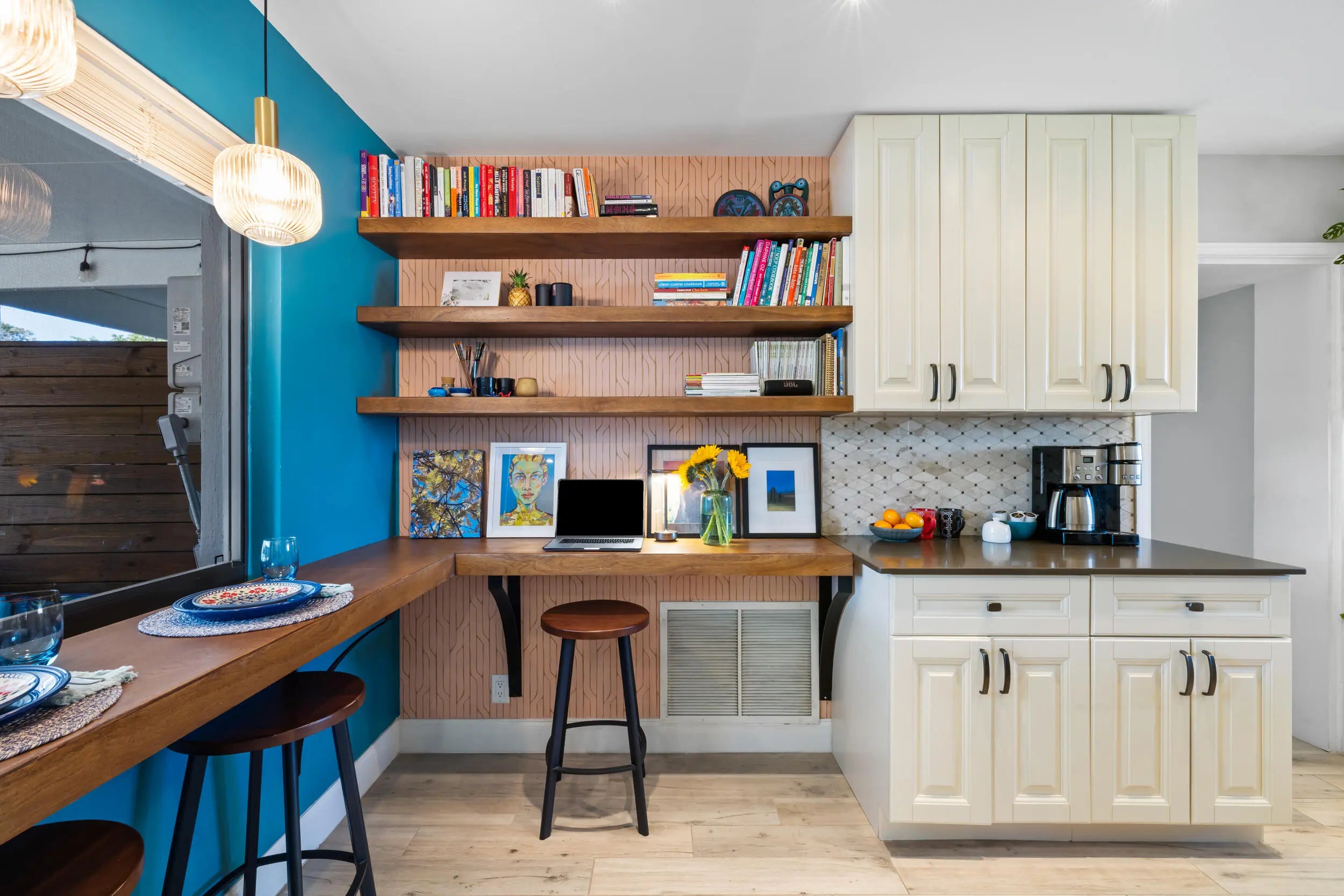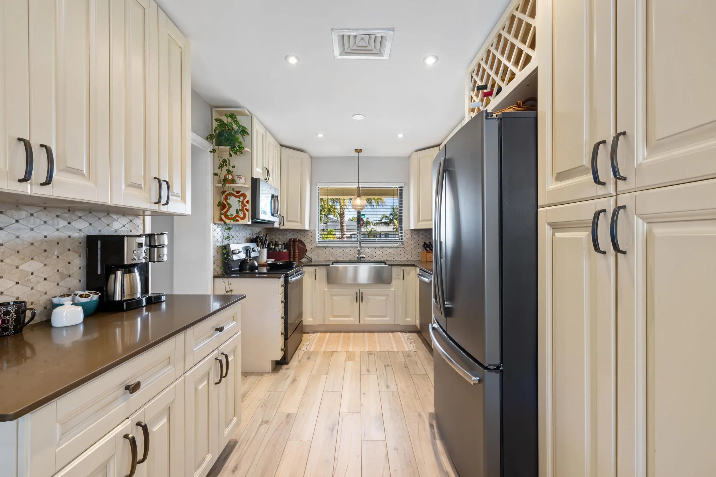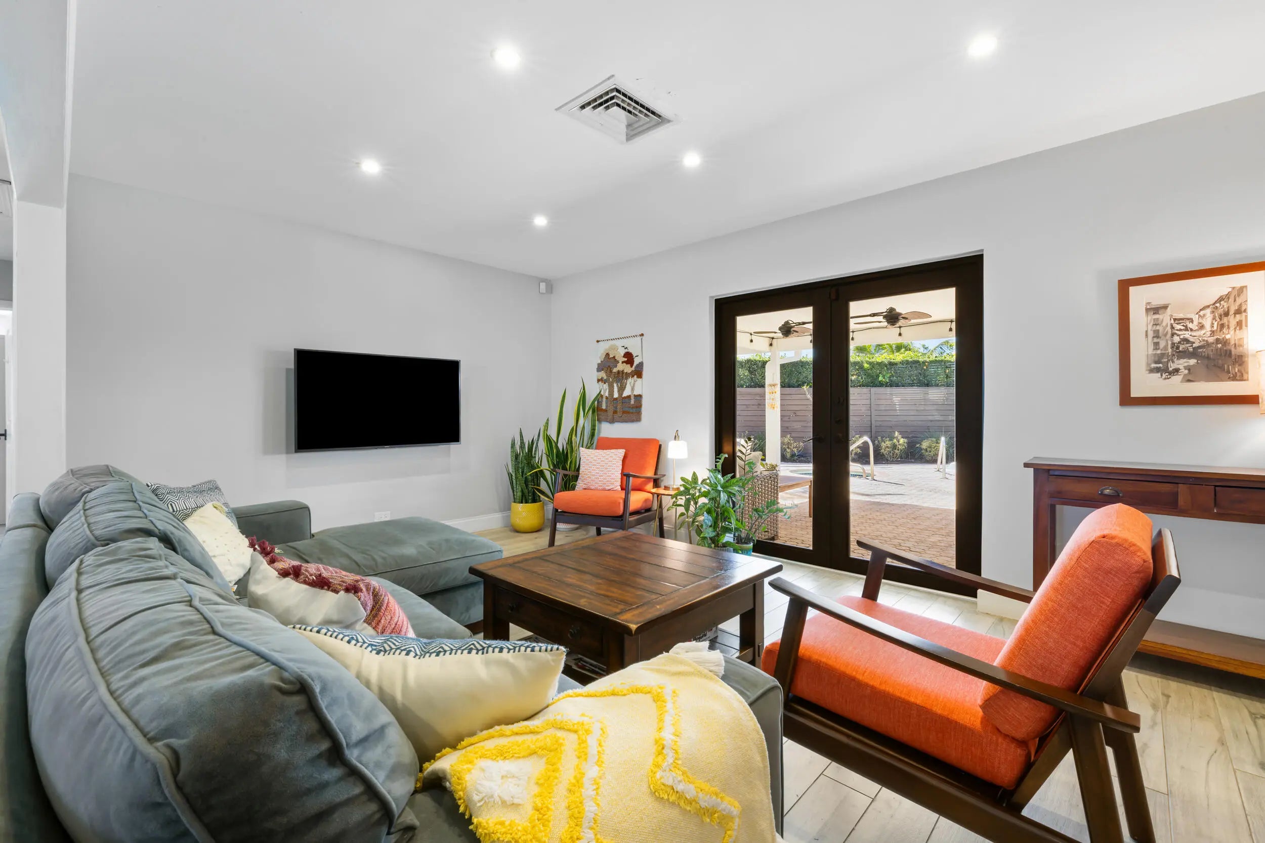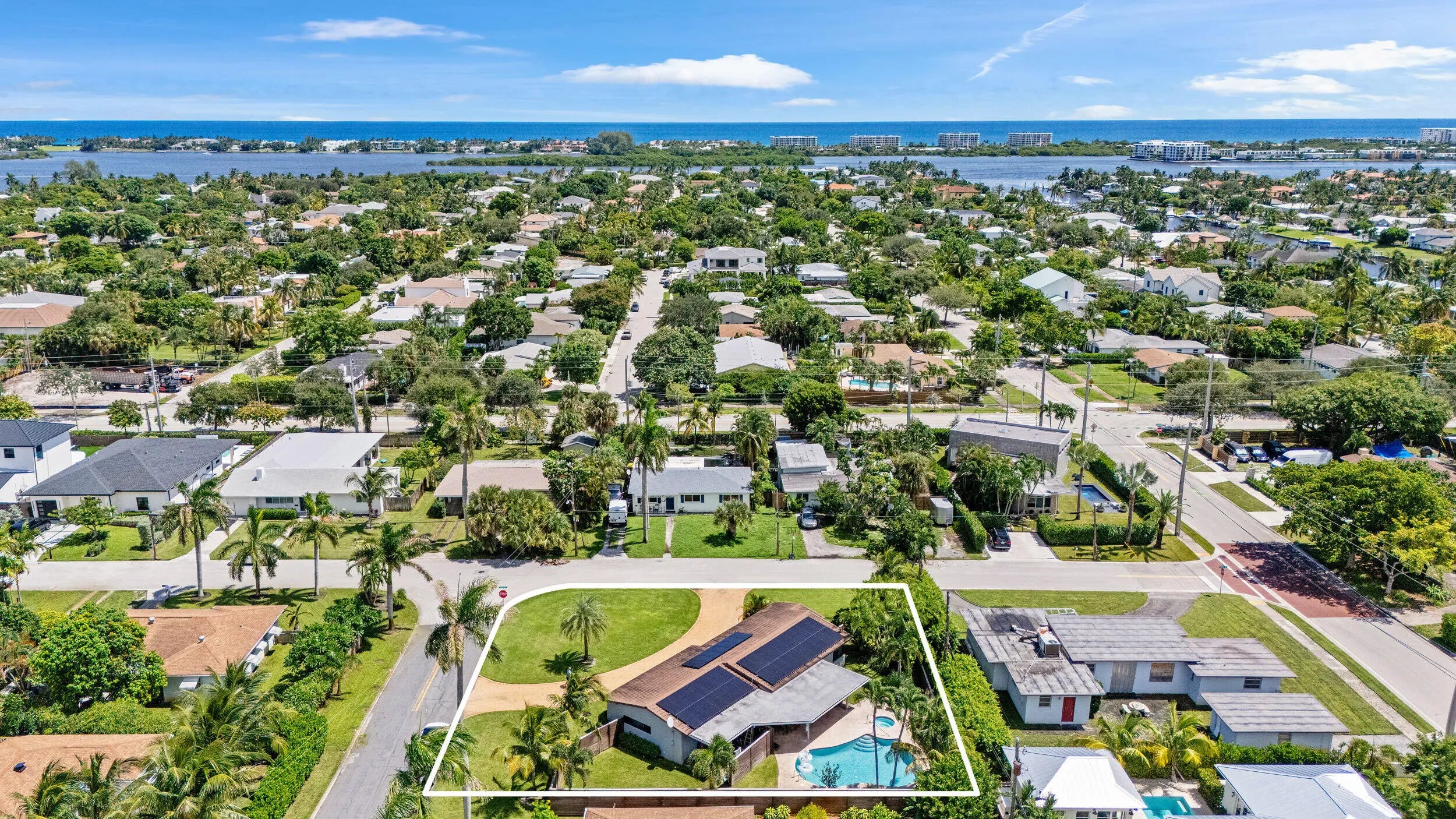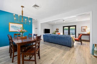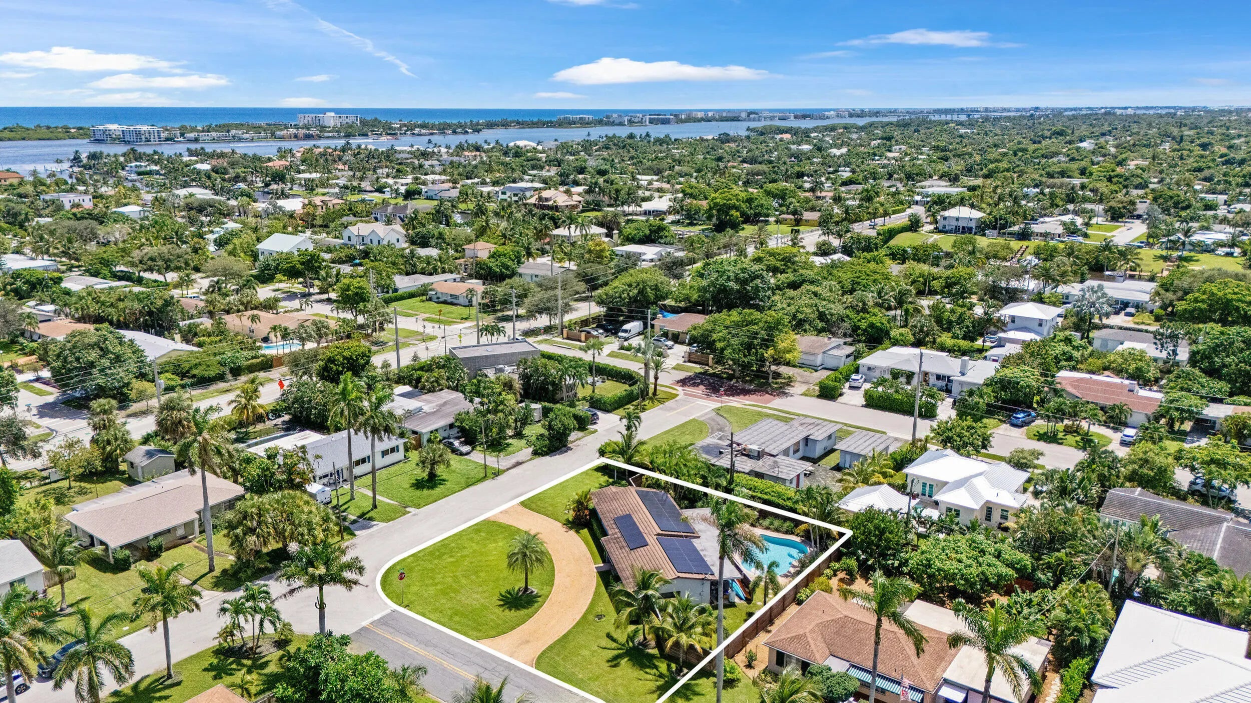 Set on a manicured lot in the heart of the 'It' Neighborhood, South End West Palm Beach AKA 'SoSo', this stylish mid-century residence pairs timeless character with thoughtful modern updates. A circular drive and mature landscaping create an inviting first impression. Inside, wood-look tile floors anchor the open living spaces, flowing effortlessly to a covered patio and poolâ”ideal for relaxed indoor-outdoor living. The renovated eat-in kitchen offers stainless steel appliances and streamlined cabinetry, blending function with clean design. French doors open to a beautifully paved backyard retreat centered around a sparkling pool. The primary suite features generous storage and an updated bath, completing this serene South of Southern escape.