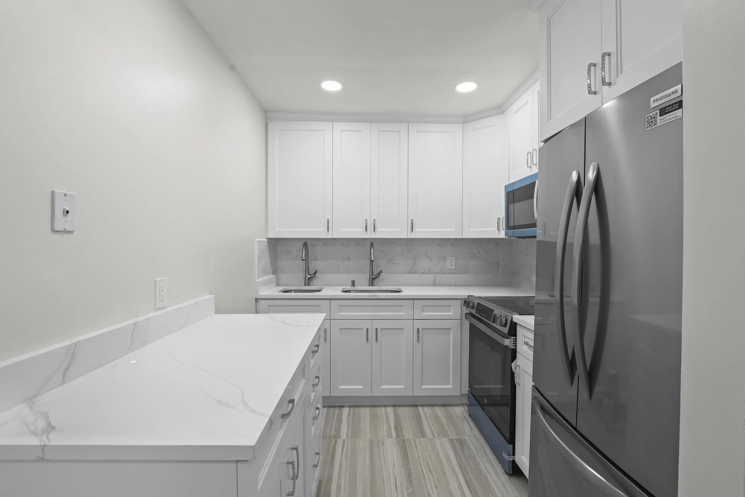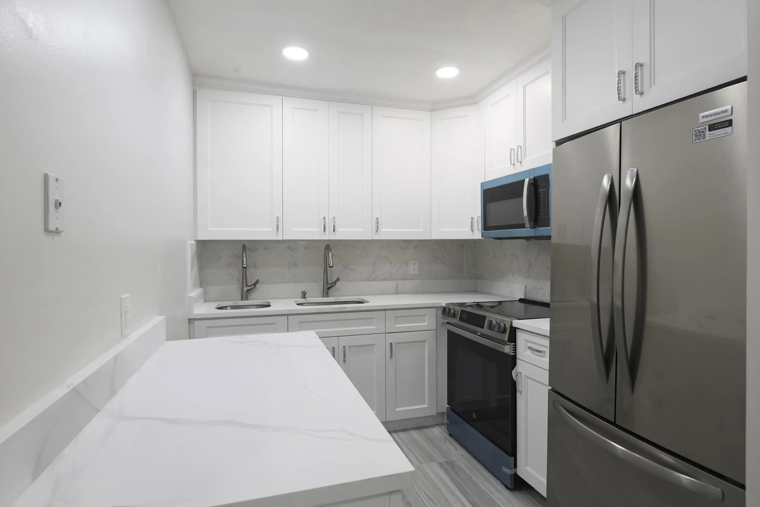 MOVE INTO THIS BEAUTIFULLY UPDATED 2 BED 1.5 BATH SECOND FLOOR UNIT LOCATED IN THE DESIRABLE HASTING ASSOCIATION. STEPS TO HASTINGS FITNESS CENTER. THE KITCHEN FEATURES WHITE CABINETS NEW STAINLESS STEEL APPLIANCESs 2 SEPARATE SINKS AND RECESSED LIGHTING. LIVING ROOM HAS RECESSED LIGHTING, UPDATED BATHROOMS. CENTRAL AIR CONDITIONING GUEST ROOM HAS A MURPHY BED .LUXURIOUS FLOORING THROUGHOUT. Roomy closets (one walk-in), screened-in patio, laundry room, assigned parking spot plus visitor parking available; local bus for errands/shopping both within & outside The Village;WELL MANAGED ASSOCIATION. BUILDING HAS NEW ROOF. STEPS TO THE HASTINGS FITNESS CENTER WHICH HAS RESISTANCE POOL, SWIMMING. POOL , SAUNA AND GYM. COME & ENJOY RESORT STYLE LIVING IN THIS GATED COMMUNITY FOR ACTIVE ADULTS 55 55+ CLUBHOUSE features a theater, indoor pool, card room, community/party room, billiard room ,shuffle board ,tennis , pickqleball ,bocce and two outdoor pools. Numerous heated outdoor pools throughout the community. wo guarded gates and 24 hour roving security patrol. GREAT LOCATION: close to shops, restaurants, PBI airport and beaches