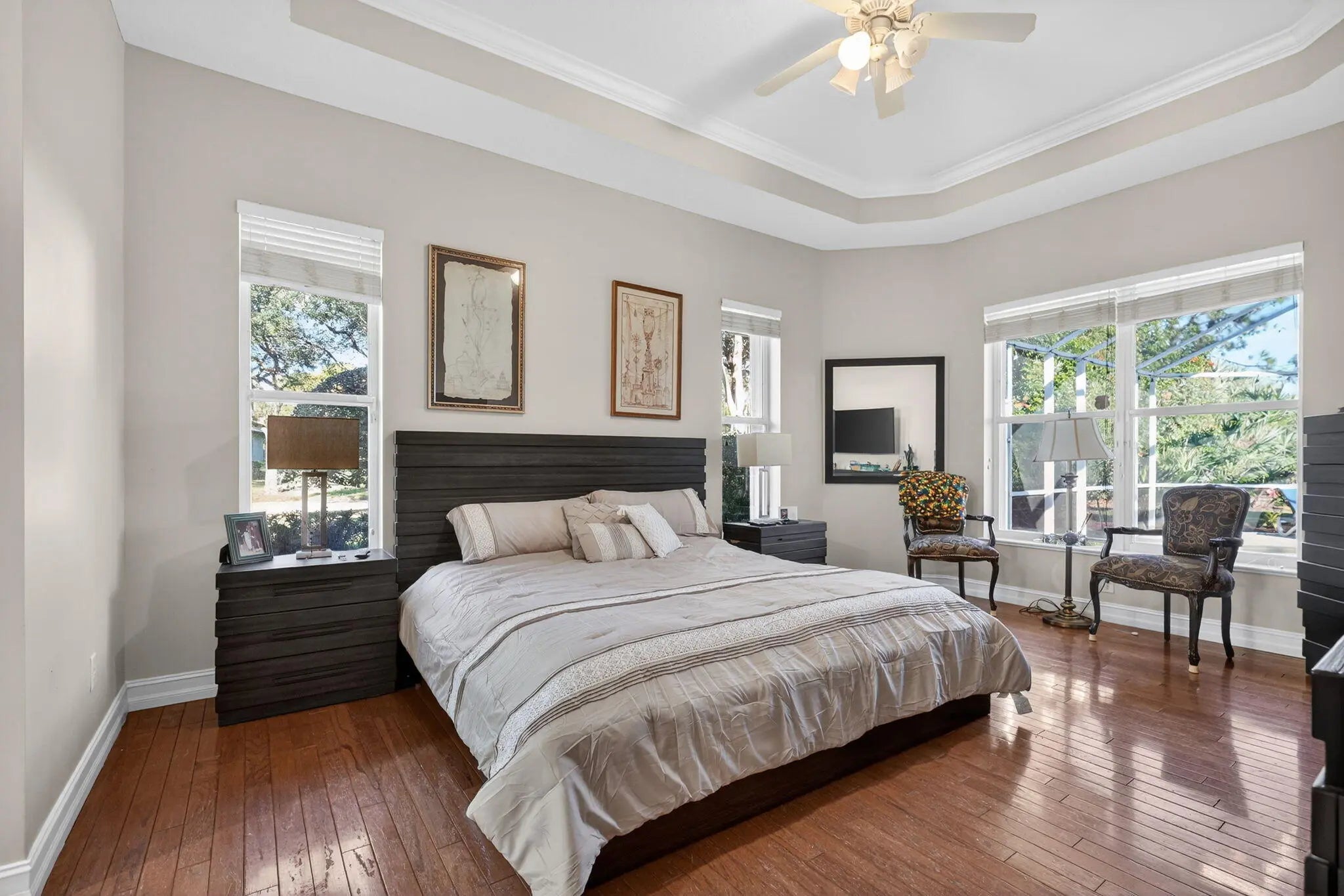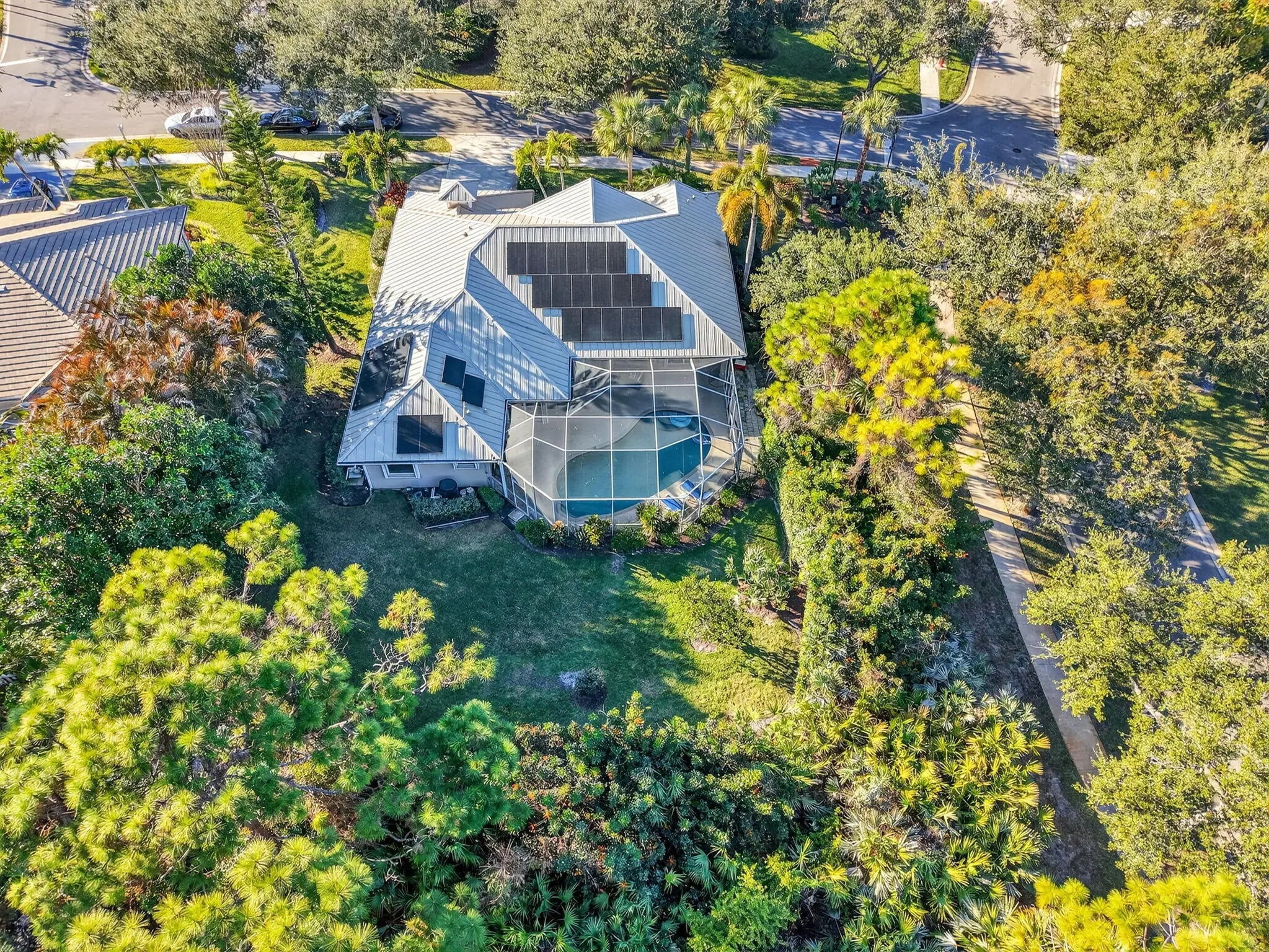 Welcome to this beautifully updated 4BR/3BA + den, pool home! This single-story residence features tile & hardwood flooring, a remodeled kitchen with new appliances, backsplash, and granite countertops, breakfast bar & cook island. Relax in a spacious master suite with walk-in closets, dual vanities, & a luxurious walk-in shower. 4th BR can be a private suite with cabana bath. Enjoy outdoors w/ a covered porch, screened lanai, & new pool deck overlooking lush landscaping & private natural backdrop. Recent upgrades include new roof 2023, A/C 2020, pool heater 2023, water filter/softener system 2024, Garage door mechanical 2022, pool deck 2022, and solar panels . Move-in ready, energy efficient, & meticulously maintained; offering the perfect blend of comfort, privacy, and FL lifestyle!