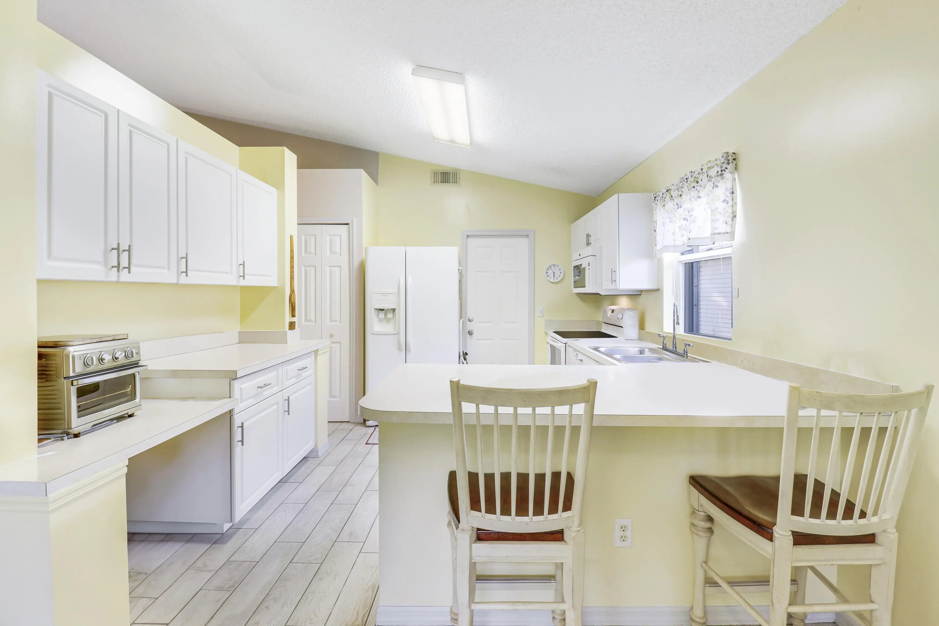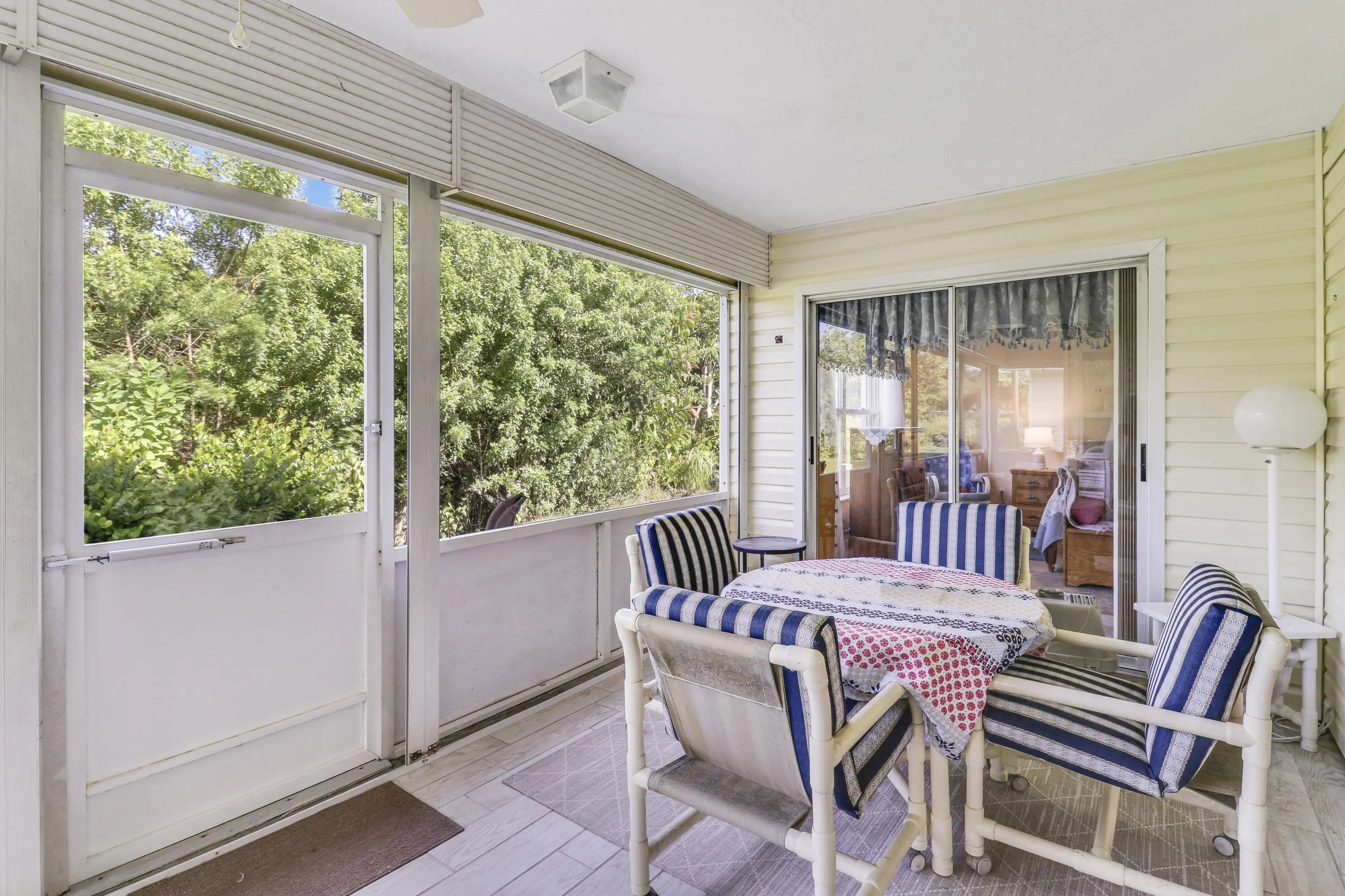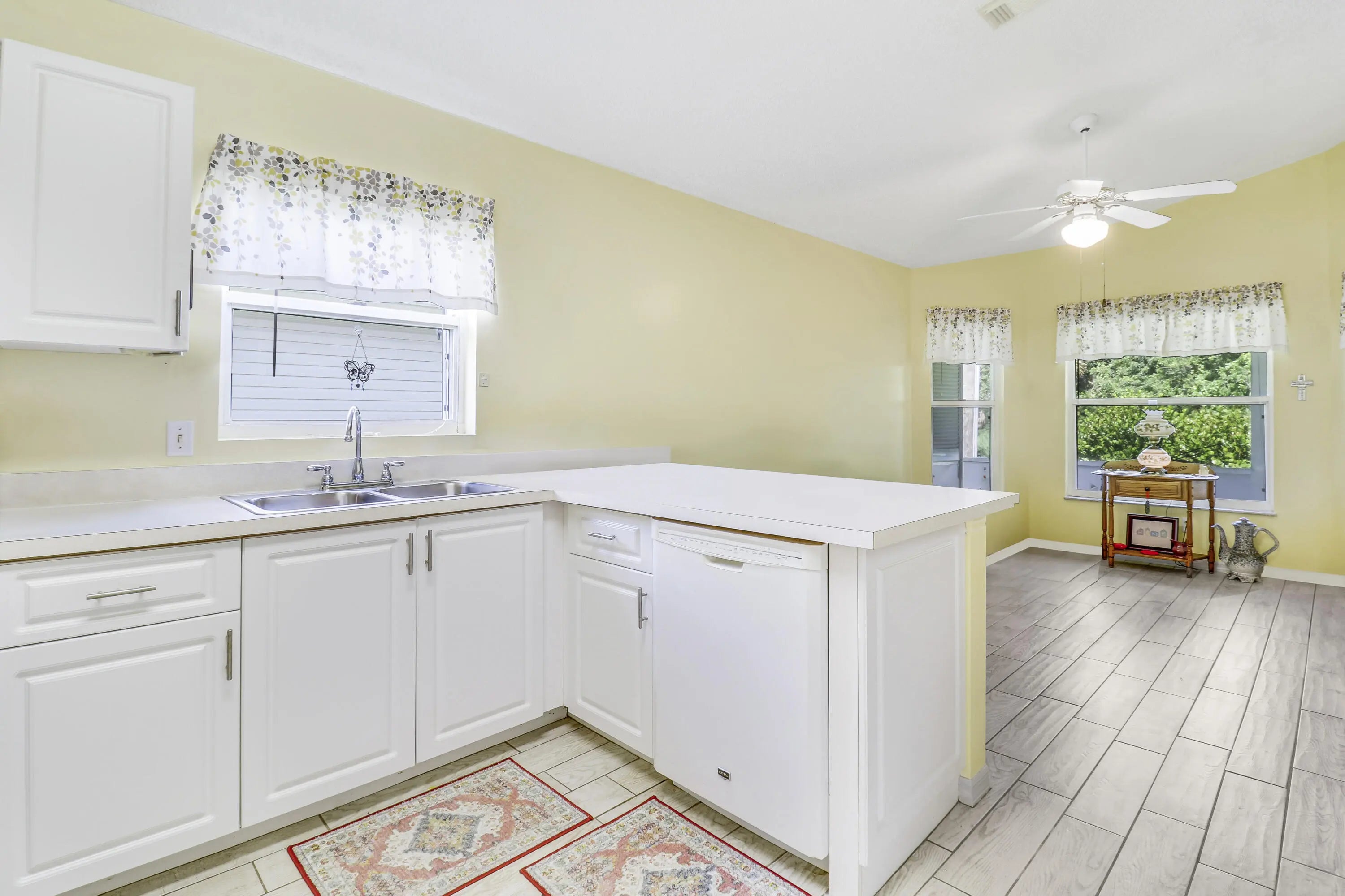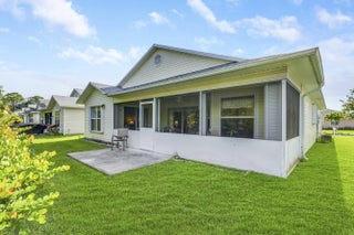 Welcome to this charming, well maintained 2-bedroom, 2-bath home with a 1 car garage located in the active 55+ man-gated community of Palm Grove. This home features a spacious kitchen with resurfaced cabinets, breakfast bar, and eat-in area, along with a large formal dining room ideal for entertaining. The primary suite offers his/her closets and a private bath with garden tub and separate shower. The home backs up to a small canal providing added privacy and includes a screened in patio perfect for relaxing or enjoying your morning coffee. Palm Grove offers a low HOA and amenities including clubhouse, pool, pickleball, tennis courts, and more. Just minutes from the hospital, dining, shopping, beaches, fishing, and downtown Fort Pierce.