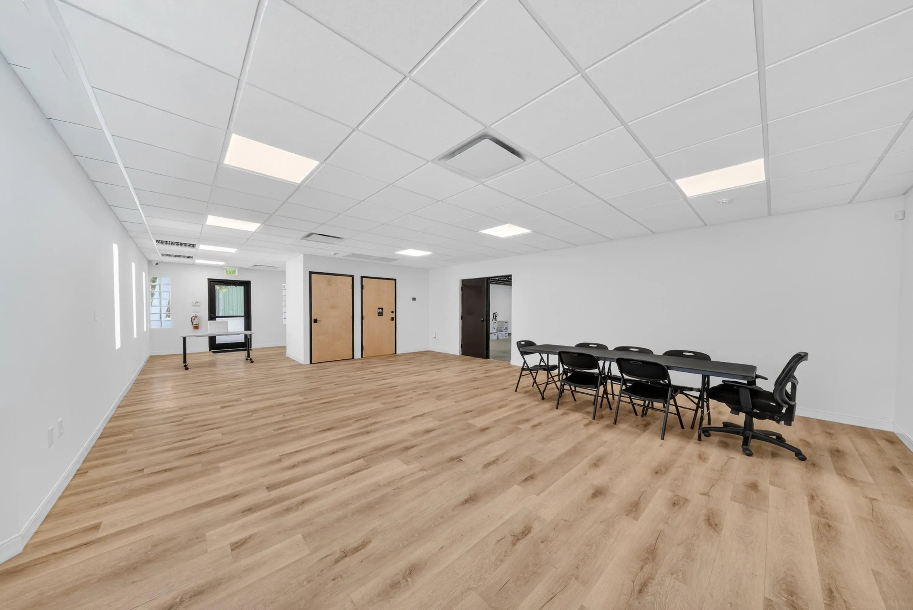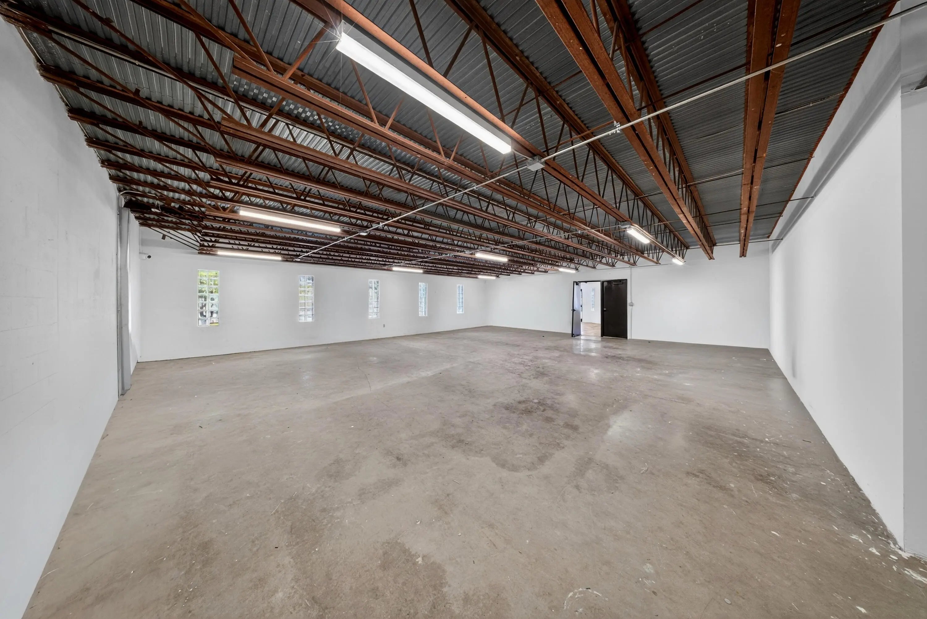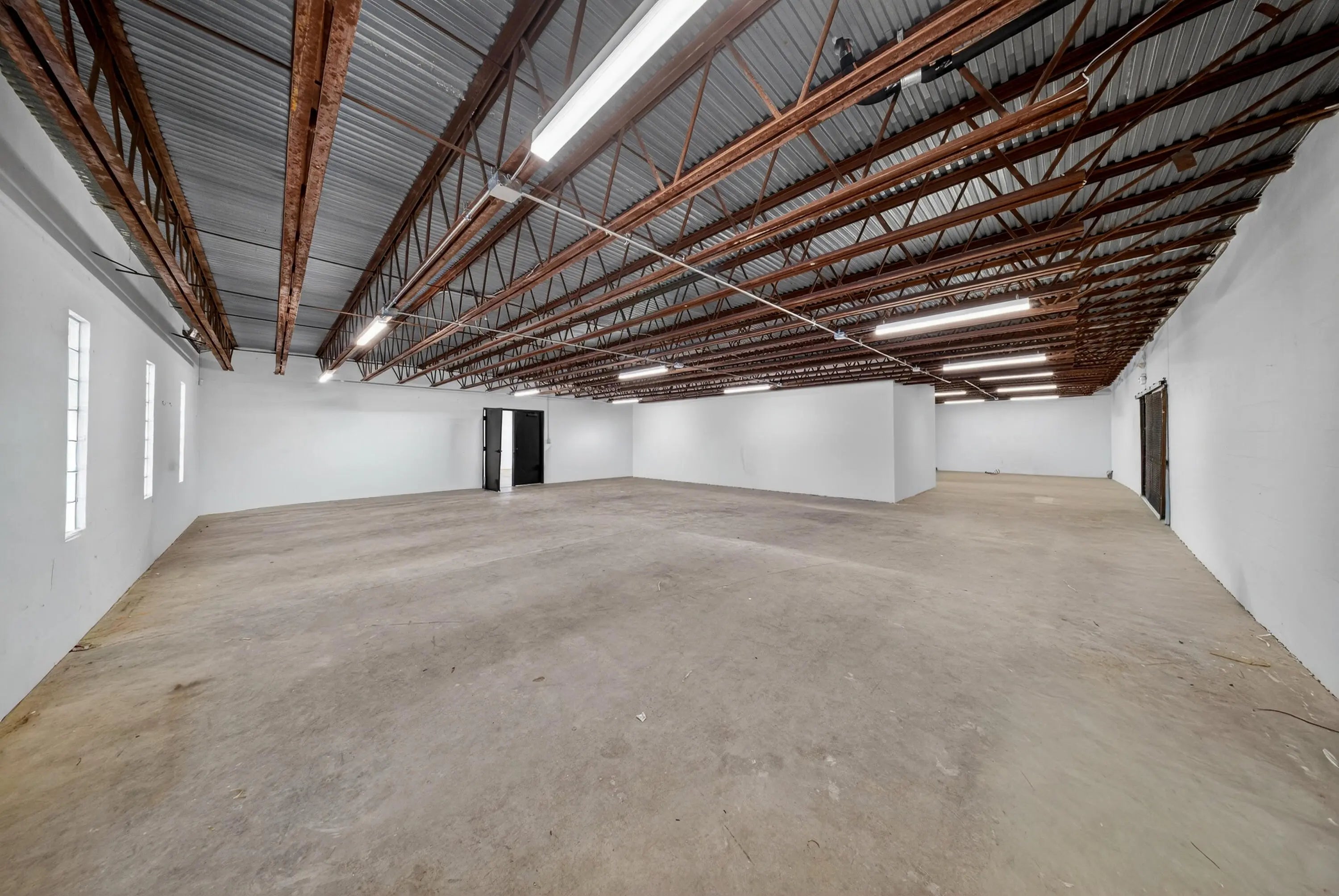 Downstairs commercial rental with private entrance offering 2,400 SF total—600 SF built-out air-conditioned office and 1,800 SF warehouse/storage with loading dock. Includes 1 bathroom. Full-service rent includes utilities, pest control, garbage, and weekly cleaning. Lease rate $16.00-$17.50/SF depending on usage. Ideal for low-traffic office, contractor, or storage-based businesses.