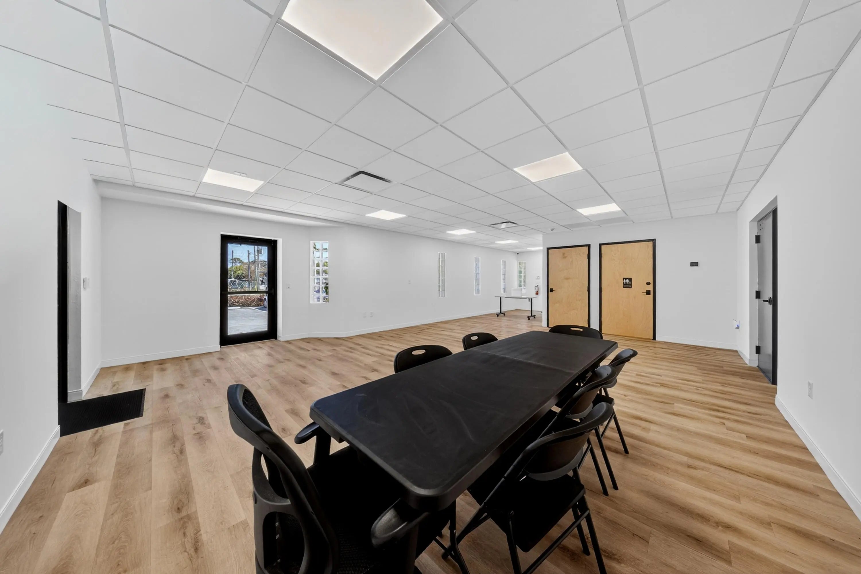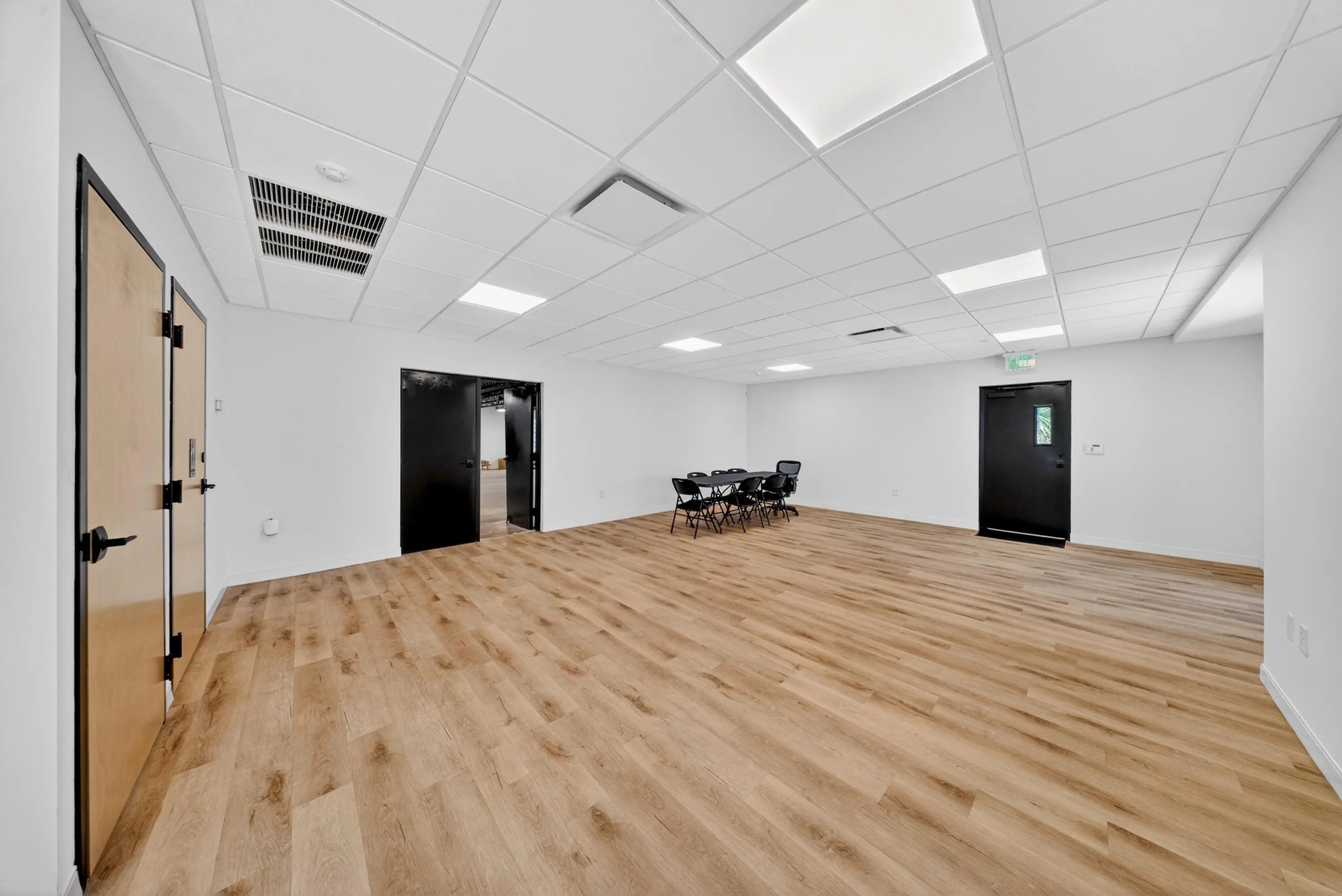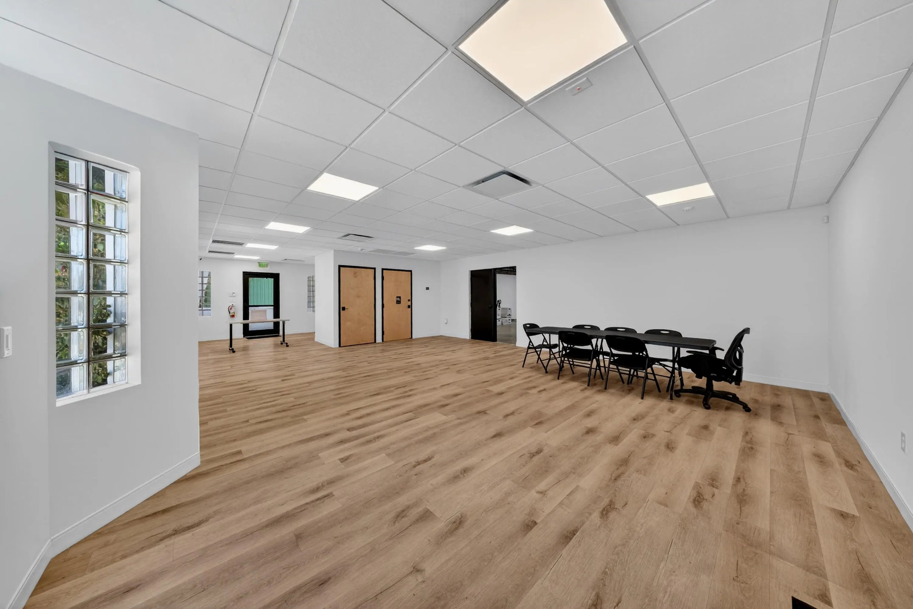 Downstairs commercial rental with private entrance offering 2,400 SF total—600 SF built-out air-conditioned office and 1,800 SF warehouse/storage with loading dock. Includes 1 bathroom. Full-service rent includes utilities, pest control, garbage, and weekly cleaning. Lease rate $16.00-$17.50/SF depending on usage. Ideal for low-traffic office, contractor, or storage-based businesses.