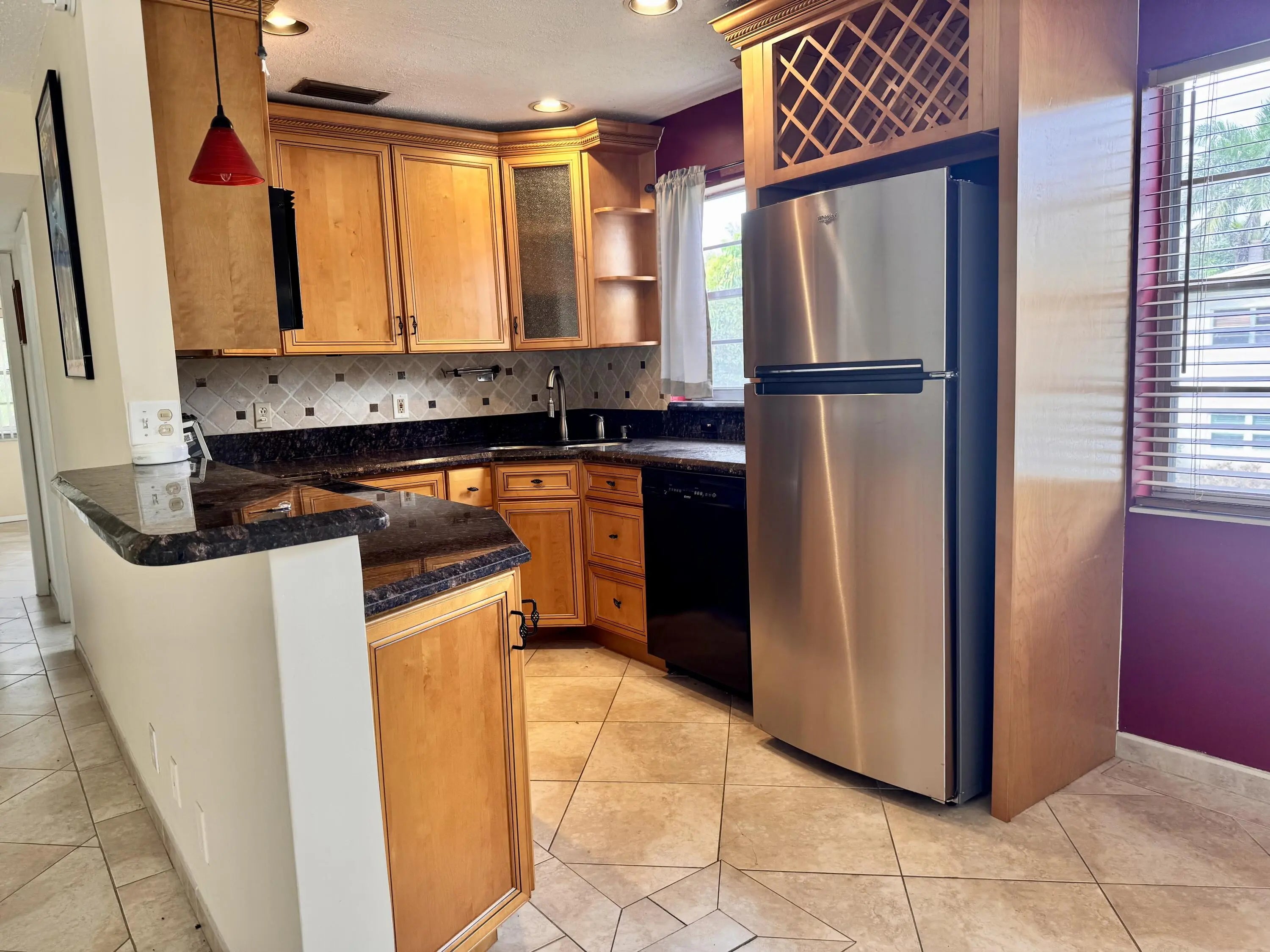 WOW! THIS BEAUTIFULLY UPDATED 2-BEDROOM 2-BATH IS SURE TO IMPRESS STEP INSIDE TO AN OPEN-CONCEPT LAYOUT FEATURING A COMPLETELY RENOVATED KITCHEN WITH GORGEOUS WOOD CABINETRY, GRANITE COUNTERTOPS, AND A SPACIOUS ISLAND, AND A BUILT-IN WINE RACK - PERFECT FOR BOTH EVERYDAY LIVING AND ENTERTAINING. (NEW SS REFRIGERATOR JUST INSTALLED -NOT PICTURED). BOTH FULL BATHROOMS HAVE BEEN TASTEFULLY UPDATED AND OFFER STEP-IN SHOWERS WITH SLEEK FRAMELESS GLASS DOORS, CREATING A MODERN SPA-LIKE FEEL. THE DESIRABLE CORNER LOCATION OFFERS AN ELEVATOR AND BRINGS IN LOTS OF NATURAL LIGHT AND CHARM THROUGHOUT. LOCATED IN A VIBRANT AND WELCOMING 55+ COMMUNITY, YOU'LL ENJOY A FRIENDLY, ACTIVE LIFESTYLE WITH AMENITIES DESIGNED FOR RELAXATION AND CONNECTION. THE INVITING PATIO AND BBQ AREA PROVIDE THE PERFECT SETTING TO UNWIND AND TAKE IN THE PEACEFUL VIEWS WITH NEIGHBORS AND FRIENDS. CENTURY VILLAGE HAS A STATE-OF-THE-ART CLUBHOUSE OFFERING MANY ACTIVITIES, CLASSES, MOVIES, DANCES AND SHOWS THAT WOULD KEEP JUST ABOUT ANYONE ENTERTAINED. A COURTESY BUS PROVIDES TRANSPORTATION TO VARIOUS LOCATIONS, GROCERY STORES, RETAIL SHOPS. SEE IT TODAY AND TAKE ADVANTAGE OF THIS GORGEOUS, IMMACULATE AND MOVE-IN READY CONDO!GROCERY STORES, RETAIL SHOPS. SEE IT TODAY AND TAKE ADVANTAGE OF THIS GORGEOUS, IMMACULATE AND MOVE-IN READY CONDOMINIUM!