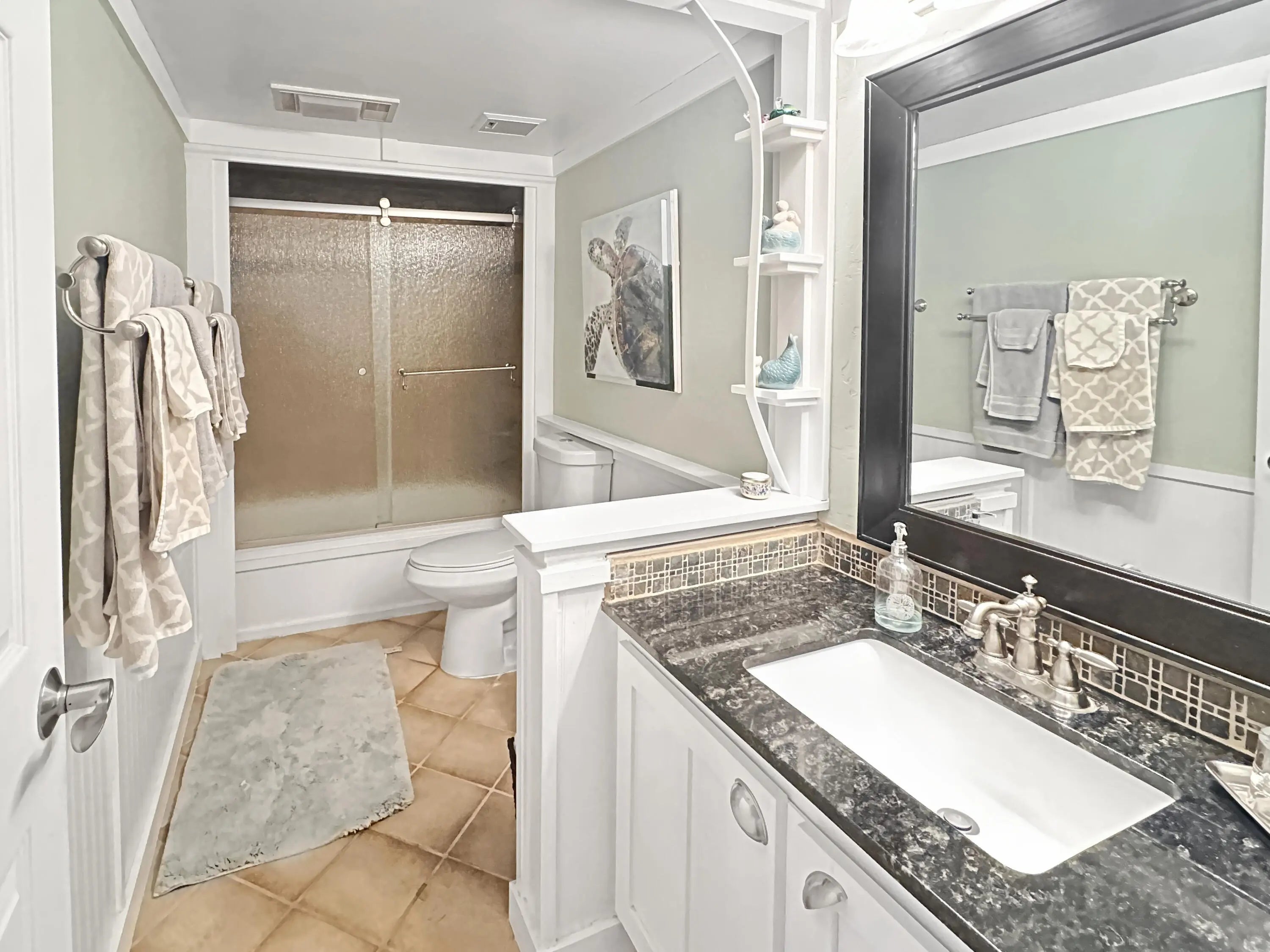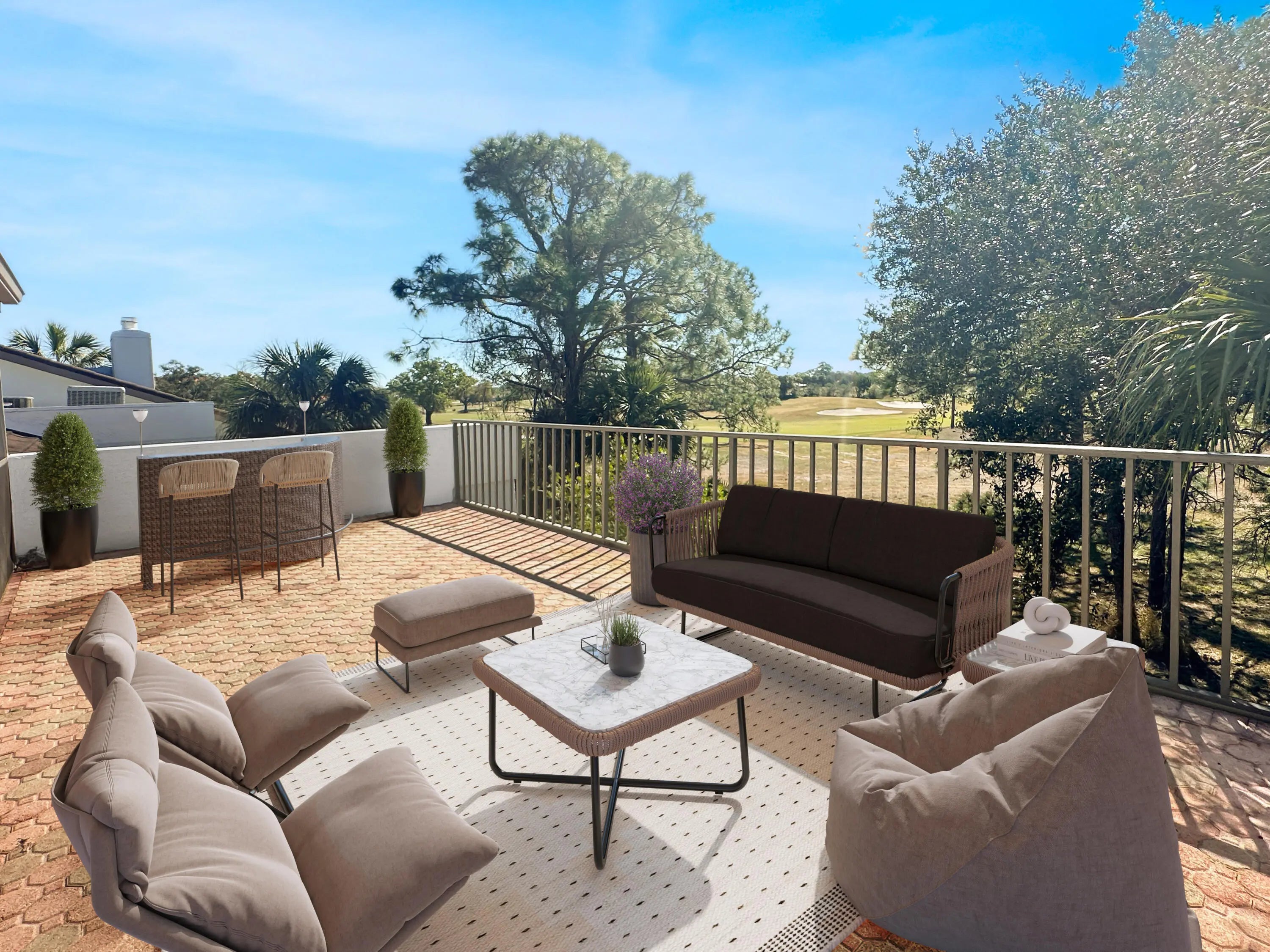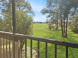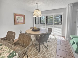Welcome to luxury living with a view! This stunning 3-bedroom, 2-bathroom unit boasts elegance and comfort across two captivating stories. Indulge in serene golf course backdrop and enjoy the tranquility of your own screened porch, perfect for dining al fresco or sipping your morning coffee in peace. Step inside to discover a spacious open kitchen/dining area featuring granite countertops, a stylish island with a copper farm sink, and a charming, coffered ceiling. Entertaining is a breeze with the kitchen's convenient layout, complete with a snack bar, and beautiful tiled backsplash. The large living room, complete with a cozy fireplace and wet bar area, invites you to relax and unwind. Upstairs, the expansive master suite becomes your private oasis, complete with a fireplace, walk-in closet and two rooftop patios offering sweeping views. The master bath is a spa-like retreat, featuring a double sink granite vanity and a luxurious walk-in shower with a rain head. Additional perks include spacious guest bedrooms, a guest bath with granite vanity and wainscoting, Bahama shutters, and a coveted detached garage for your car and/or golf cart. As a resident of the prestigious, gated, Meadowood community, enjoy access to a plethora of amenities with optional memberships to meet your recreational and social needs and as a new resident, you can take advantage of a short-term trial membership. With the convenience of nearby shopping, dining, and beaches, this is a place where every day feels like a vacation. Welcome home to your personal slice of Florida paradise!