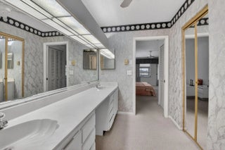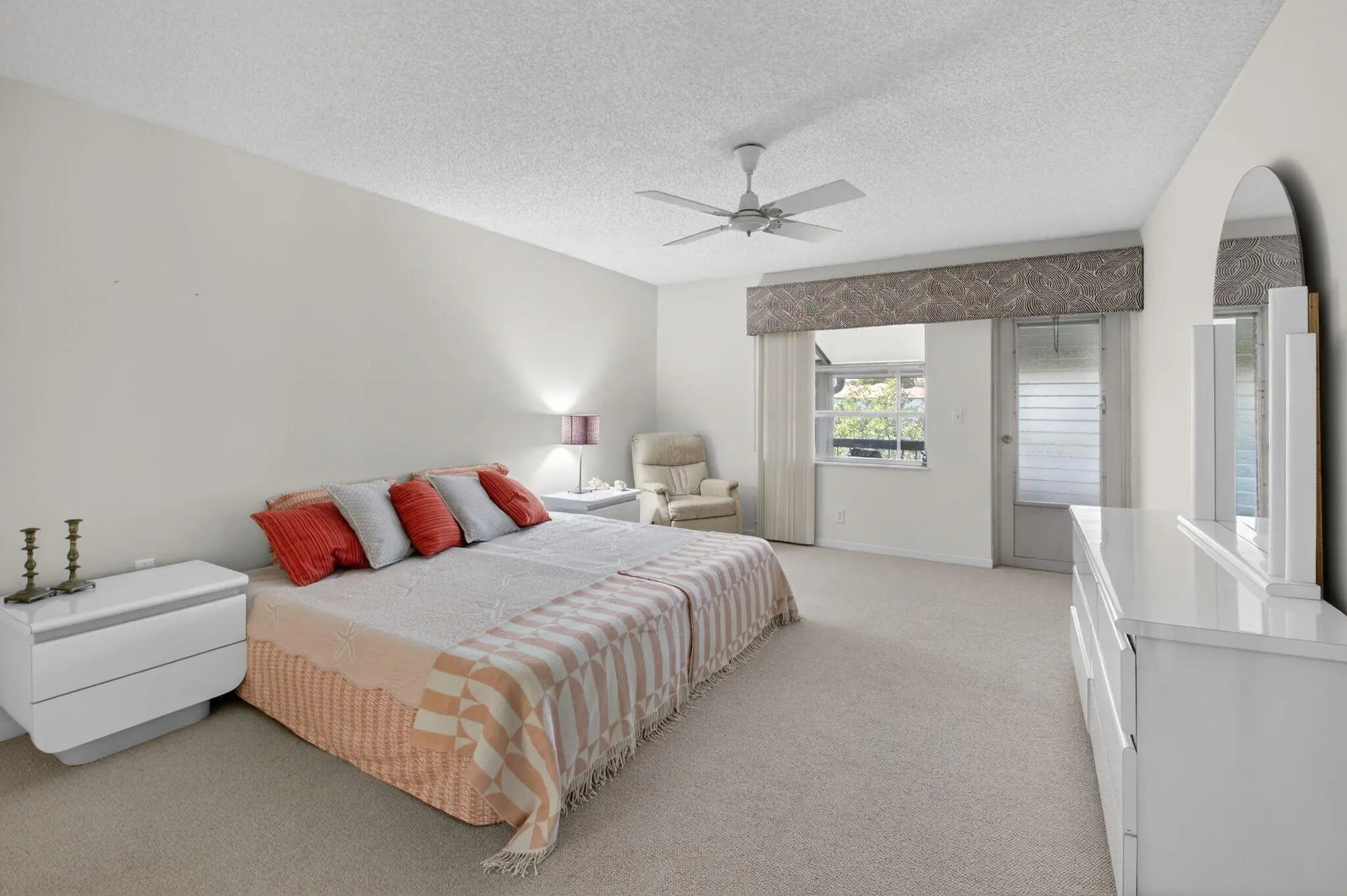 Sun-filled 2nd-story condo in the desirable Palm Greens 55+ community of Delray Beach. Over 1,200 sq ft with peaceful long lake views and a quiet upper-level location. Bright eat-in kitchen with white cabinetry, pass-through to dining area. Dining area features a bright bay window, ideal for plants and added natural light. Split-bedroom floor plan with a full hall bath that functions as an ensuite for the 2nd bedroom. Spacious living room opens to a large balcony through sliding glass doors. Generous primary suite fits a king-size bed and also features balcony access, a large walk-in closet, ensuite bath with double vanities and separate toilet/shower. Enjoy resort-style living with a brand-new 30,000 sq ft clubhouse, 3 pools, tennis courts, social hall, card rooms, billiards, and more. Owners of this condo at Palm Greens II also have use of the Satellite pool with 2 additional Tennis Courts.