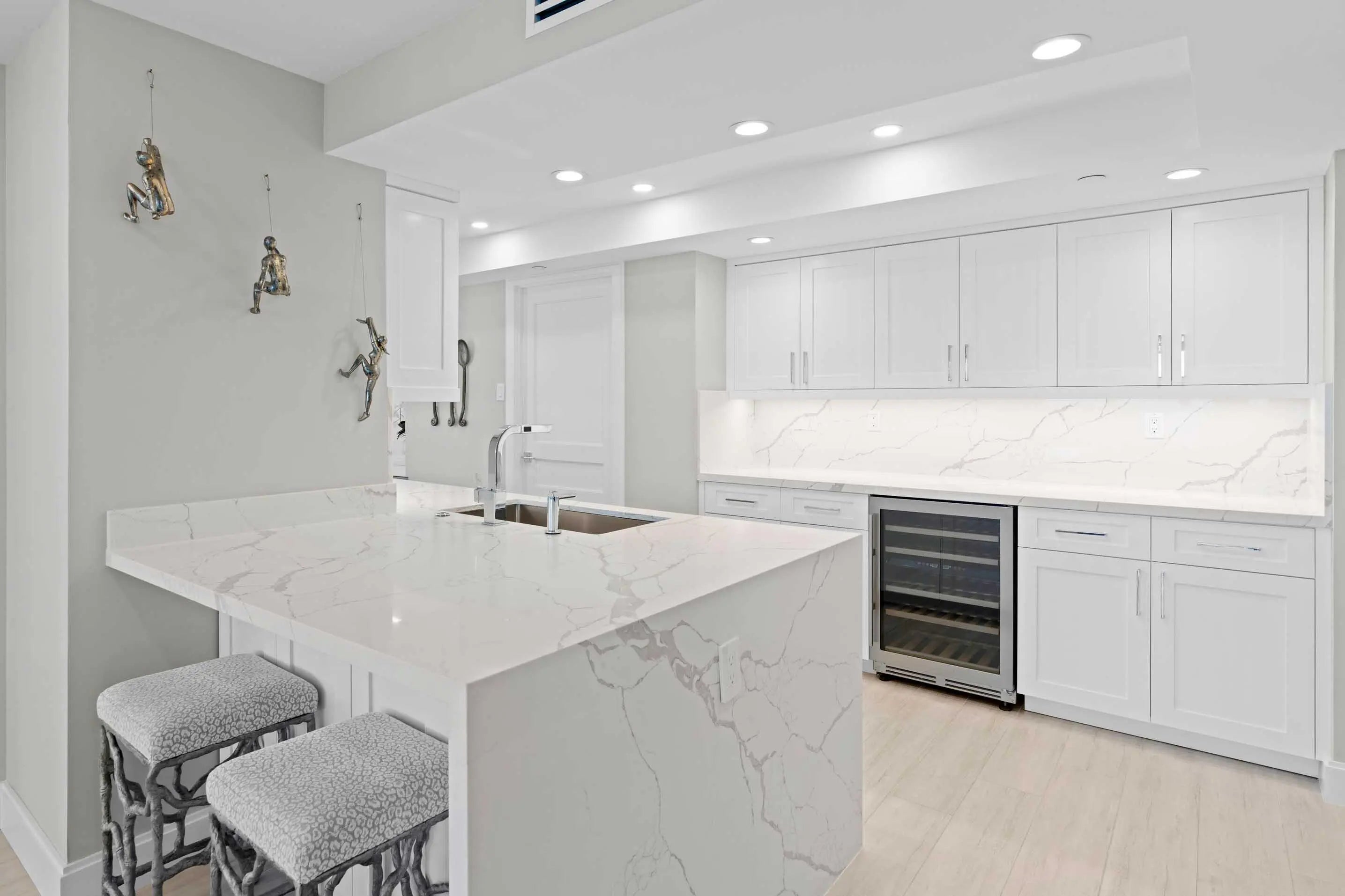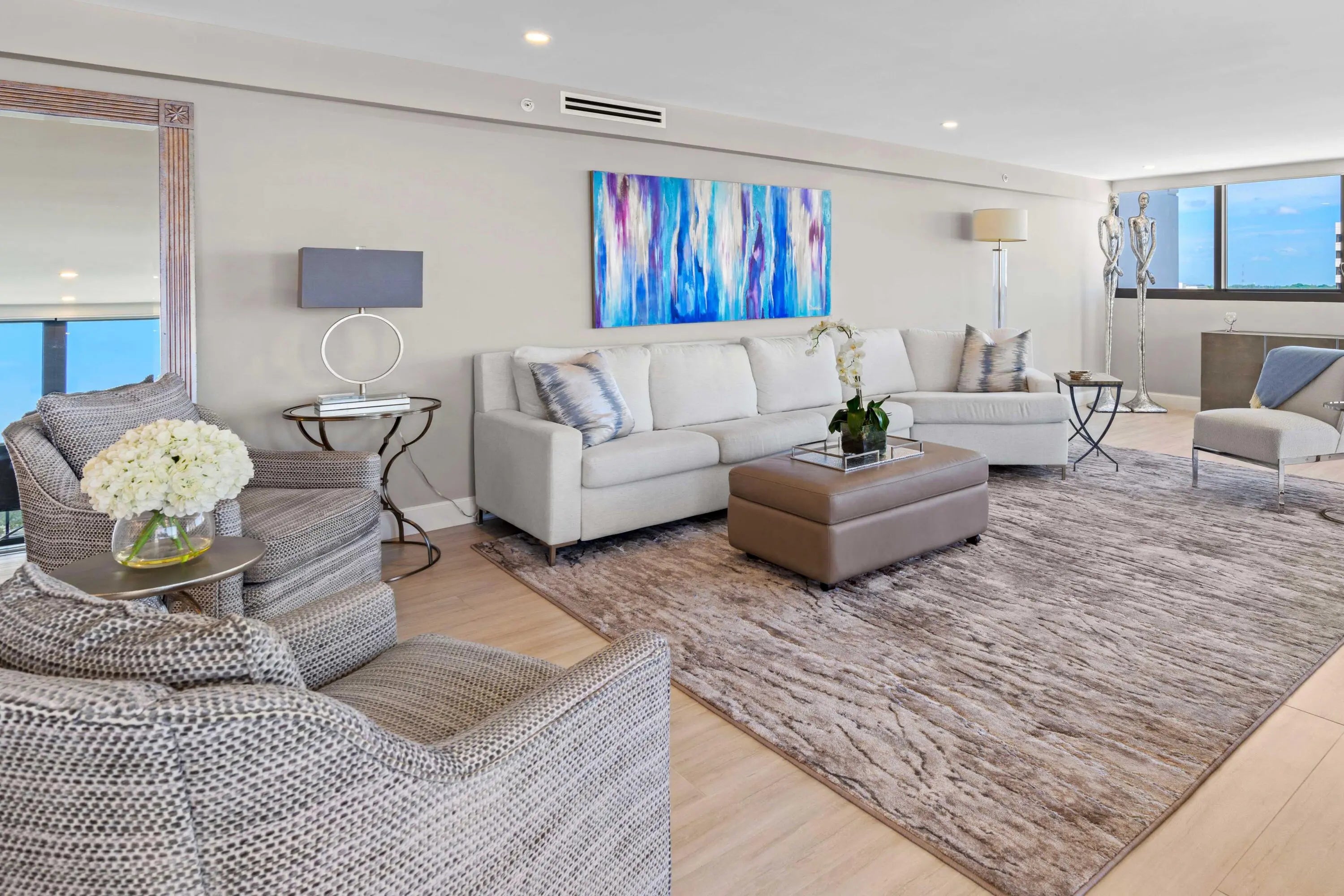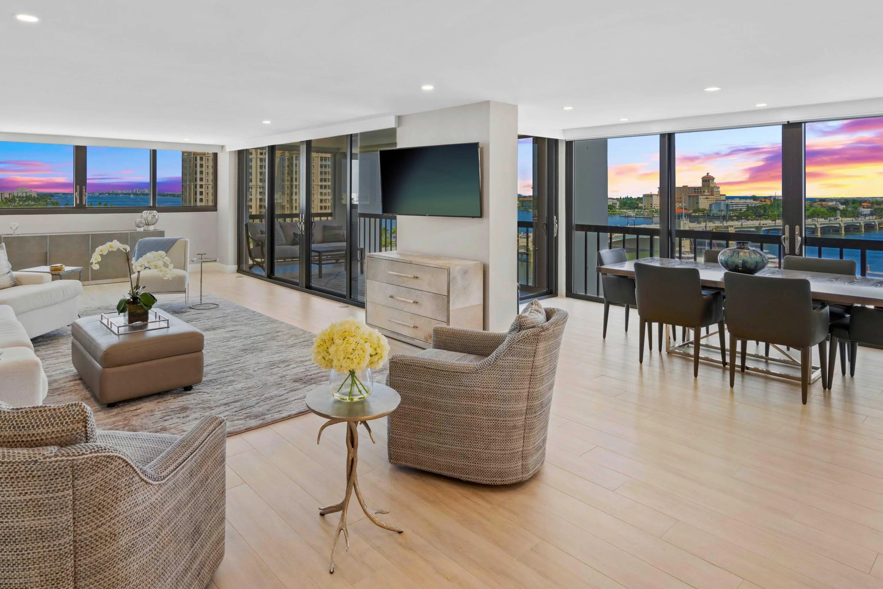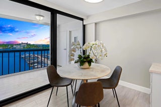 COMPLETE RENOVATION!! This stunning & meticulous 3-BR, 3-BA corner residence leaves no detail unattended. Breathtaking unobstructed views of the Intracoastal, ocean, yachts/marina, or skyline from every corner of this designer furnished apartment. Attractive custom lighting, electric shades and 2 private terraces. The open kitchen boasts custom quartz countertops, white cabinets and top-of-the-line stainless appliances. Prime location next to Palm Harbor Marina, directly across from The Royal Plaza (Hermés, Sant Ambroeus, PB Grill, etc) on Palm Beach Island. Waterview Towers is a full-service building with valet, 24-7 doorman, tennis, pickle ball, swimming pool, fitness, & security.