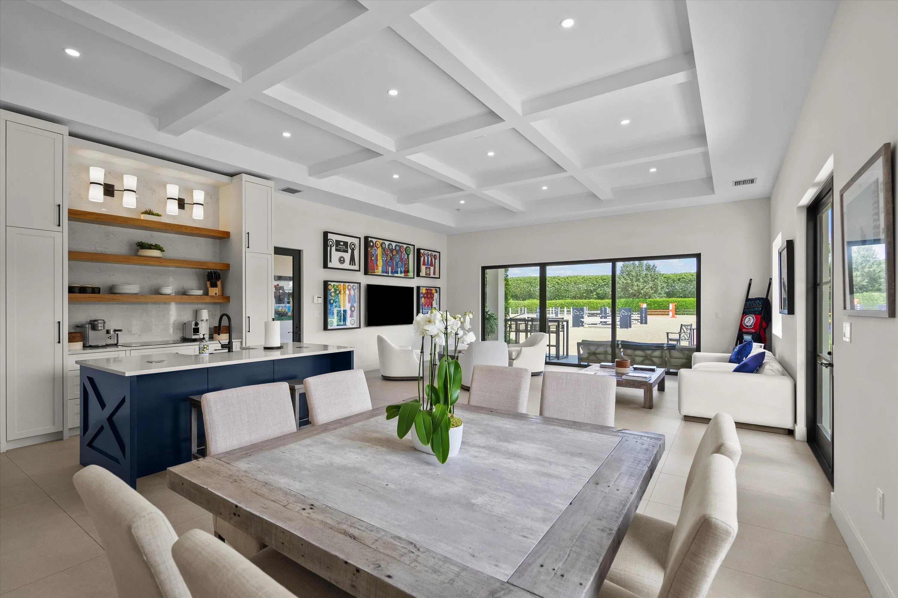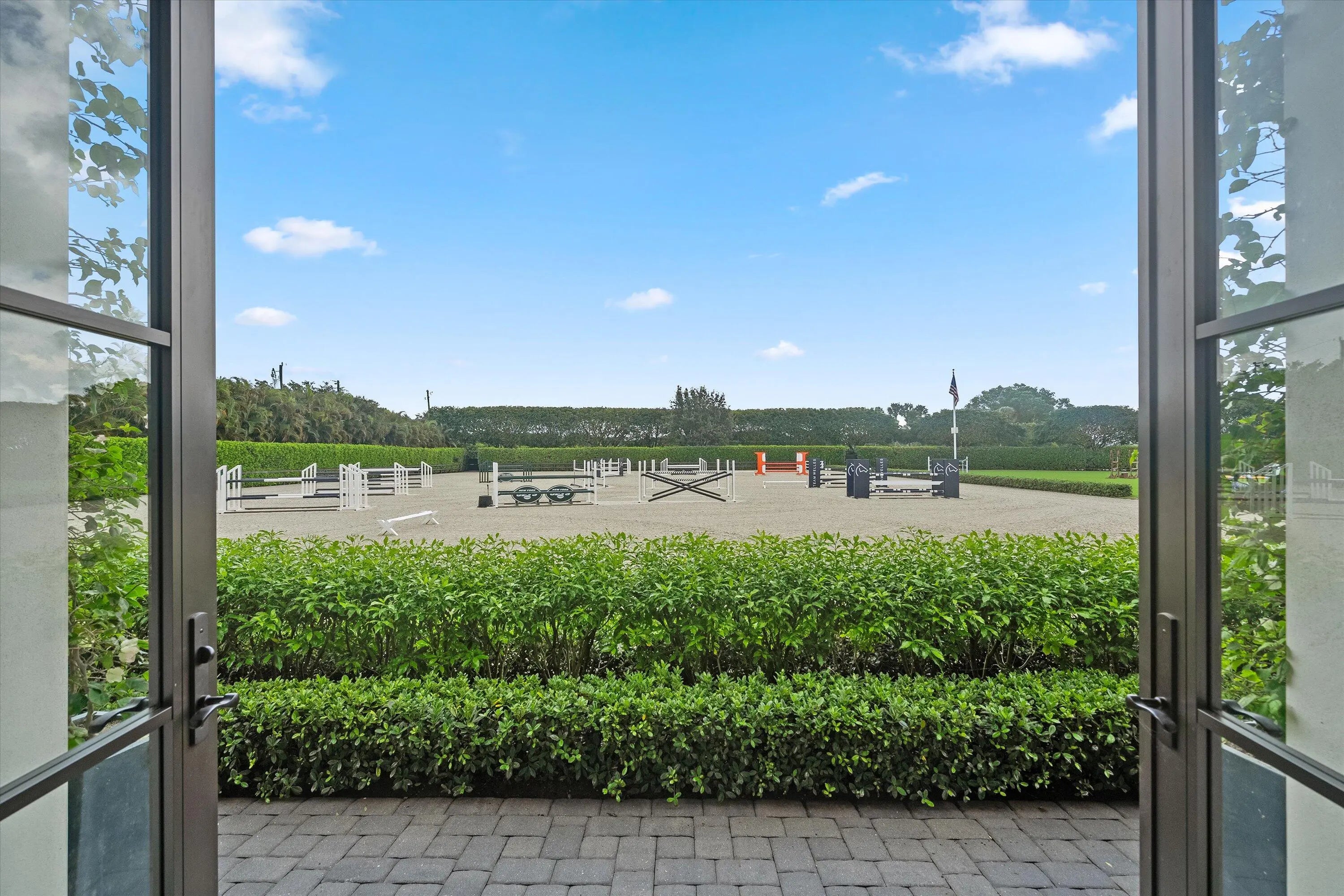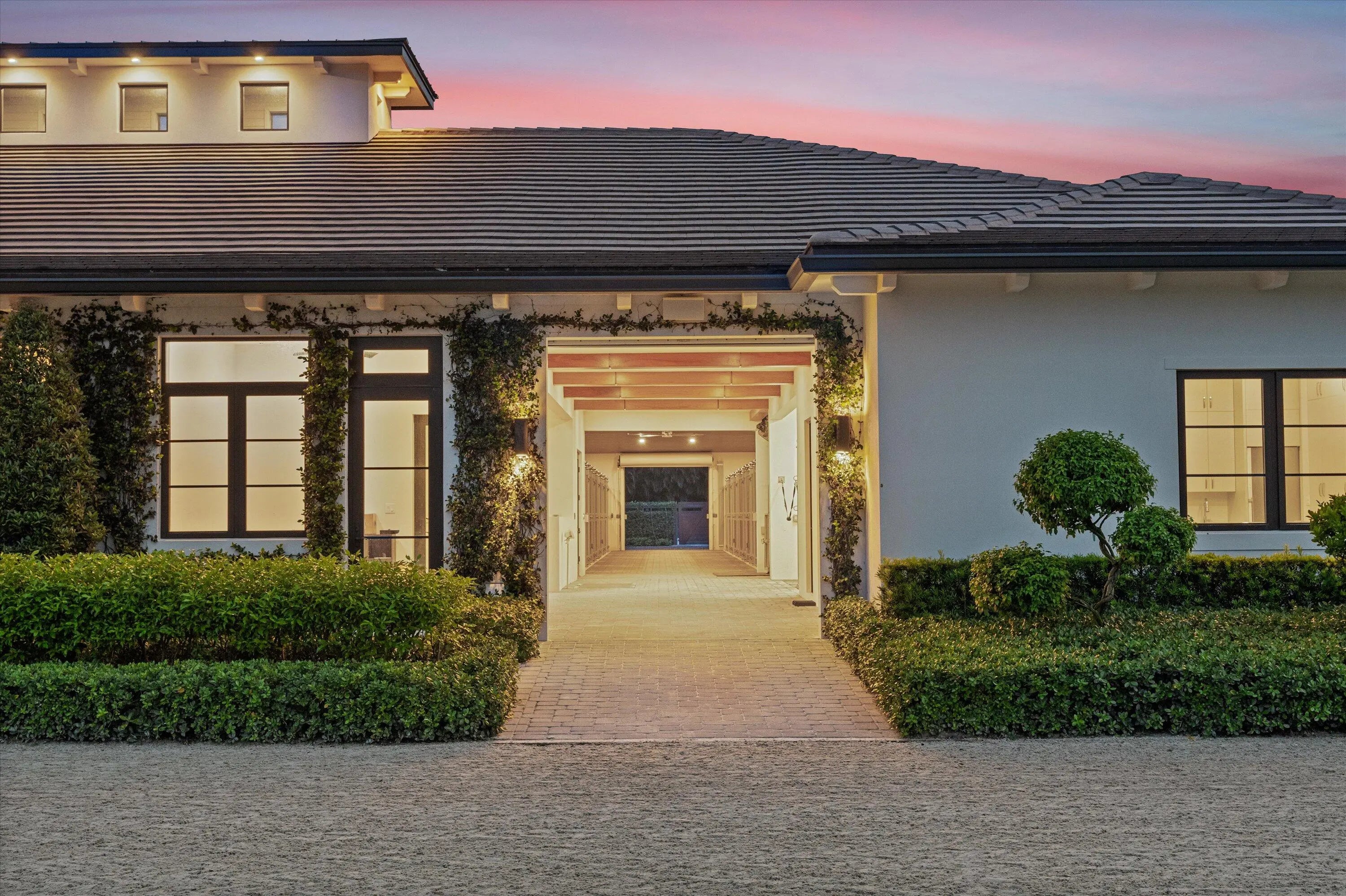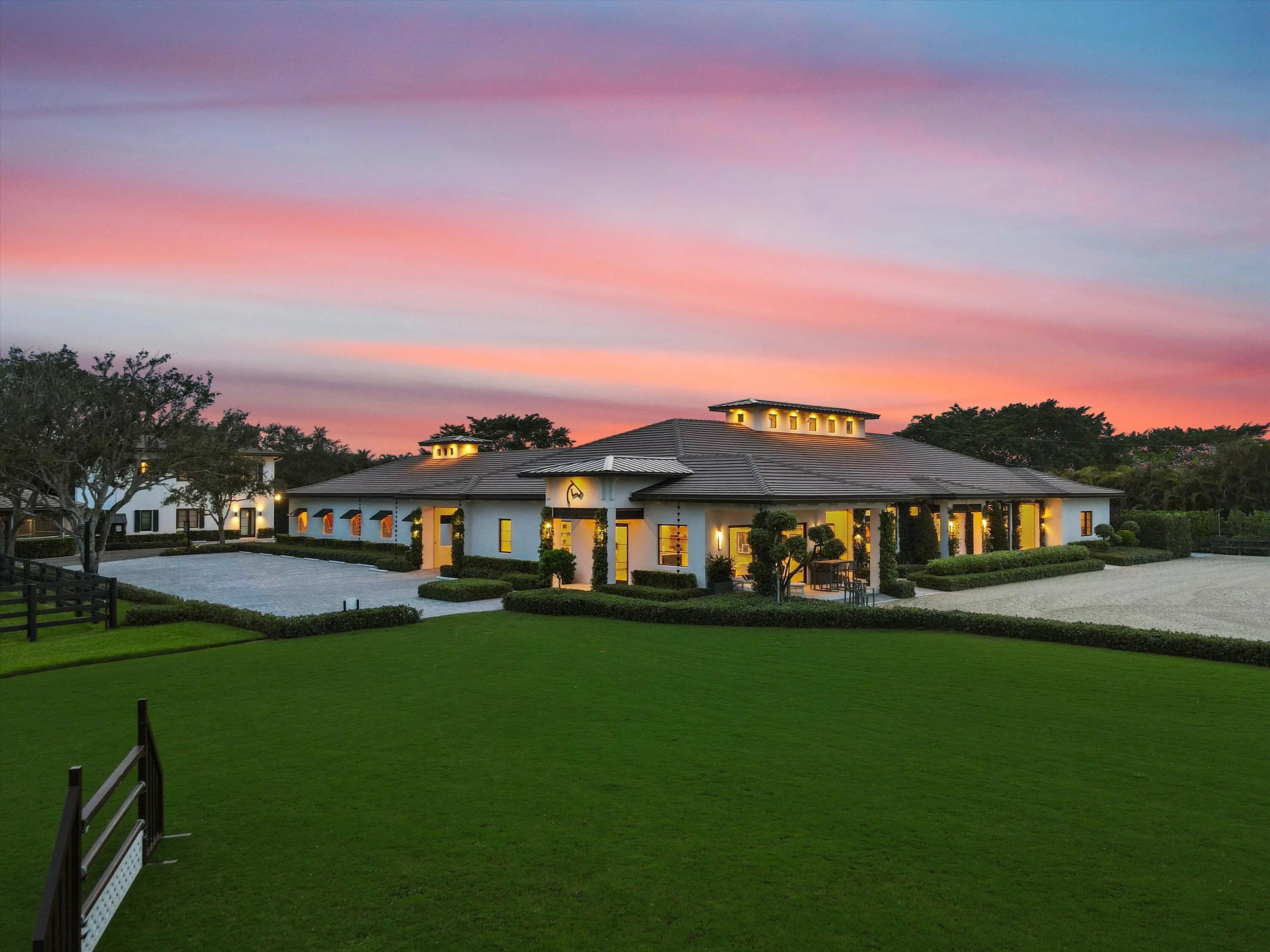 Welcome to 4675 Stables Way. Completed in 2022 to the highest standards, this gated equestrian compound offers a rare blend of modern luxury and professional-level functionality. Ideally located within hacking distance to both the new and existing WEF show grounds. The experience begins upon arrival through the tree-lined driveway, leading to designated parking and a thoughtfully designed layout. At the center of the property is a stunning 24-stall CBS barn with wide aisles, vaulted ceilings, and exceptional airflow throughout. Each stall is equipped with custom shutters for both sun and storm protection. The barn features five custom grooming stalls with concealed cabinetry and multiple power outlets, two wash stalls with hot and cold water, an oversized laundry room with dual washers and dryers, a double feed room, and a dedicated hay room with outlets for Haygain steamers. A spacious tack room with automatic sliding doors is thoughtfully located directly opposite the grooming stalls for convenience and efficiency. The training facilities are beyond impressive, including a 240' x 150' Wordley Martin arena, an expansive irrigated grass field capable of hosting a full Grand Prix jump course, a covered six-horse walker with artificial turf footing, fans, and screens, and a 60-foot round pen. Wellness is prioritized with the Hippocenter aqua treadmill and spa, seamlessly built at ground level, along with a below-grade horse scale integrated into the property. The farm is beautifully laid out across 5.3 acres with six grass paddocks and advanced drainage infrastructure, including a rock-base system beneath the grass field and select paddocks. The rider's lounge serves as a welcoming focal point, offering a full kitchen with center island, full bath, dining and seating areas, and relaxing views of the arenas. Adjacent are a rider's locker room with organized storage and two offices overlooking the arena. Additional highlights include a full-property fly spray system, Big Ass fans throughout, RO filtered water, extensive security cameras with paddock views accessible from the grooming stalls, and a Generac generator with automatic transfer switch. WiFi spans the entire property via a Starlink network, while Sonos audio enhances both the arena and grass field. Purpose-built logistics include a trailer-friendly driveway, a dedicated farrier station, and a fully enclosed manure facility accessed by a garage door with its own fly system. The property also features two spacious 2-bedroom, 2-bathroom staff apartments with private entrances and dedicated outdoor space, as well as electric vehicle and golf cart charging stations and a private dog run. This is an exceptional environment where owners, clients, support staff, and above all, the horses are set up to thrive at the highest level. DISCLAIMER: All information provided to you regarding this Property by listing agent and her associates has been obtained from third parties such as the Multiple Listing Service, public records and other sources. All Buyers should independently verify all information provided regarding this Property. The Seller, listing agent and broker make no representation as to the accuracy of this information. The Seller, Realtor and Listing broker make no representation as to the accuracy of this information.