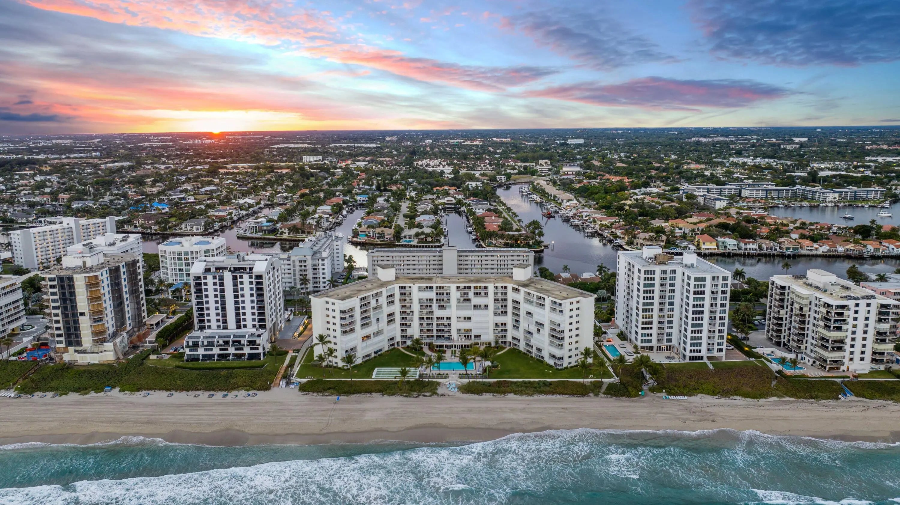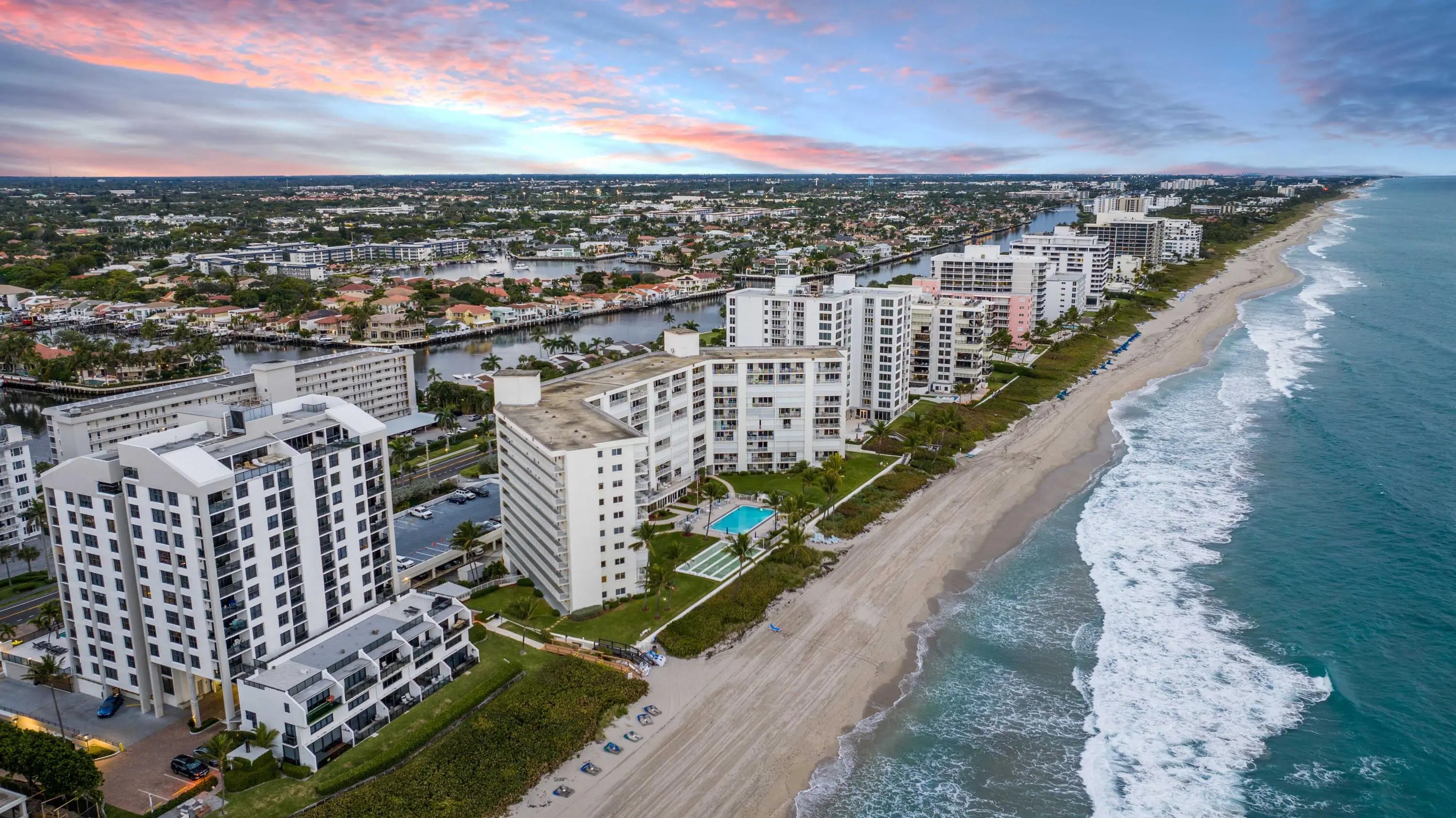Perched high above the shoreline, this rare penthouse residence at 3101 S Ocean Blvd 1002 offers the best of both worlds: sweeping direct ocean views by day and breathtaking intracoastal sunsets by night. With no units above you, privacy and serenity are unmatched. The open kitchen and thoughtfully designed layout capture views from every room, filling the home with natural light and endless blue horizons. This two-bedroom, two-bathroom residence features impact glass throughout and a grandfathered in-unit washer and dryer, a true rarity for the building. Offered as an incredible opportunity with tremendous upside, the home presents exceptional potential to customize and elevate to your vision. Simply put, you cannot find views like this at this price point. The oceanfront building features a pool overlooking the Atlantic, completing the quintessential coastal lifestyle. A compelling value for a penthouse vantage point that is truly irreplaceable.