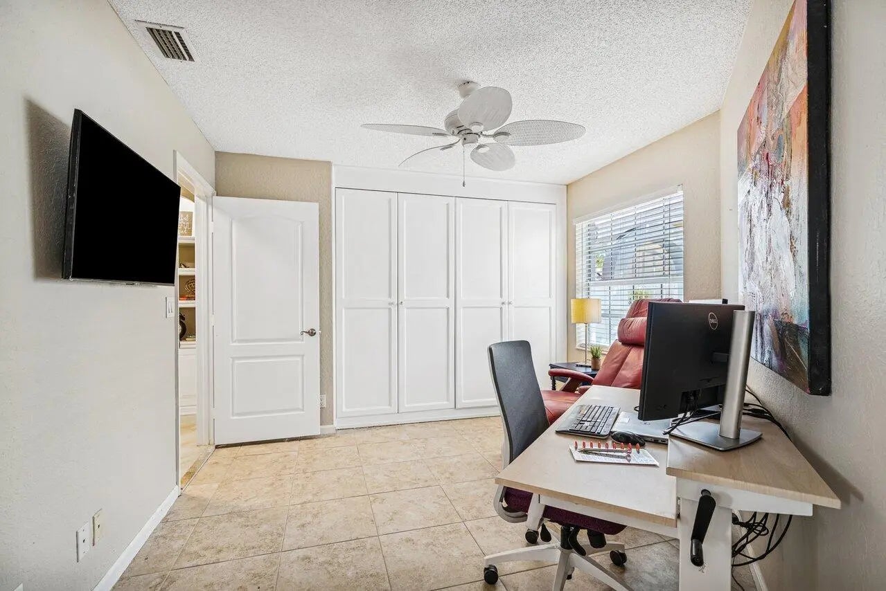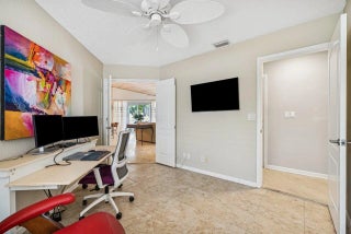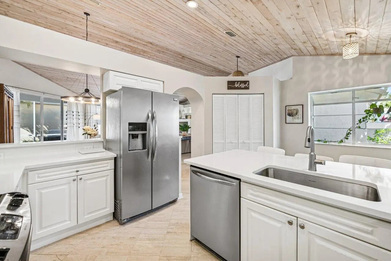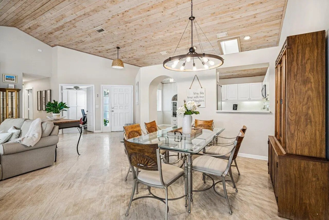 A beautifully updated residence in the gated community of Breakers West, offering comfort, style, and serene lake views with an expansive green space just beyond your backyard. Major improvements include a new roof (2022), new gutters (2022), a new A/C system (2026), a new pool pump and filter (2024), updated pool electrical (2026), and new pool enclosure screens (2026), providing peace of mind for years to come. Inside, the home features vaulted wood ceilings, tile flooring, and custom built-ins that anchor the spacious living room with warmth and character. The split floor plan enhances privacy and flow, making it ideal for both everyday living and entertaining guests. Step outside to a sparkling pool framed by tranquil water views -- the perfect backdrop for relaxed Florida living.