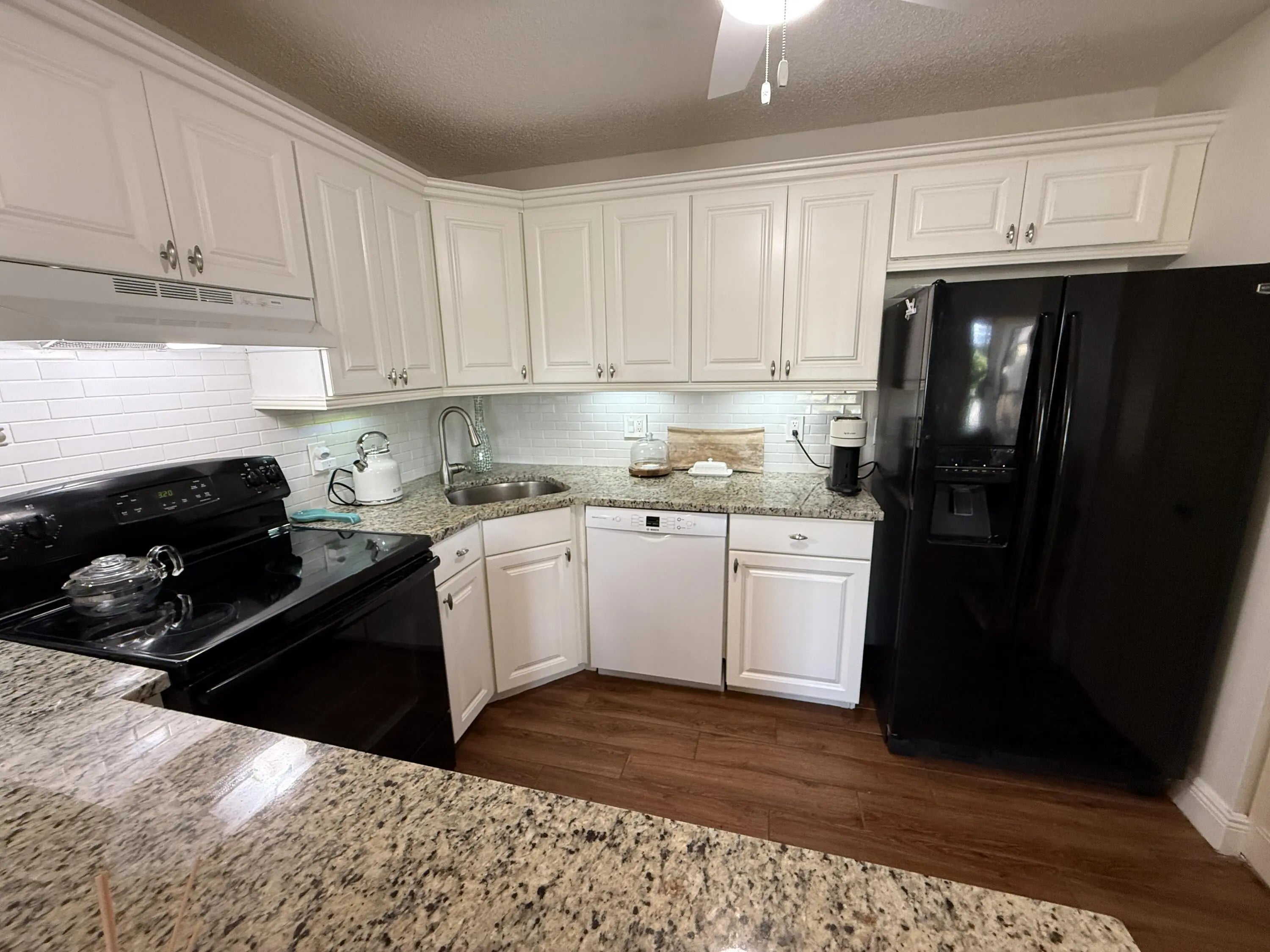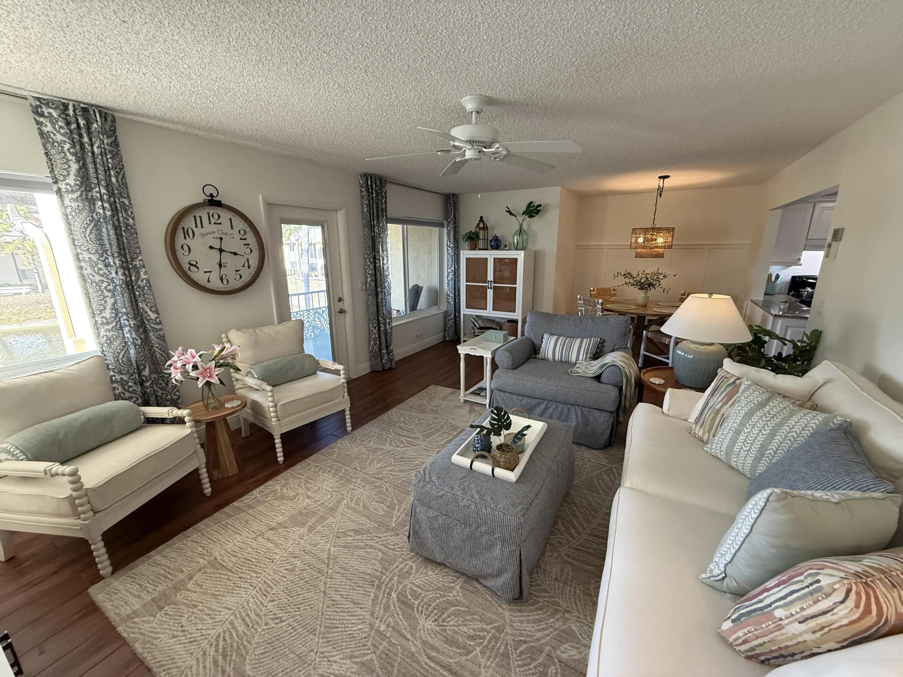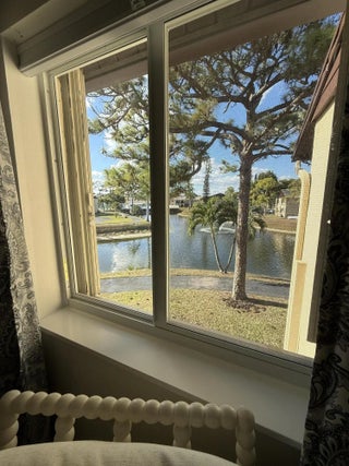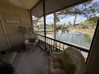 Lovely water views from every window! New roof, impact windows & door. New electric panel. New instant hot water heater. New light fixtures, elec. switches & baseboards. Blackout window shades. Wood look tile flooring in LA's & wood look vinyl in BR's. Kitchen features black granite counters, newer cabinets, subway tile backsplash & over/under cabinet lights. Remodeled baths. Screen porch provides relaxing views of the lake & fountain surrounded by mature pine trees. This 2nd floor unit just steps away from assigned parking space. Plenty of guest parking. Both bedrooms have walk-in closets. Storage room on front porch. Condo fee $433/mo includes: Clubhouse, Pool, Tennis, Pickle Ball, Shuffleboard, Cable/Internet, Ext. Building Insurance, Maint. of Exteriors & Lawn care.