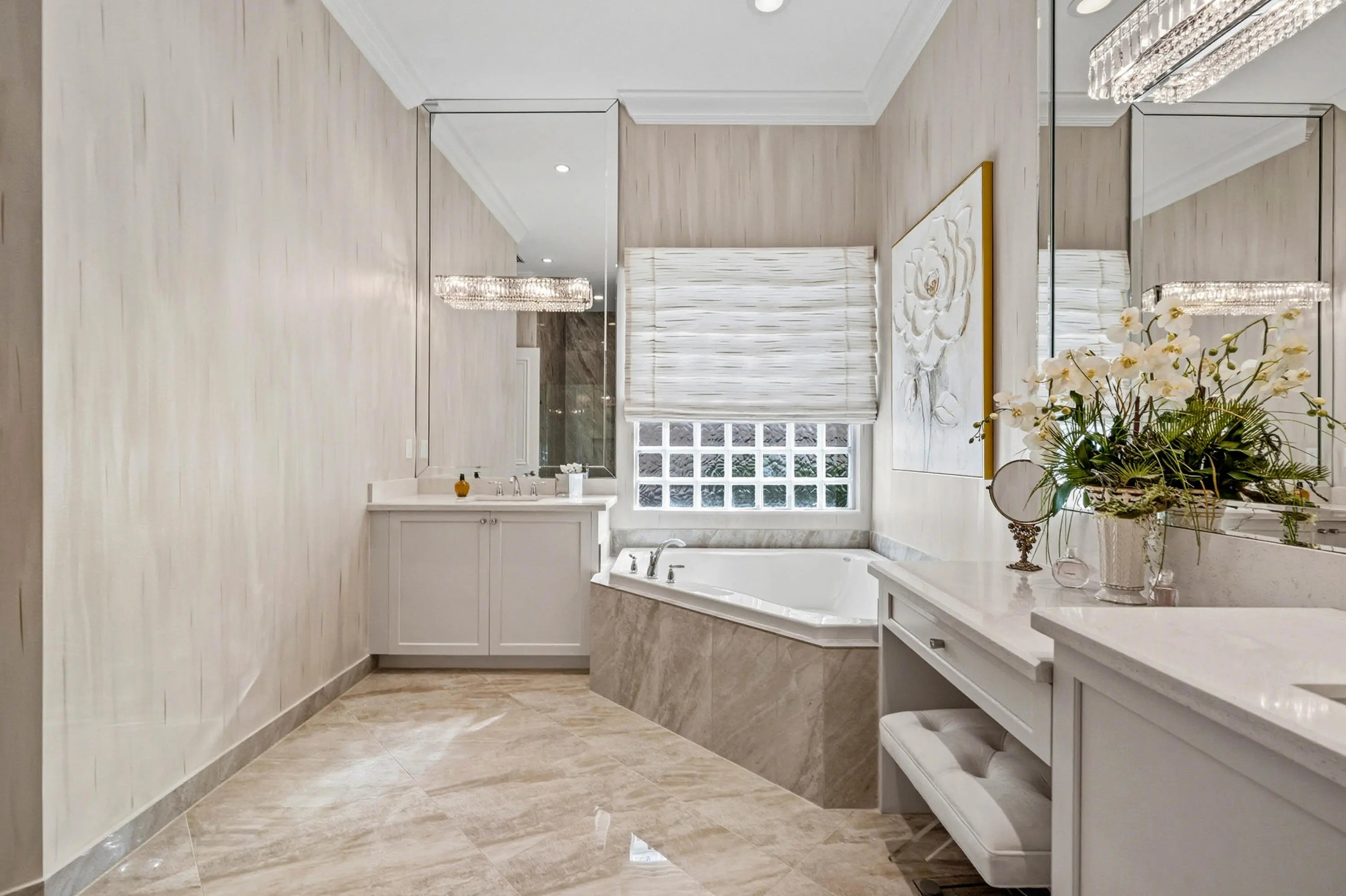 Built-in Features, Entrance Foyer, High Ceilings, Pantry, Walk-In Closet(s), Bedroom Layout - Split, Closet Cabinetry, Custom Mirrors, Roman Tub
