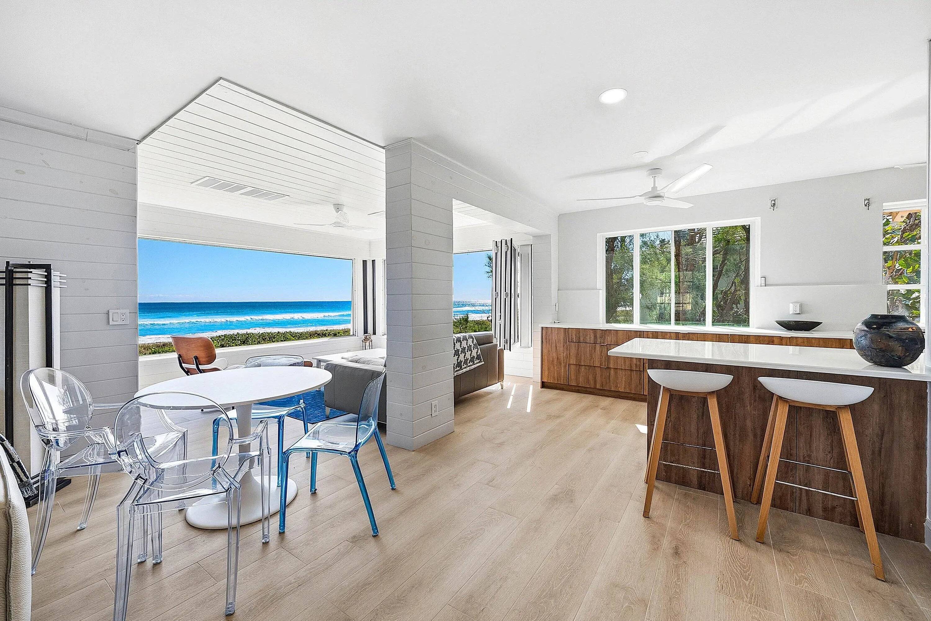 Rarely available 1,624-square-foot, two-bedroom, two-bath oceanfront pied-à-terre in a quintessential Delray Beach community. This recently renovated residence showcases a dramatic wall of windows that fold back, seamlessly blending indoor and outdoor living, and offering unobstructed, sweeping east and south ocean views. Porcelain tile flooring flows throughout the home, complementing the inviting great room with custom built-in cabinetry and a spacious, well-appointed kitchen. The Florida room and office/deneach offering stunning ocean and beach viewscreate the perfect backdrop for dazzling sunrises and relaxed coastal living. Ready for immediate enjoyment, this exceptional residence is ideally located near all that Delray Beach and South Florida have to offer