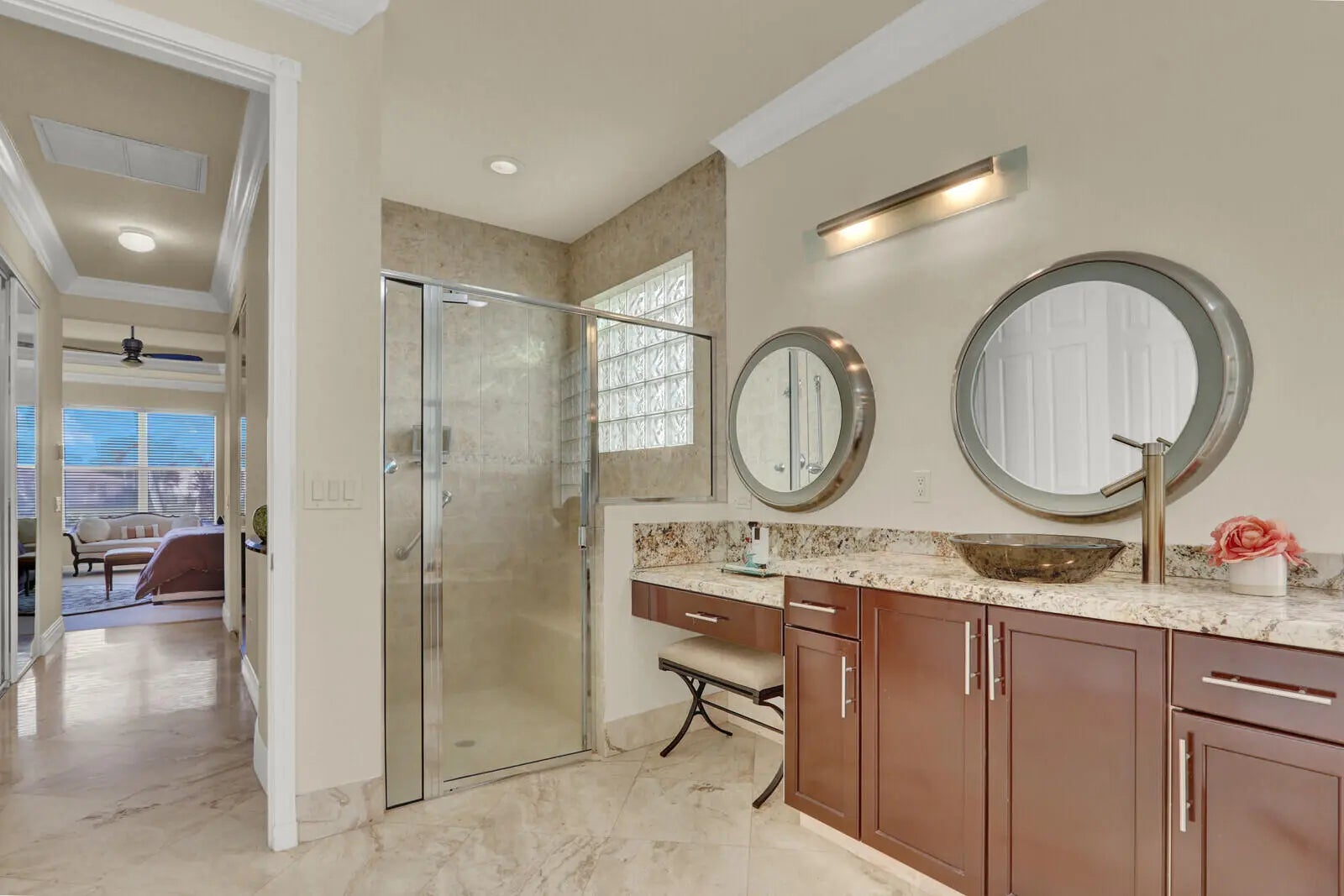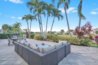 The ultimate Florida Lifestyle in the Vibrant 55+ Community of Valencia Palms. This fully furnished 4 Bedroom home has a seamless flow from the foyer to the double glass doors leading to the expansive backyard paver patio (2,000+ sf) and gorgeous lake views! A custom stone wall TV room is adjacent to the spacious kitchen with granite counters. The light-filled rooms and open floor plan have soaring ceilings throughout. The Primary Suite features a Sitting Area w/door to the patio, 2 Walk-in Closets & luxurious Bath w/dual vanities, oversized Shower & soaking tub. Three spacious Bedrooms, with one currently set up as an office. Resort Style Clubhouse features a Tropical Pool Setting w/Covered Cabanas, Lap & Resistance Pools, and an indoor/outdoor Cafe and full-service Fitness Center. Fitness Center has locker rms, steam rm & aerobics classes. Enjoy the outdoors with Har-Tru tennis, pickleball, bocce, basketball and walking/bike paths. For indoor entertainment there's a Grand Ballroom, three card rooms, and billiard tables for tons of fun! Quarterly Maintenance Fee includes Lawn Care, Cable, Internet, Exterior House painting & 24-hour Manned Security Gate!