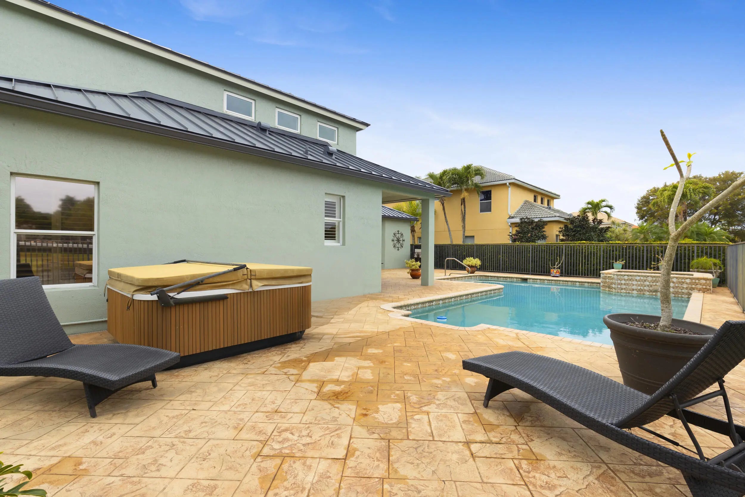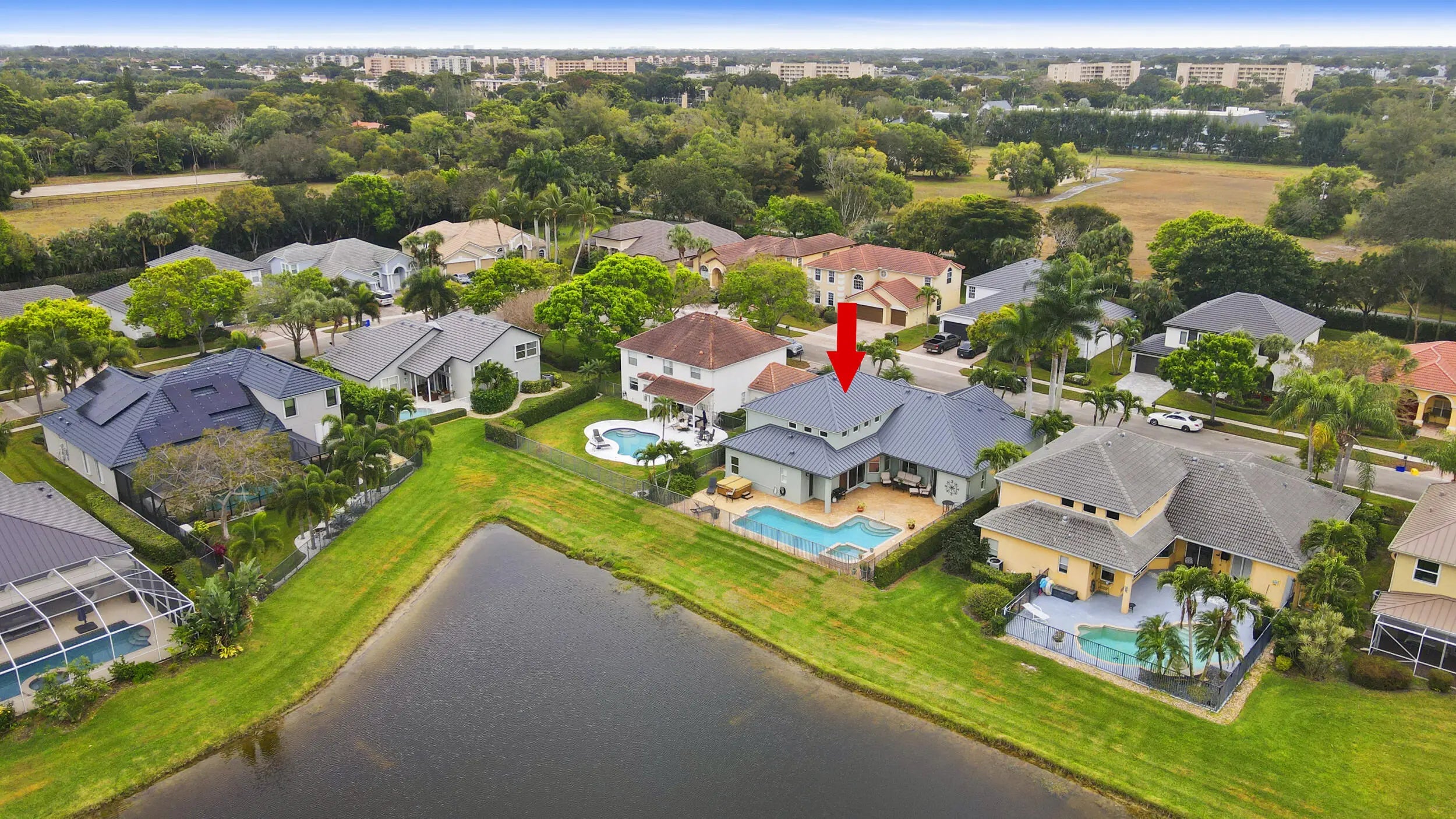 Current price adjustment aligned to allow flexibility for personalization of cosmetic finishes. Picture yourself enjoying a South Florida sunset in January from your heated spa, overlooking the lake, while your neighbors up north shovel their driveways. This is the true South Florida lifestyle. This is Monterey Estates -- a boutique gated community of only 48 homes in Delray Beach, where life moves at the pace you always said you wanted. Five bedrooms, four baths, 3,376 SF with a brand-new standing seam metal roof and a first-floor guest suite for parents who stay the winter. Warren American Whiskey Kitchen is five minutes up Lyons Road. Atlantic Avenue is twelve minutes east. Toes in the sand at Delray Beach under twenty. Let me tell you about Monterey Estates, because most people drive right past it and never know it exists. That is by design. Tucked just south of Lake Ida Road, one block east of Hagen Ranch, this boutique gated community of Mediterranean-style estate homes was built in the early 2000s and has quietly become one of the best-kept residential secrets in all of Delray Beach. There are no billboards. No model homes. No banner ads pushing you toward it. In the last two years, only three homes in the entire community have changed hands. That is not a coincidence people who live in Monterey Estates do not leave. The community wraps around a lake that catches the last light of the day in a way that makes your evening walk feel like it belongs in a different time zone. The streets inside the gate are exactly the kind of place where everyone cruise on golf carts after dinner because in Delray Beach, street-legal golf carts are a way of life, and these roads were made for it. This home has been owner-occupied and cared for not rented, not flipped, not staged to hide problems. The kind of home where the owners invested in a brand-new metal roof because they planned to stay. Life had other plans, and now it is available. 7299 Serrano Terrace sits on a quarter-acre estate lot with direct lake views. Five bedrooms, four full bathrooms, 3,376 square feet of open-concept living and five real bedrooms, not an office someone relabeled to boost the listing. The five bedrooms work the way your life actually works: a guest wing for anyone who visits every winter, an office with a real door, an upstairs living area the grandkids take over on holidays or bedrooms for teenagers who need their own space and a media room for movie nights. This home fits however your is shaped right now. The main floor flows from the gourmet kitchen through the family room and out to the lanai in one unbroken sightline the kind of layout where you are prepping dinner at the island, watching the pool through the sliders, and carrying on a conversation with guests in the living room all at the same time. Volume ceilings give the main floor a sense of scale that photos do not capture you feel it when you walk in. A first-floor guest suite with a full bathroom gives visiting guest their own wing their own space, their own privacy, no one stepping over anyone. A three-car garage tiled and fitted with built-in cabinets handles the golf cart, the bikes, and the storage that South Florida homes never seem to have enough of. The sellers also installed a brand-new standing seam metal roof, which means decades of hurricane-rated protection already paid for and an insurance quote that reflects it. THE BACKYARD THAT BECOMES YOUR SOCIAL LIFE The private backyard faces the community lake, and because of the home's west-facing orientation, you are watching sunsets from your heated spa while the water turns orange and pink in front of you. That is what a Tuesday evening looks like at this address. The outdoor space is where this home separates itself from everything else at this price point. The paver deck runs wide and deep enough room to install an outdoor kitchen with a built-in grill and bar top where you flip steaks while your guests sit lakeside with a drink. Or picture a tiki hut bar with stools and string lights where Friday nights become the thing your friends look forward to all week. Add a pergola over the dining area and you have a covered outdoor living room that works twelve months a year in this climate. Thanksgiving dinner outside. Super Bowl parties by the pool. Sunday mornings with coffee and the sound of nothing but water and birds. The lot is a quarter acre oversized for this community which means you have real yard space beyond the pool deck. Enough for kids, enough for a dog, enough for the kind of entertaining where nobody goes inside until someone notices it is midnight. FIVE MINUTES FROM YOUR FRONT DOOR Here is where I stop sounding like an agent and start talking like someone who lives here. Five minutes north on Lyons Road is Warren American Whiskey Kitchen. Over 800 whiskeys behind the bar, a short rib that will ruin every other restaurant for you, and a weekend brunch where you walk in planning to stay an hour and leave two and a half hours later. Five minutes. That is your neighborhood spot. For weekday breakfast, Keke's on West Atlantic is eight minutes east almost a thousand reviews and a line out the door for a reason. Downtown, The Bridge Cafe does a breakfast that makes you forget you have somewhere to be. Green Owl is a cash-only local institution. And Farmhouse Kitchen by Gary Rack is right on the Avenue for the Saturday brunch you actually get dressed for. ATLANTIC AVENUE AND EVERYTHING THAT COMES WITH IT Downtown Atlantic Avenue is twelve to fifteen minutes east. That is the honest number. And what you get when you arrive is the most walkable downtown in Palm Beach County maybe in all of South Florida. Tramonti for Italian. Le Colonial for Vietnamese-French. Deck 84 on the Intracoastal where you sit with a glass in your hand and watch the boats slide by. El Camino for tacos and mezcal on a night that needs no plan. Dada tucked into a little bungalow on Swinton that feels like a secret you fo