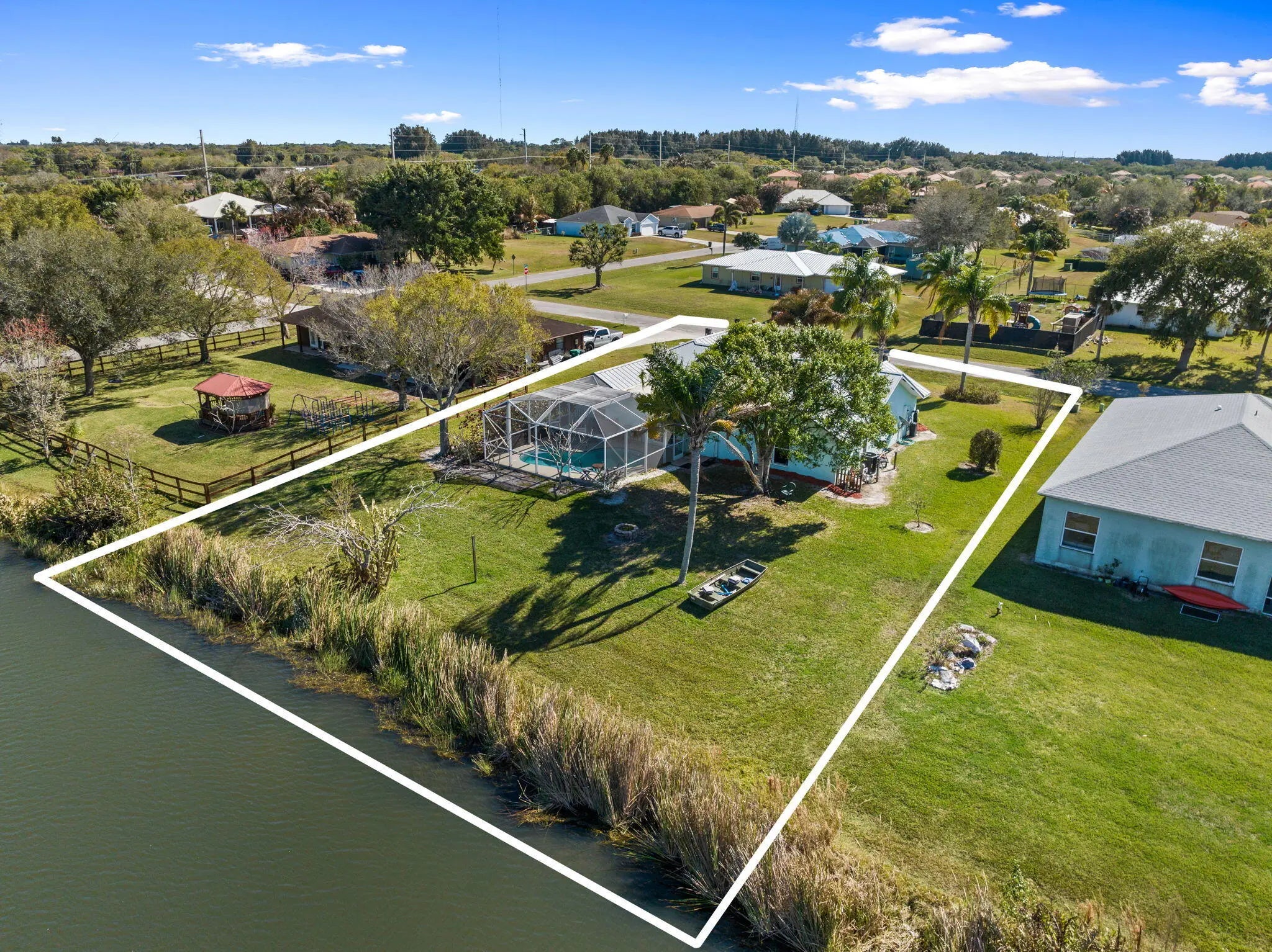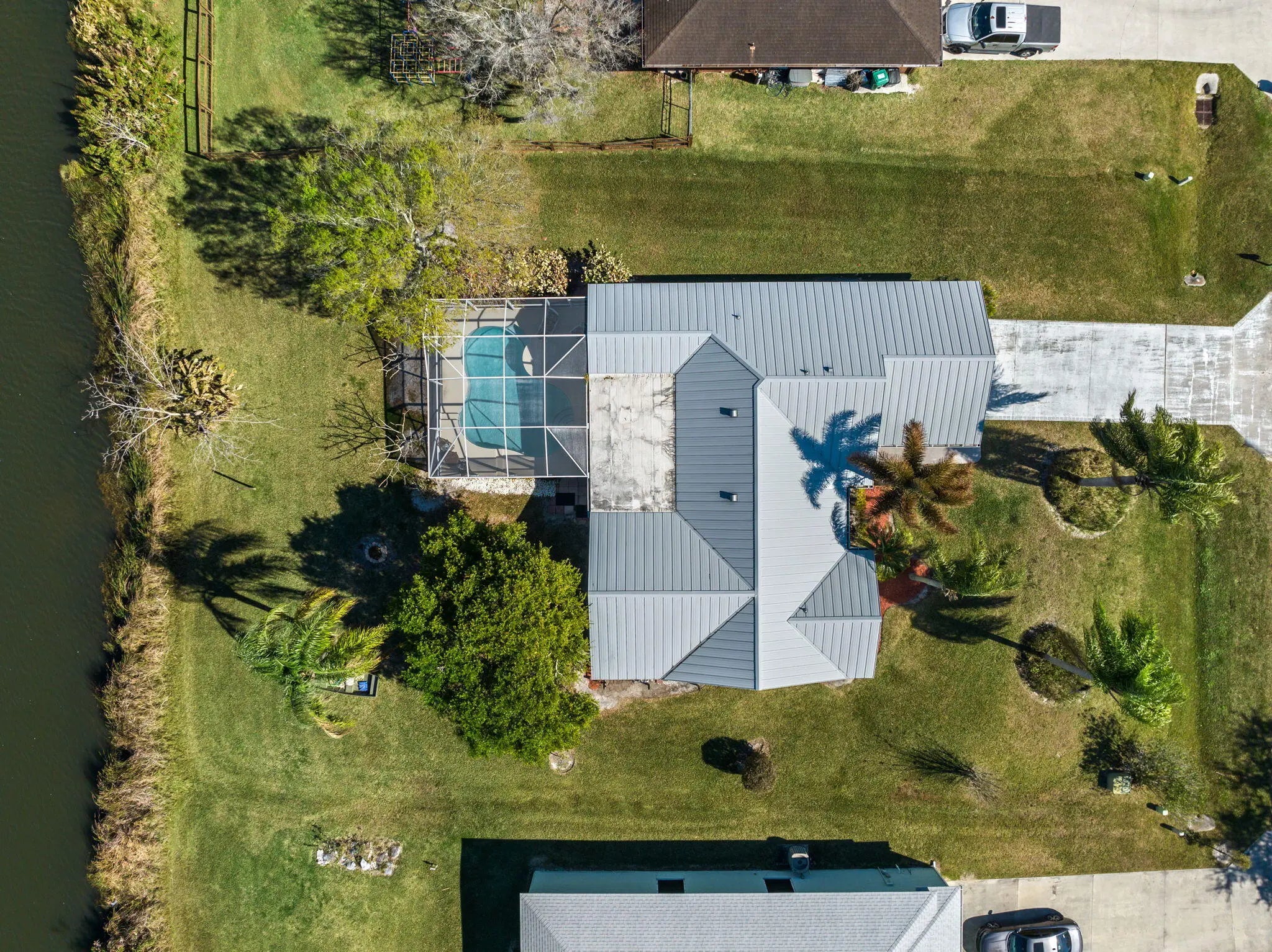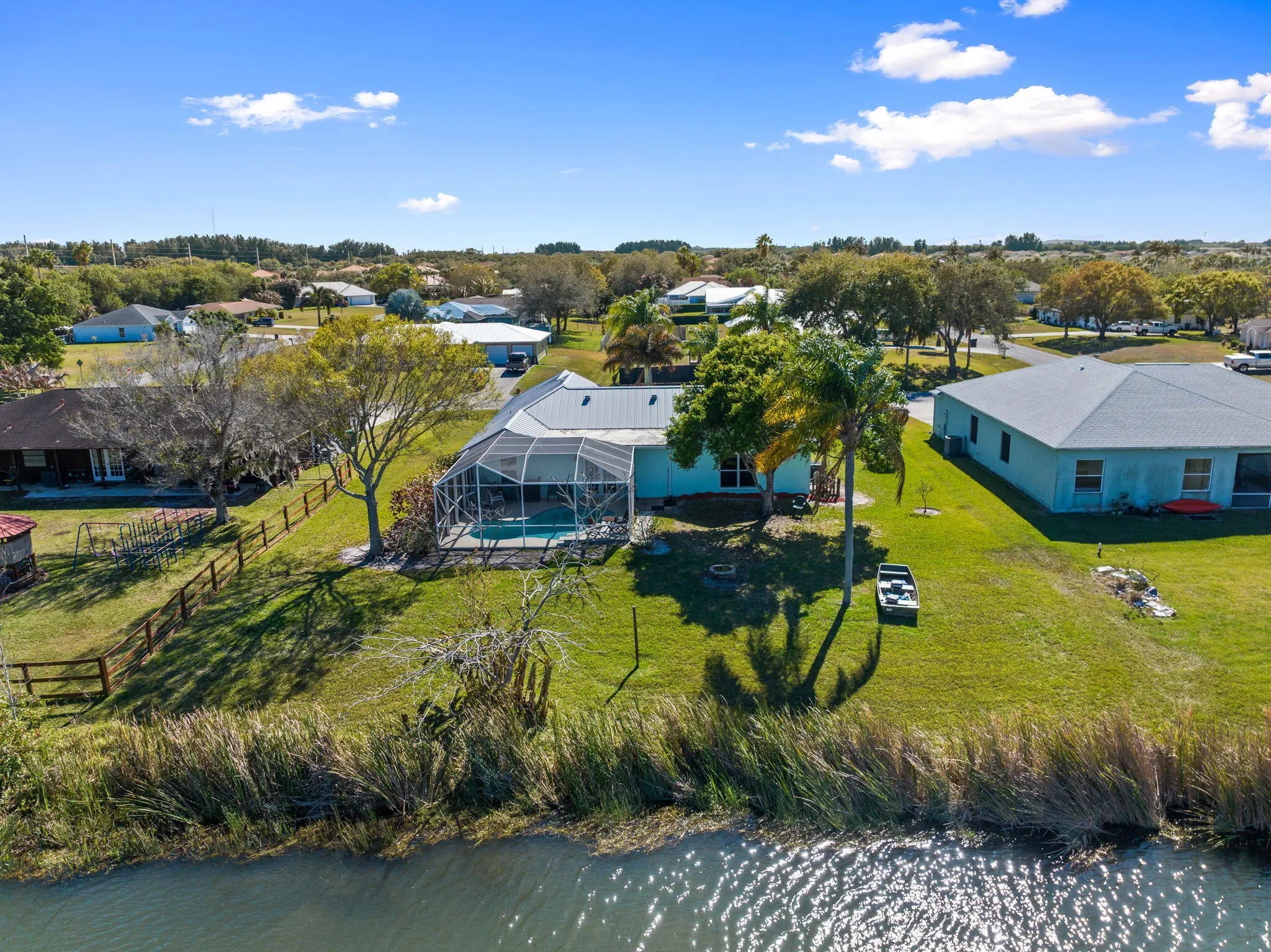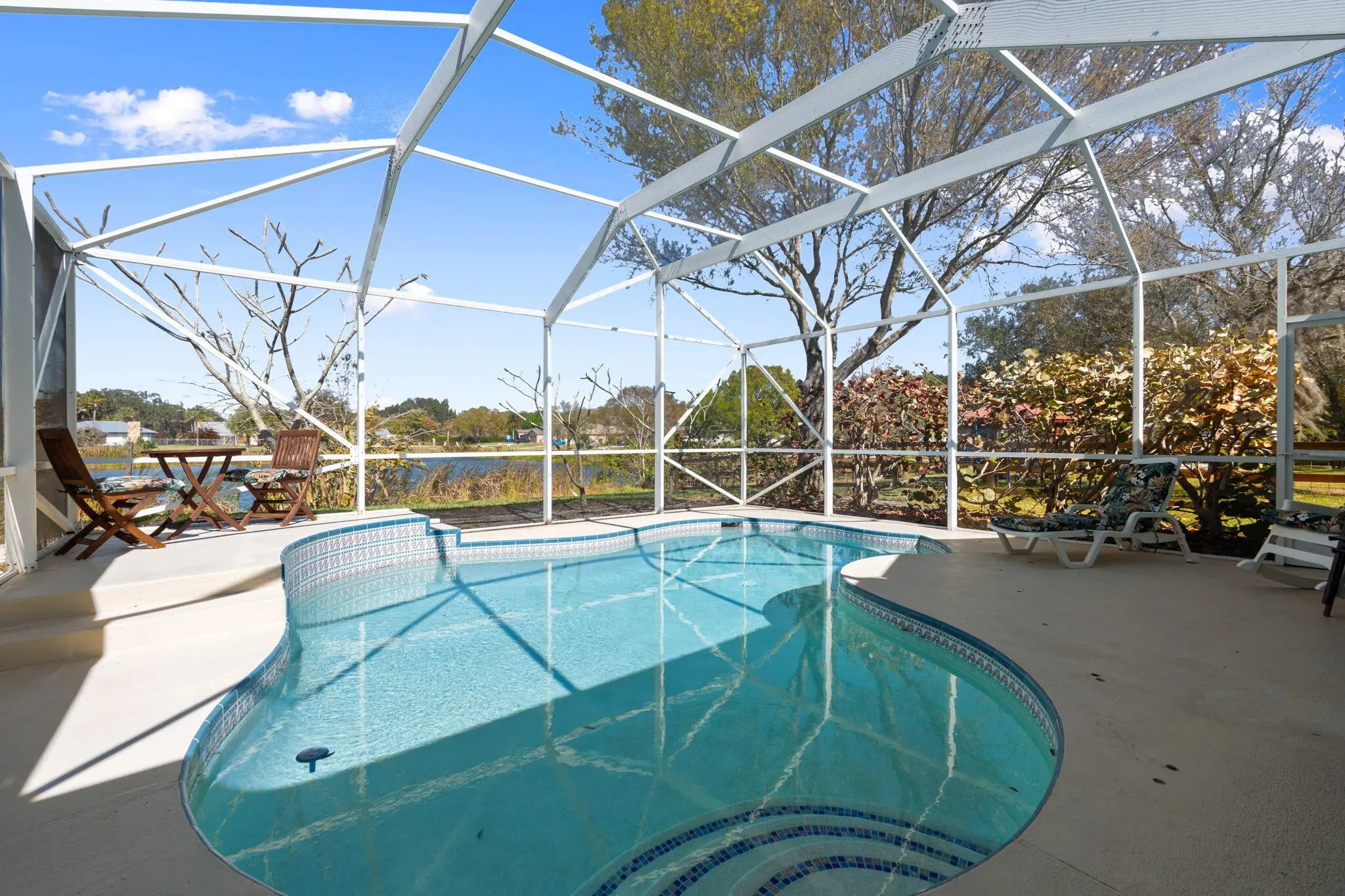 Well-maintained three-bedroom, two-bath split-plan, two car garage, pool home on an OVERSIZED lakefront lot. Features include a NEW 2026 A/C, 2018 metal roof, screened heated pool, open-concept living with vaulted ceilings, kitchen with stainless appliances, 2 year old Bosch Dishwasher, Florida room, and office/craft space. Owner's suite offers a walk-in closet and spacious ensuite bath. Low HOA includes water, with peaceful wildlife views and fishing right from the backyard.