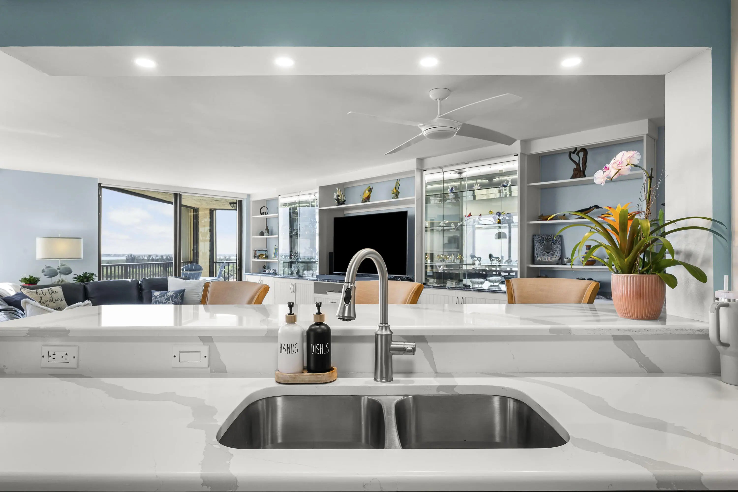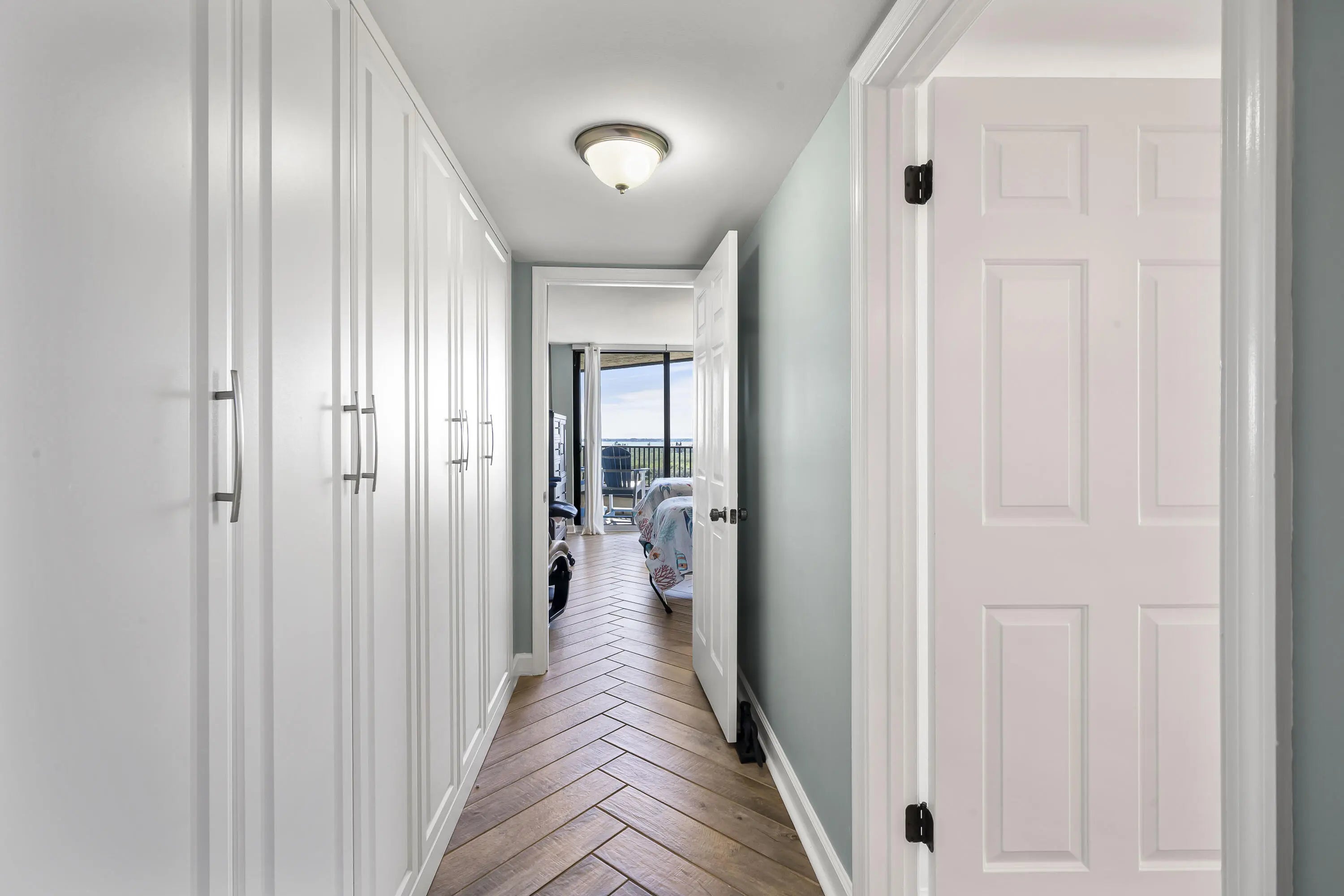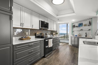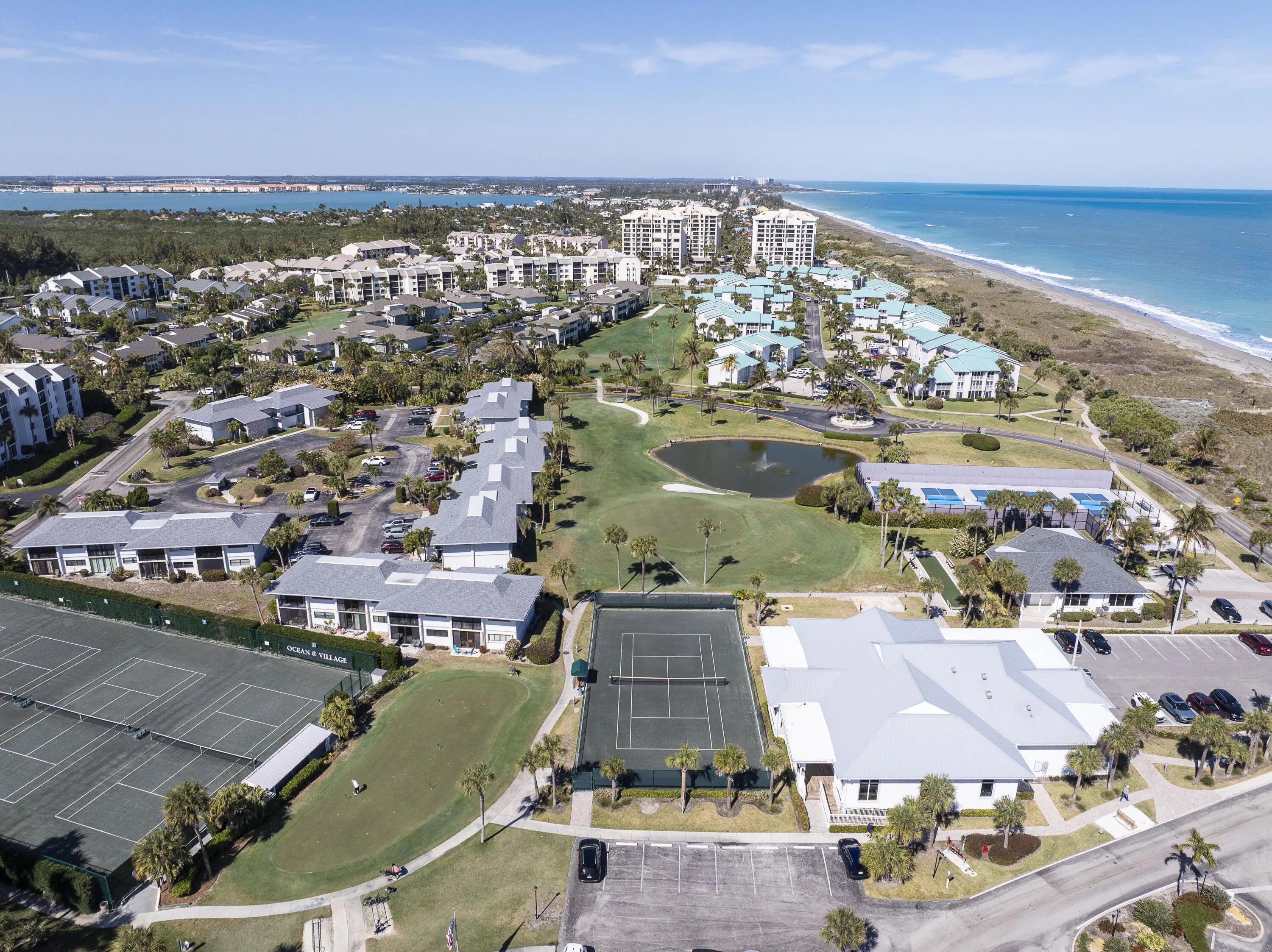 Stunning panoramic ocean and river views await from this beautifully upgraded 10th-floor residence. Enjoy a desirable floor plan with only 4 units per floor, offering privacy & tranquility. Upgraded kitchen and baths. Custom built-ins throughout. Impact windows & sliders provide peace of mind, complemented by accordion storm shutters on the sliders. Includes a one-car garage. Located in Ocean Village, a premier oceanfront community boasting over a half-mile of pristine beachfront and an unmatched amenity package. Residents enjoy a 9-hole executive golf course, four heated pools, tennis, pickleball, shuffleboard, bocce, a brand-new clubhouse and fitness center, and an on-site oceanfront restaurant—plus so much more. This is coastal living at its finest! See Supplement for more info The master bedroom suite (bedroom, bathroom, and walk in closet is almost 400 sq feet! Magnificent view Ocean/River views overlooking 2 miles of pristine state preserved beachfront (will never be developed!). Electric Silhouette blinds throughout. The roof on this building was replaced in 2024 with reserves at 100%. The substantial income from the roof top antennae lease helps to pay for capital projects such as building painting).