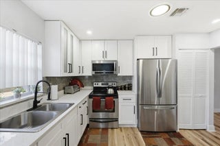 This attractive end unit is situated within a charming 55 plus community, offering residents a welcoming and peaceful environment. Its prime location provides convenient walking access to the community pool and club house, making it easy to enjoy the available amenities. Recently renovated throughout, the unit boasts all tiled flooring, ensuring both durability and modern style. The screened-in porch is also tiled, creating a comfortable space to relax while enjoying the outdoors in privacy. The unit features a spacious two-bedroom, two-bathroom layout, ideal for comfortable living. A stackable washer and dryer provide added convenience, while newer appliances enhance everyday functionality. The open floor plan includes a welcoming living room, a designated lounging space, and an open dining room, making the unit perfect for entertaining or relaxing. The kitchen is thoughtfully designed to be open to both the living room and lounging area, promoting easy interaction and a sense of connectivity throughout the home.