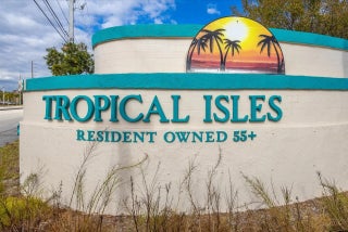 Beautifully updated 2/2 in the lovely 55+ community of Tropical Isles. Waterfront view from inside screened patio. Ceiling fans throughout; inside laundry; plenty of cabinets; spacious bedrooms. This is the one!