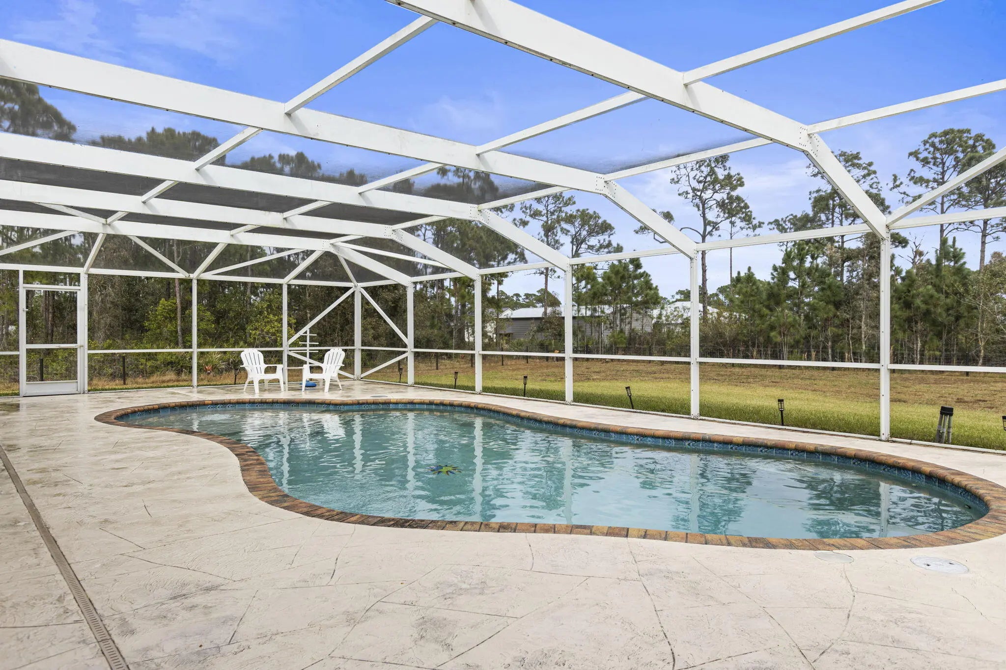 Country living at its best in North St. Lucie County! Peaceful 2.1-acre AR-1 zoned property with county taxes only. Enjoy the freedom to ride 4-wheelers and side-by-sides. Conveniently located just 5 minutes to the Indian River Lagoon, 10 minutes to North Beach, and 15 minutes to downtown Fort Pierce, Vero Beach, and I-95.Meticulously maintained 3BR/3BA home featuring two master suites, open-concept layout, and pocket sliders leading to a large screened saltwater pool overlooking lush vacant land. Fire pit for cool evenings. Move-in ready with A/C and water heater (2022) and metal roof (2012). Home comes fully furnished and includes a generator. Property is fully fenced with automatic gate and includes a new 40x72 pole barn with full electric. A rare opportunity for private country