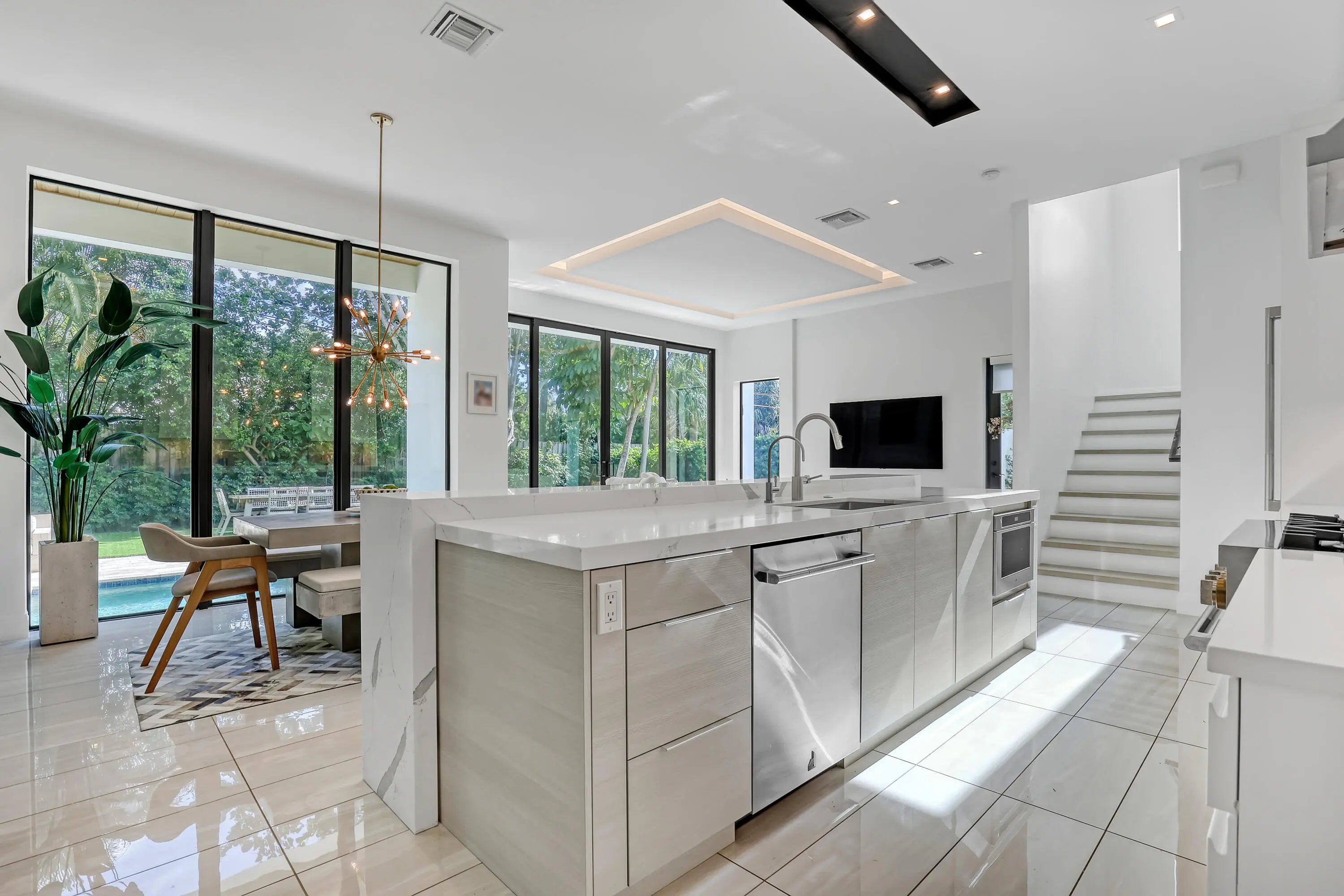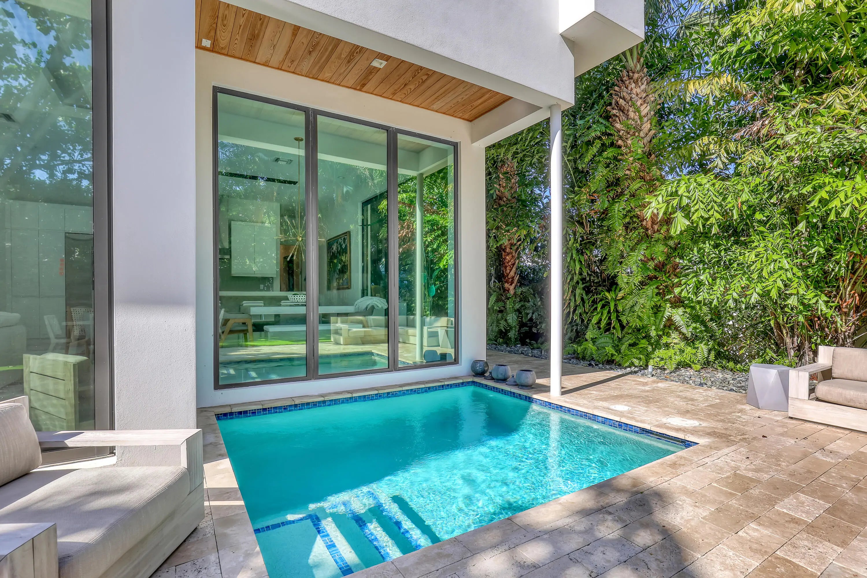 SEASONAL RATES VARY. AVAILABLE NOW. Five blocks from Downtown Delray Beach, this stunning new modern townhome, custom built by Marc Julien Homes and designed by Borrero Architecture, features a well-conceived open floor plan with a great indoor-outdoor flow. Its walled and gated private backyard, landscaped with sea grapes, palms and Podocarpus, features a sun-splashed saltwater pool and patio with an outdoor grill.