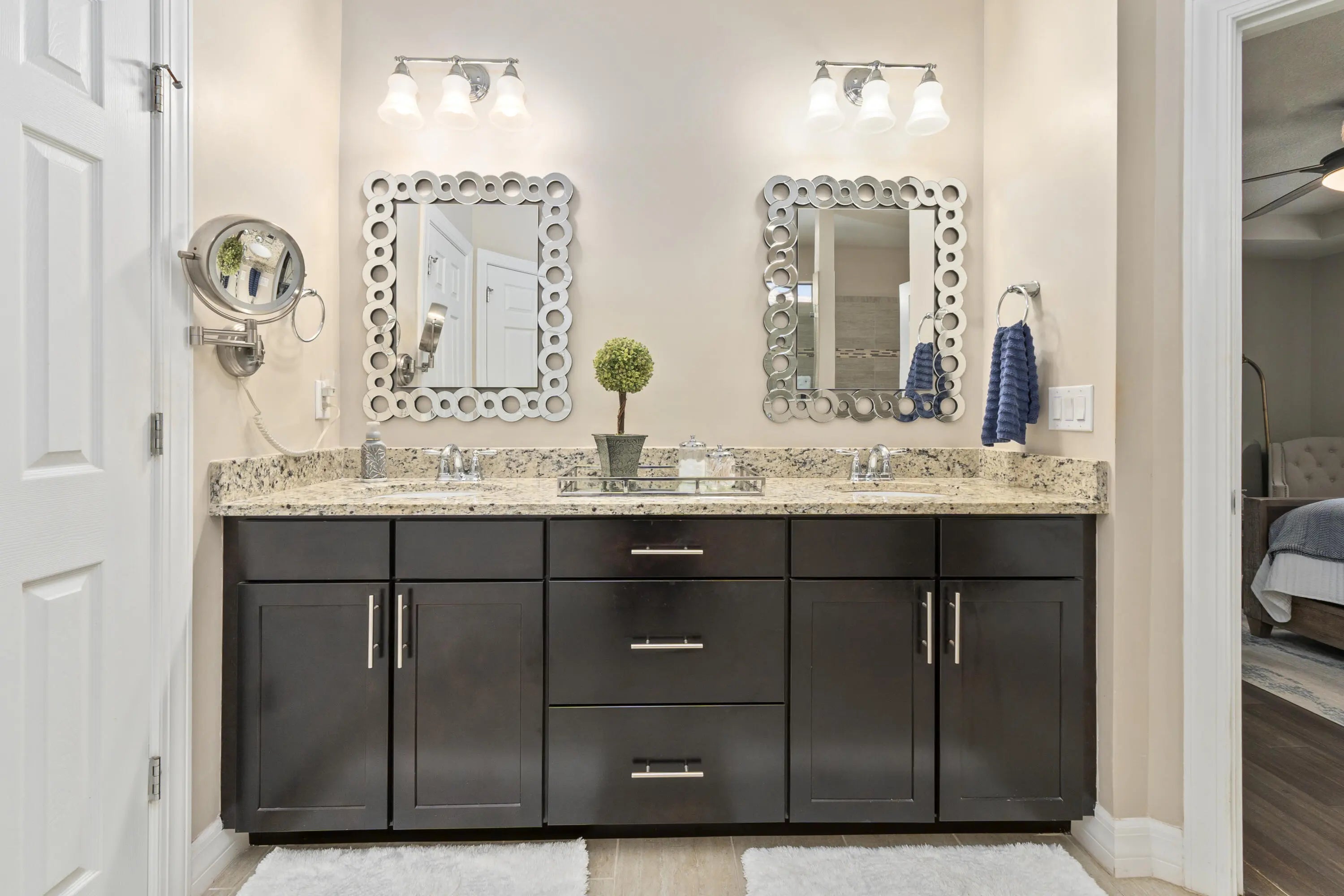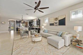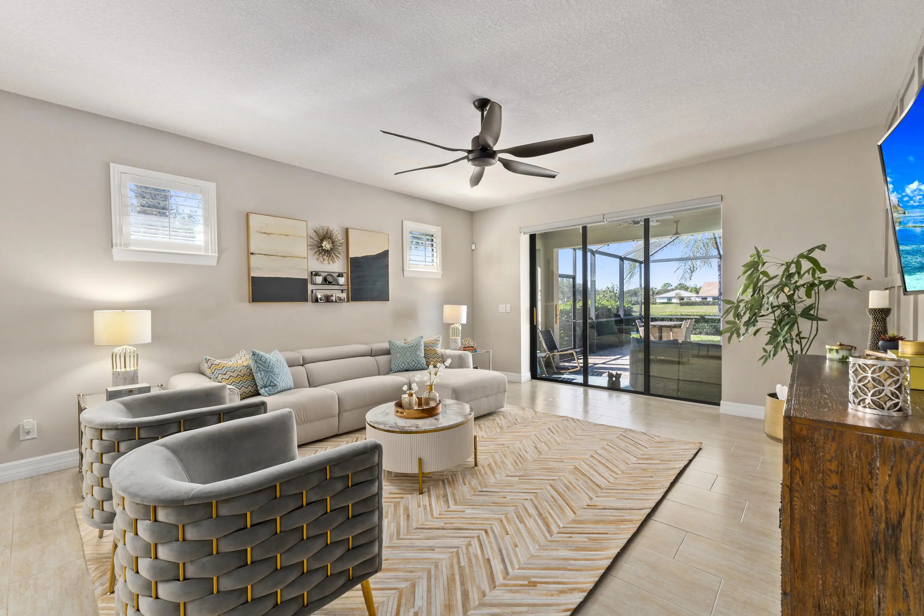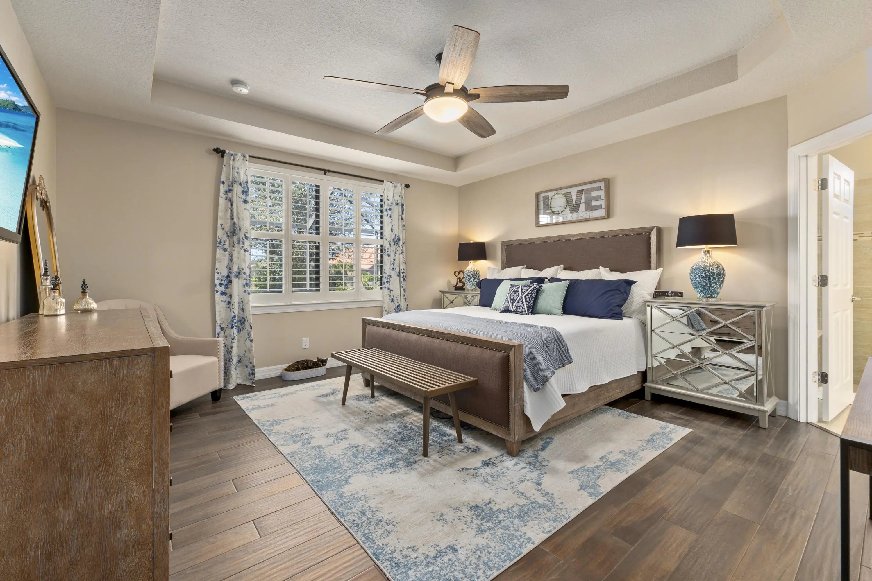 CBS 3Bed +Office 2Bath Extended 2 Car Garage, situated on corner lot long lake views. Screen Enclosed swimming pool with paver patio. Island Kitchen features 36'' Espresso cabinets with roll out trays, crown molding, Quartz counters, tile backsplash, Stainless Steel appliances, walk-in pantry has custom shelves, gas range, dry bar area with beverage cooler. Special features include, 16KW Generac whole house generator, high ceilings, Plantation shutters, custom ceiling fans, lighting & large title floors, stone accent wall in dining room & bench with shiplap in the drop zone by garage. Primary suite features wood look tile floors & tray ceilings. Walk-in closet has built-in custom cabinetry. Main bath has dual sinks & spacious tiled shower with massage jets. Comm Pool, Clubhouse, Tennis &