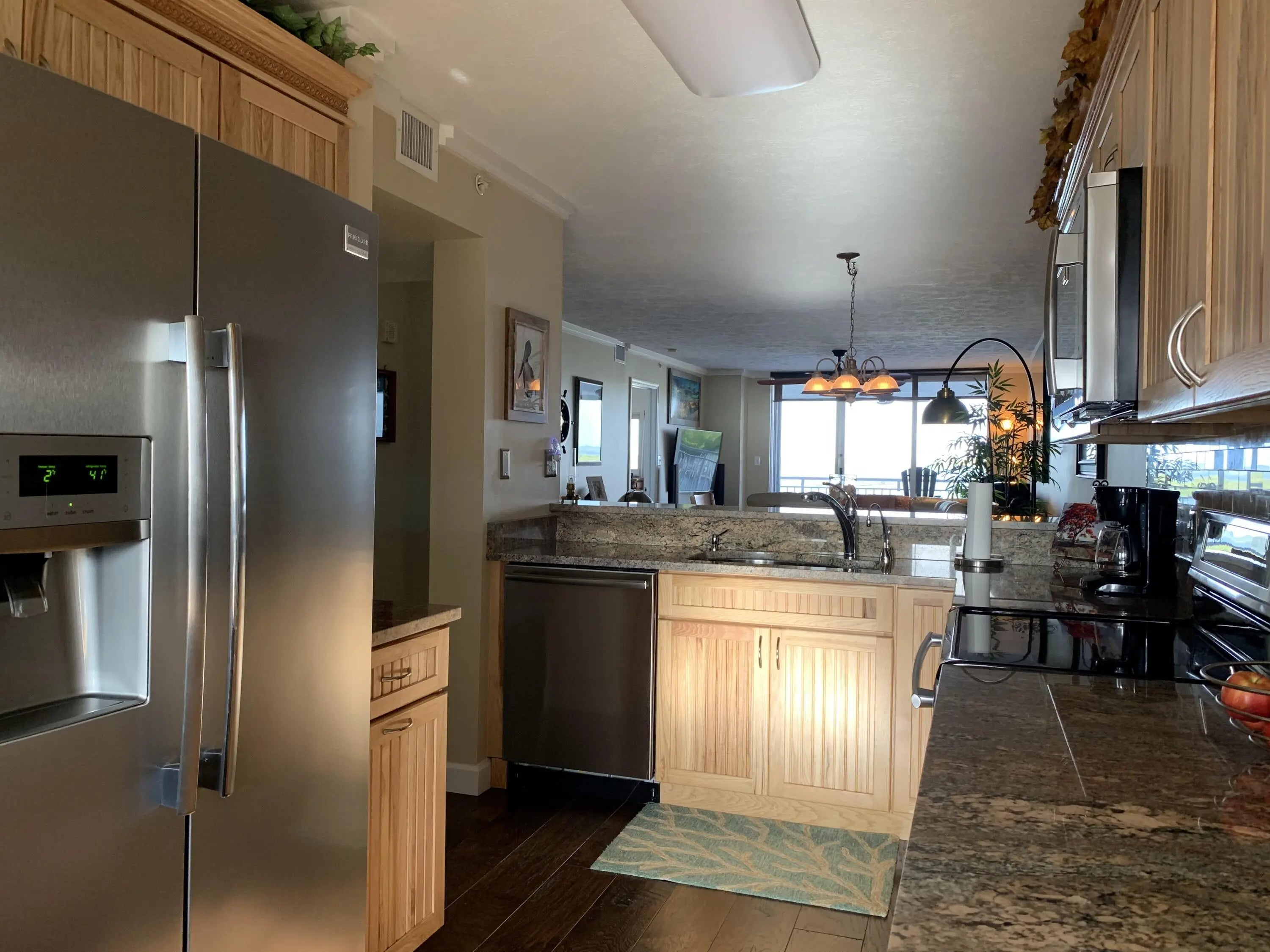 Paradise on the Beach with Million Dollar Views! Ocean Harbour North is an exclusive 100-slip private marina and beachfront community offering refined coastal living in an active recreational setting. Residents enjoy a pristine private beach, direct boating access to the Indian River and the Atlantic Ocean, and resort-style amenities including two pools, two clubhouses, and tennis, and pickleball courts. This elegant 6th-floor residence in the Towers Building captures sweeping ocean and river views and is offered fully furnished with high-quality furnishings throughout. Interior appointments include custom granite countertops in the kitchen and baths,KraftMaid hickory kitchen cabinetry, rich hickory wood flooring, and travertine natural stone in both the primary and guest bathrooms. Extensive custom upgrades enhance both comfort and design. Carport included. Don't miss this turnkey opportunity to begin living paradise today!