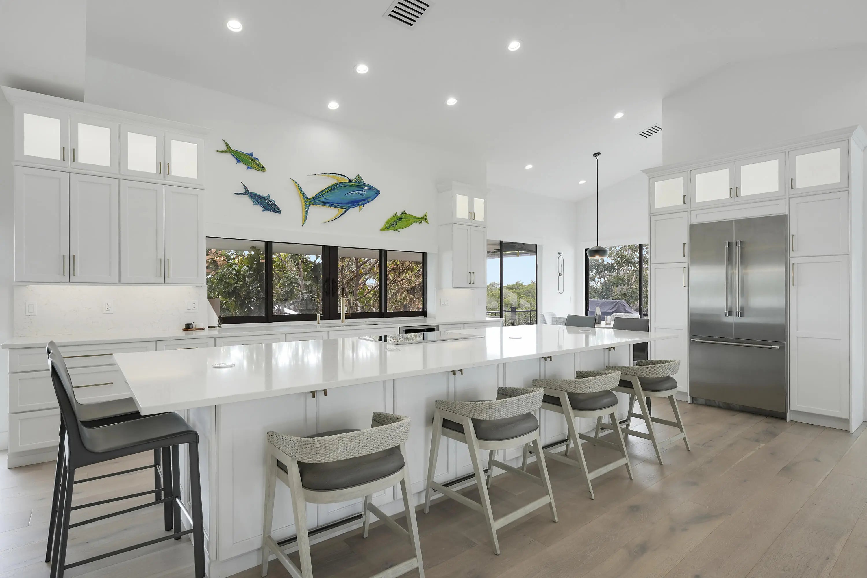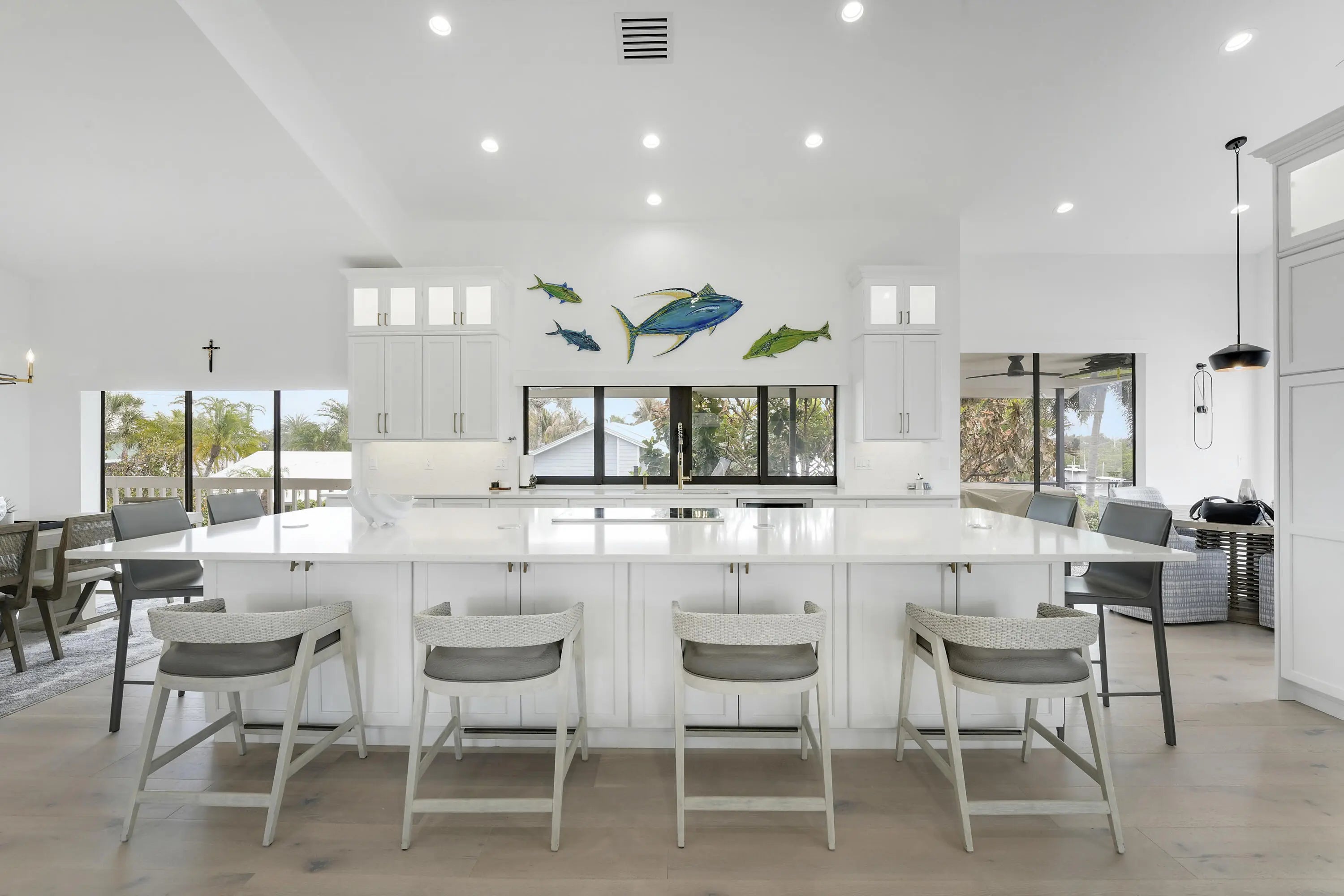 Welcome to the exclusive gated community of Mariner Cay! This Coastal-Modern waterfront home features a spacious 5-bedroom, 4.5-bathroom layout, offering a perfect blend of luxury and comfort across 3,960 living square feet. Set on a near .5-acre corner lot, this Newly Renovated residence showcases a modern coastal aesthetic with an open floor plan that seamlessly integrates indoor and outdoor living. Enjoy the ease of a split floor plan, providing privacy and space for family and guests. Equipped with a private dock and TWO boat lifts, this home is perfect for boating enthusiasts. Only minutes from Stuart's finest waterfront restaurants, the intracoastal, and offshore fishing. This location is unmatched! Schedule your private tour today!