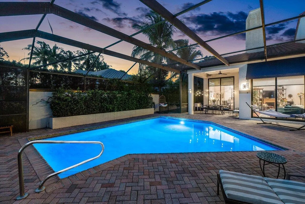 This charming 3 bedroom, 3 bathroom residence is located in the coveted Equestrian Club Estates, just a short walk or golf cart ride to the Wellington International Equestrian Center. The open floor plan is enhanced by large windows that flood the home with natural light creating an ideal setting for both entertaining and everyday enjoyment. The primary suite is a private retreat featuring a spacious bedroom and spa-like bath with steam shower. Two additional bedrooms offer en-suite baths and comfortable accommodations for family and guests. Outdoors, enjoy stunning sunset views from the pool overlooking the water and fully fenced backyard.
