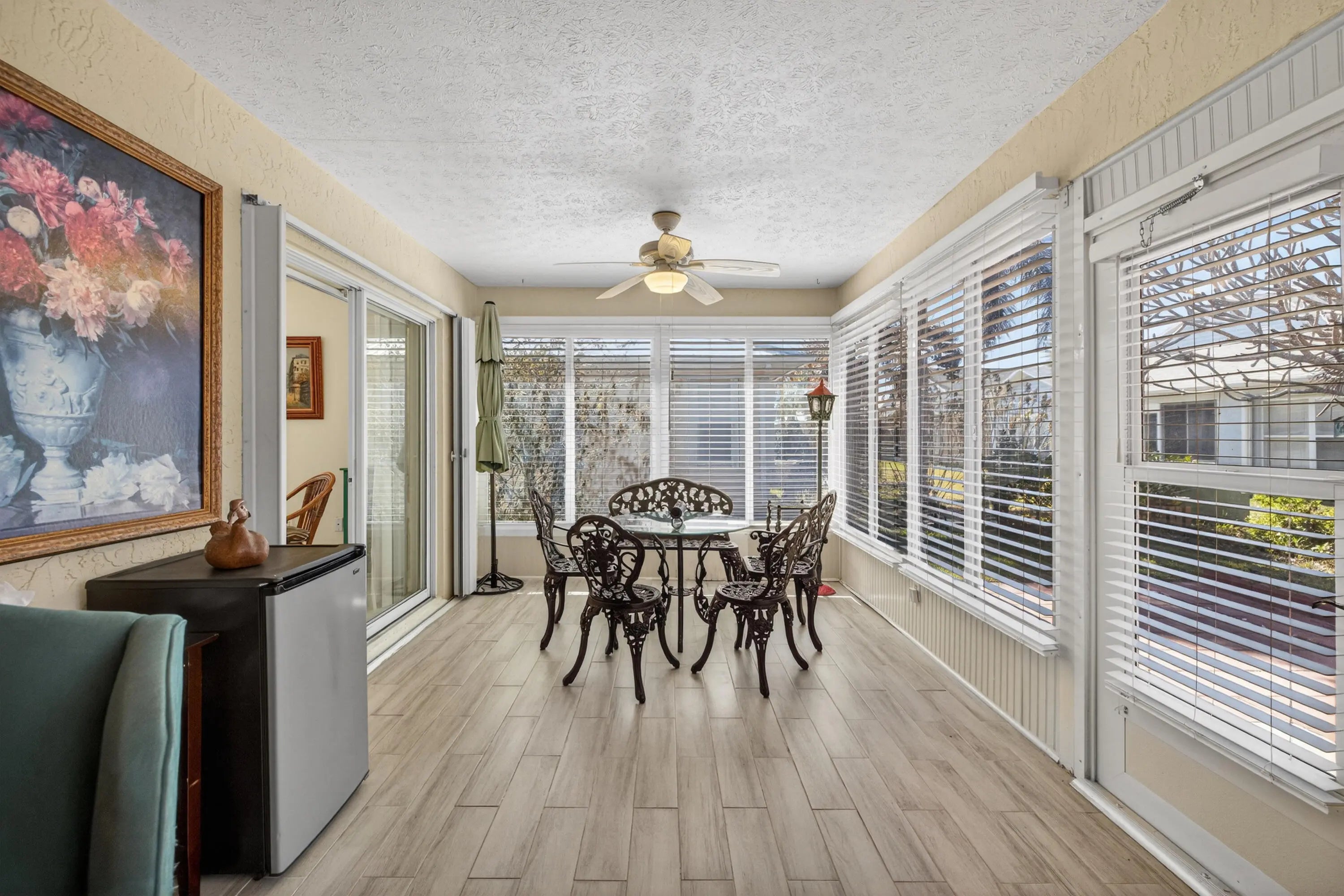 Stunning 3-bedroom, 2-bath CBS home built in 1997, offering comfort, style, and low-maintenance living. This well-cared-for residence features tile and laminate flooring throughout and a bright, updated white kitchen with modern granite countertops. Major improvement includes a roof replaced approximately in 2015, providing added peace of mind. Fully enclosed porch. Furniture is negotiable. Located in Spanish Lakes Fairway, a 55+ active adult community with a 99-year land lease, the monthly fee of $620.15 covers lawn maintenance, trash collection, and unlimited use of the community's extensive amenities. Residents enjoy heated pools, 18-hole Golf Course, pickleball, tennis courts, shuffleboard, bocce ball, fitness centers, saunas, billiards, arts and crafts and more!