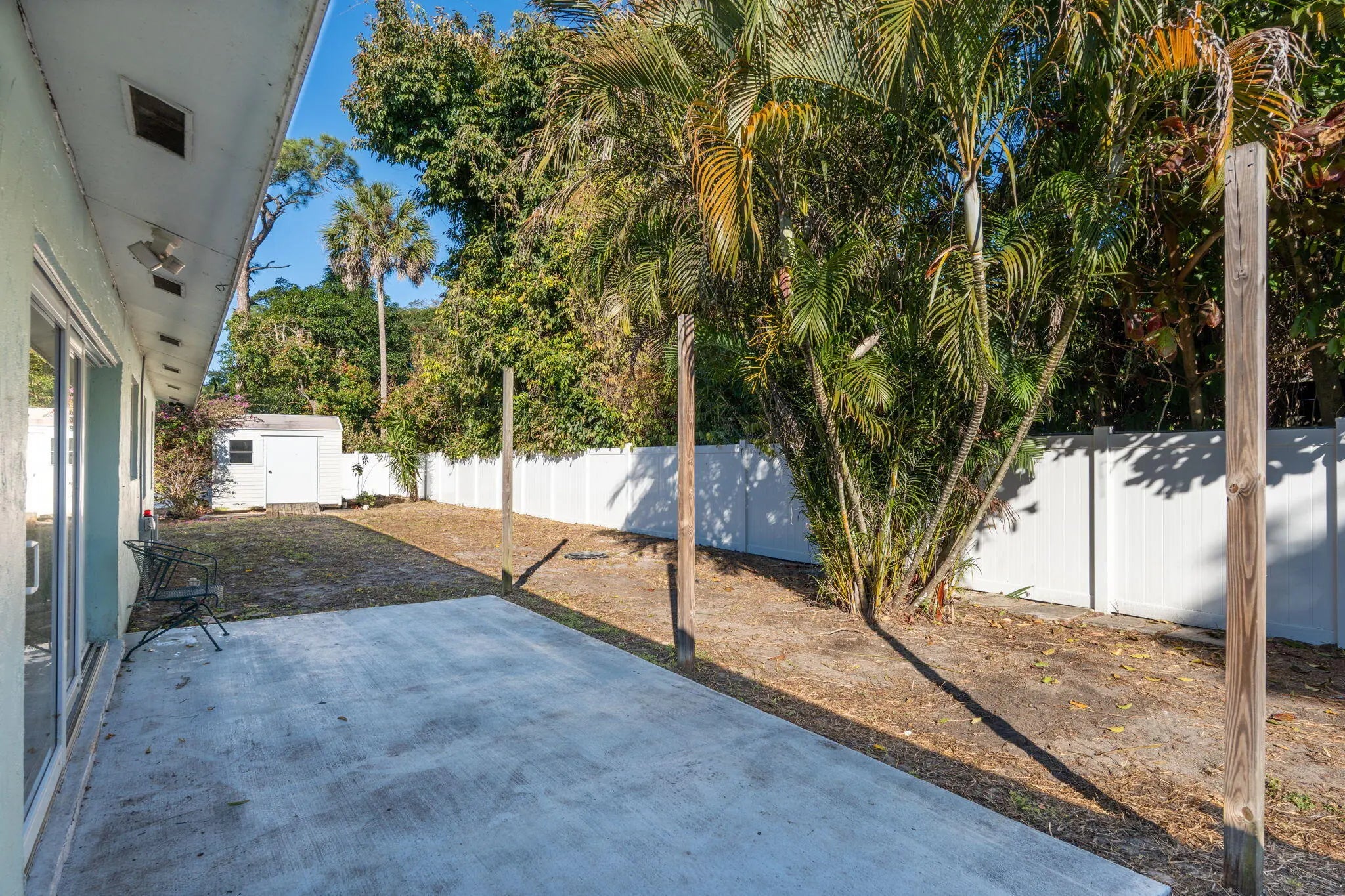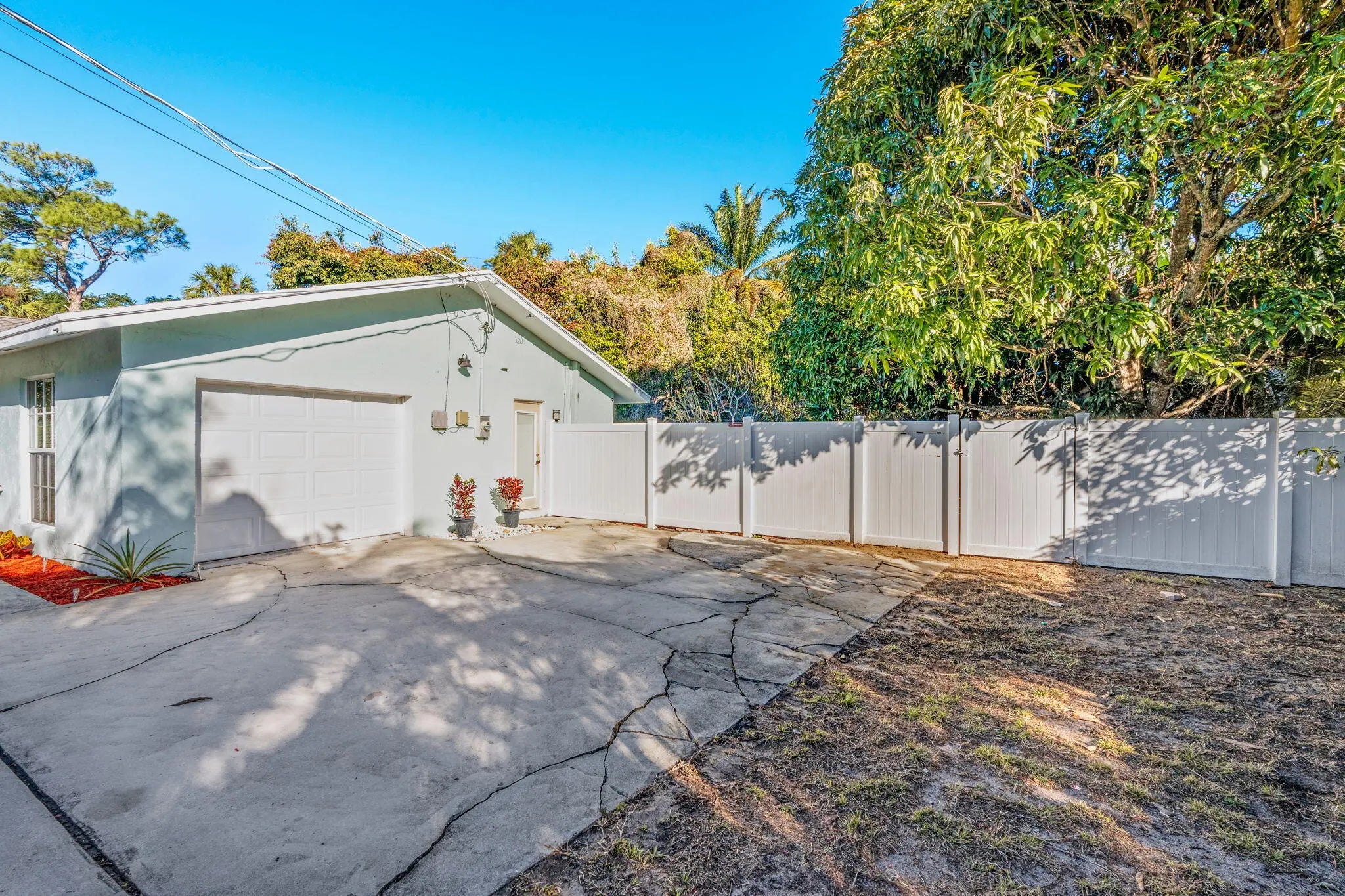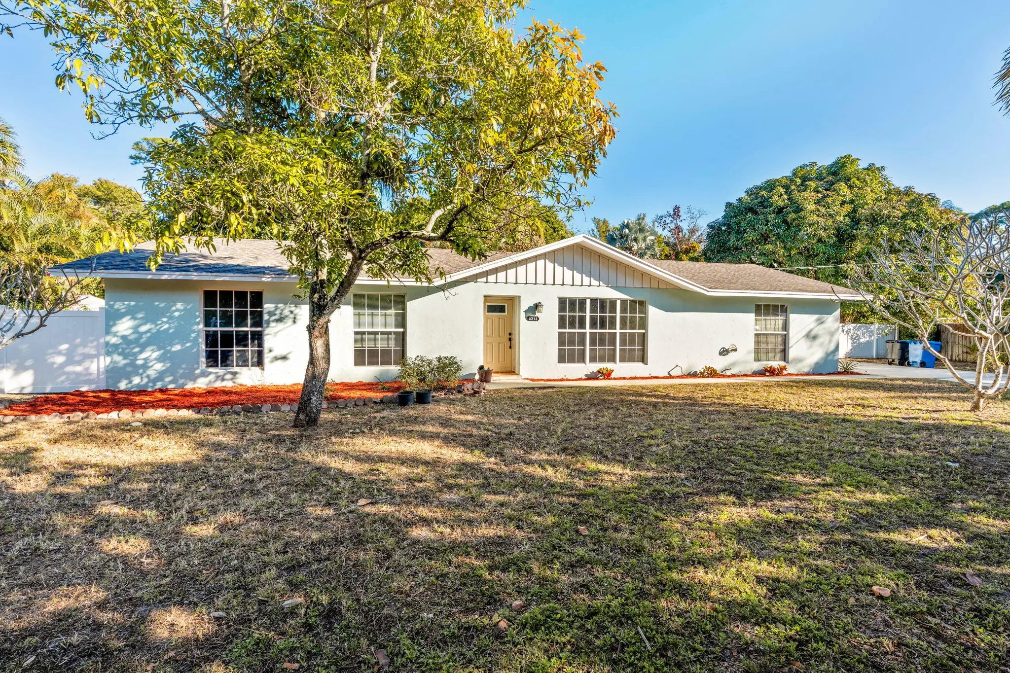Located in the non-HOA community of Haverhill Riding Estates, this CBS 3-bedroom, 2-bath ranch home sits on a fully fenced 15,000 sq ft lot with mature tropical fruit trees. Interior features include textured plank-style tile flooring, recessed lighting, and a kitchen with stainless steel appliances. Impact windows and doors provide added protection and efficiency. Additional upgrades include an oversized one-car garage with generator outlet, washer/dryer hookup, and updated electrical panel. The spacious backyard offers ample room for a pool, RV, boat, or expanded outdoor living. A permitted hurricane-rated shed, reverse osmosis system, and owned water softener are included. Conveniently located within walking distance to Haverhill Park. No HOA. Welcome to 5213 Bethany Lane, offering space, flexibility, and long-term potential in a quiet residential setting. The fully fenced backyard provides privacy and versatility, making it ideal for outdoor entertaining, gardening, recreational storage, or future pool installation. The 15,000 sq ft lot supports a variety of lifestyle needs rarely found at this price point. The home's solid CBS construction, impact-rated openings, upgraded electrical system, and water filtration systems create a strong foundation for buyers seeking both comfort and value. Situated just minutes from major conveniences while maintaining a peaceful neighborhood atmosphere, this property offers a unique opportunity to own a sizable lot without HOA restrictions.