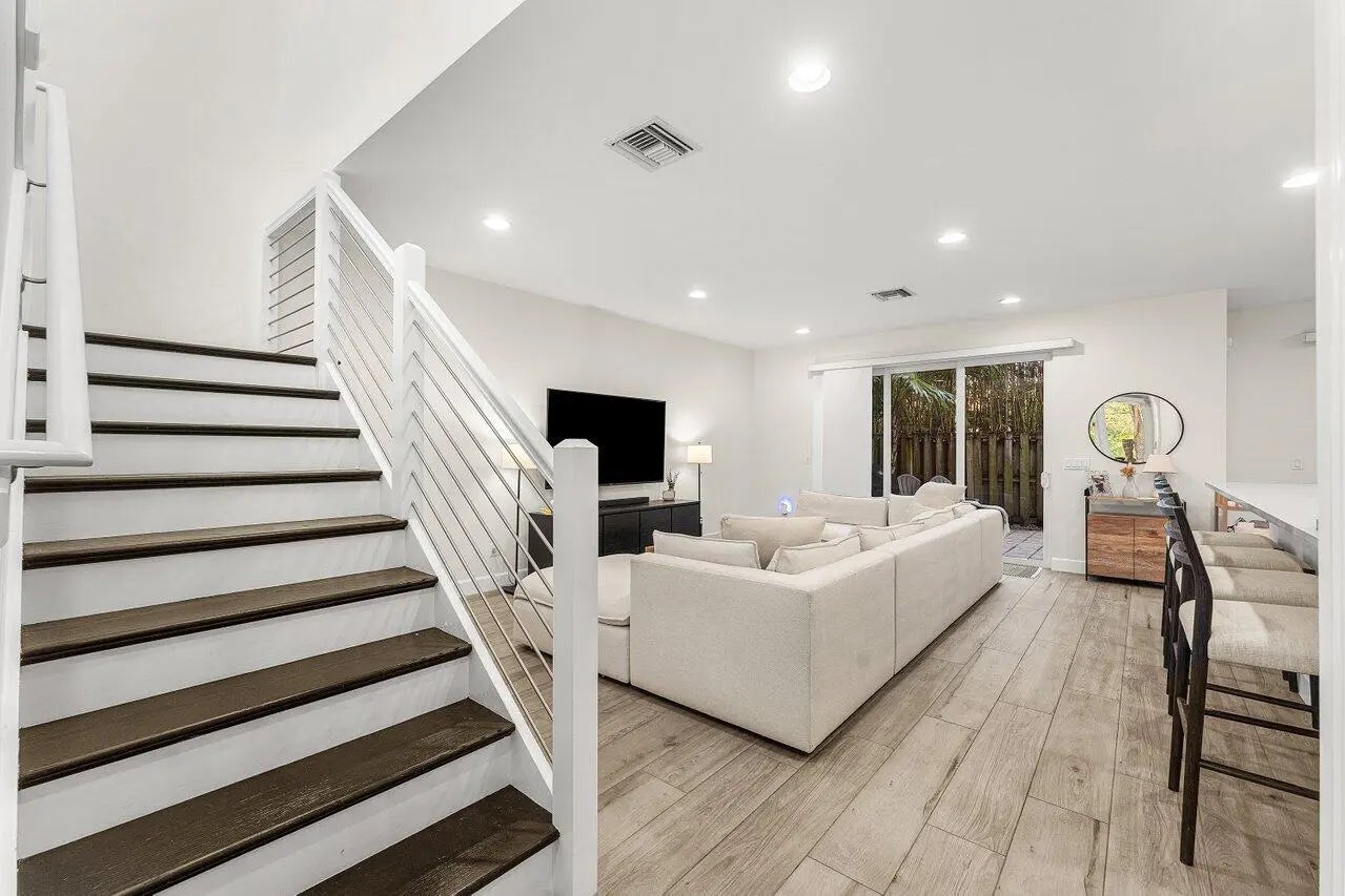 This stunning 3 BD, 2.5 BA townhome offers refined living with updated finishes throughout and a thoughtfully designed layout ideal for both everyday comfort and entertaining. The inviting living room flows seamlessly from the beautifully appointed kitchen, creating a natural gathering space for relaxed evenings and effortless hosting. The kitchen is as functional as it is stylish, featuring a well designed layout ideal for cooking and entertaining, generous storage, and abundant counter space. With ample bar seating and an open connection to the living area, it becomes the warm center of the home. Tucked just off the kitchen, a charming butler's pantry offers the perfect cozy coffee corner while providing valuable additional storage and prep space. Upstairs, the light filled primary suite serves as a serene retreat, complete with an updated en suite bath and a spacious walk in closet. Two additional bedrooms are also located on the upper level and share a full bathroom conveniently positioned off the connecting hallway, creating a functional and well appointed layout for family, guests, or a home office. Outdoors, a private grassy area offers a peaceful extension of the living space, ready to be transformed into your own outdoor oasis for lounging, entertaining, or enjoying the South Florida sunshine.