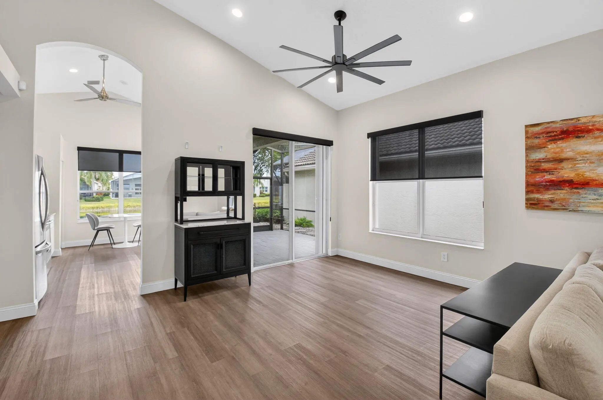 GORGEOUSLY & METICULOUSLY RENOVATED OPEN CONCEPT IMPERIAL MODEL ON THE WATER! ACCORDION SHUTTERS, ROOF-2022, GUTTERS- 2022, LUXURY VINYL WOOD LOOKING FLOORING THROUGHOUT LIVING AREAS-2022, STAINLESS STEEL APPLIANCES-2022, KITCHEN RENOVATION- 2022, UPDATED BASEBOARDS, UPDATED WINDOW TREATMENTS- SOLAR SHADES-2022. PLANTATION SHUTTERS IN ALL BEDROOMS. 3RD BEDROOM USED AS A DEN/OFFICE HAS UPDATED FRENCH DOORS-2022 AND A NEW MURPHY BED. A/C INSTALLED 2022. ENJOY SCREENED-IN LANAI WITH GORGEOUS LAKE VIEWS. KITCHEN HAS SPECTACULAR VIEWS. EXPANDED OUTSIDE PATIO & ADDED SITTING AREA. PROFESSIONALLY LANDSCAPED. ALL MEASUREMENTS ARE DEEMED ACCURATE & SHOULD BE INDEPENDENTLY VERIFIED. VALENCIA FALLS IS A GUARDED & GATED 55+ COMMUNITY WITH A RECENTLY $6M+ RENOVATED CLUBHOUSE. ABSOLUTELY GORGEOUS!