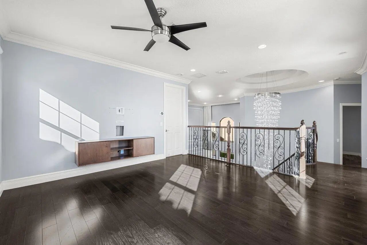 Exquisite Vizcaya Model in Bridges. Offering 5 spacious bedrooms, 4 full baths, an elegant powder room, a generous loft, and a 3-car garage, this residence seamlessly blends sophistication with comfort. Designed for both grand entertaining and intimate gatherings, the open-concept chef's kitchen is the heart of the home, featuring dual oversized islands, abundant custom cabinetry, premium finishes, and a gas range for culinary excellence. Expansive living areas are enhanced by designer porcelain tile and rich wood flooring, intricate crown molding, and impact windows throughout for both beauty and peace of mind. The luxurious primary suite offers a spa-inspired, upgraded bath retreat designed for relaxation and indulgence. Step outside to your exceptionally private backyard oasis a tranquil setting ideal for elegant outdoor entertaining or serene everyday living. Residents of The Bridges enjoy world-class, resort-style amenities including a full-service restaurant, spectacular resort pool and splash pad, state-of-the-art fitness center, basketball courts, an acclaimed tennis program, and 24/7 roving security delivering an unparalleled lifestyle of comfort, recreation, and security.
