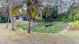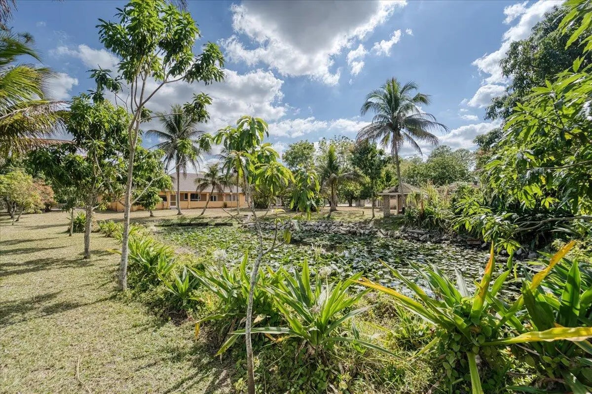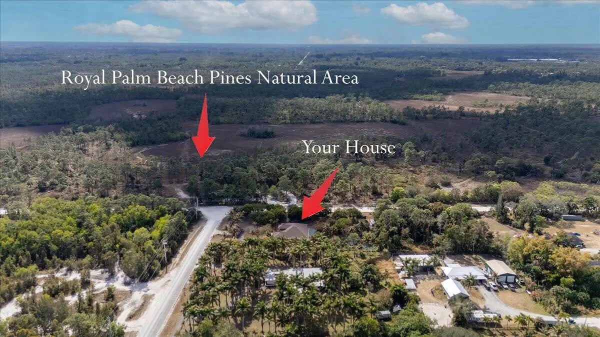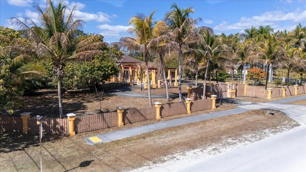A TRUE TROPICAL PARADISE! This is a rare opportunity to own a 2.35-acre corner lot on a paved road, directly across from the Royal Palm Beach Pines Preserve, offering unmatched privacy and endless space to walk, ride horses, and enjoy nature right from your doorstep. The perfect blend of acreage, location, and lifestyle. This stunning property features a new roof (2024), two new A/C units (2025), and a beautifully updated kitchen (2021) with granite countertops, solid wood cabinetry, and newer appliances. The home also offers a game room with wet bar, spacious dens that can easily serve as 5th and 6th bedrooms, a 3-car garage, and a circular driveway. A newly enclosed fence with decorative concrete columns creates an impressive and secure entrance. Outdoors, enjoy a private basketball court, multiple outbuildings with exceptional potentialideal for guest houses, studios, or income-producing opportunitiesand a serene pond surrounded by a lush tropical landscape. The property is a true fruit-lover's paradise, featuring mature jackfruit, longan, avocado, sugar cane, sapodilla, Asian plum, June plum, sugar apple, Asian apple, coconut, soursop, and mango trees. Properties with over 2 acres in this area are seldom available. With its exceptional land, solid structure, prime location, and limitless possibilities, this is a one-of-a-kind opportunity you do not want to miss.