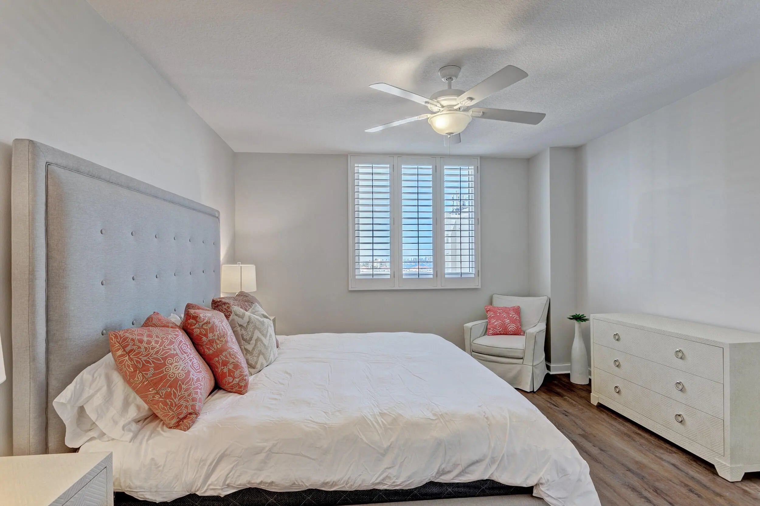 Stunning Flagler Dr. waterfront residence with breathtaking NE Intracoastal and ocean views. Renovated and furnished condo features 2 split bedrooms, 2 baths, modern kitchen with granite countertops. Light and bright floor plan, Beautiful interior finishes include plantation shutters, new wood tile floors throughout, and 2 built-in closets in the Master Suite. In-unit washer/dryer and 1 air-conditioned storage unit on the 1st floor included. One assigned parking space, with additional parking available for rent from the building. Amenities include a modern lobby, 24/7 concierge and security, 2 infinity-style pools, zen garden, business center, fitness room, kitchen and billiards. Just mins from Palm Beach Airport and beach. $5500 seasonal, $3500 off season short term, $4750 annual.