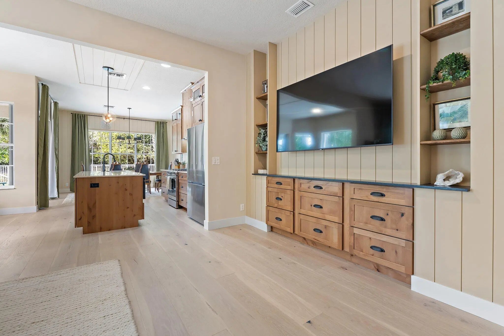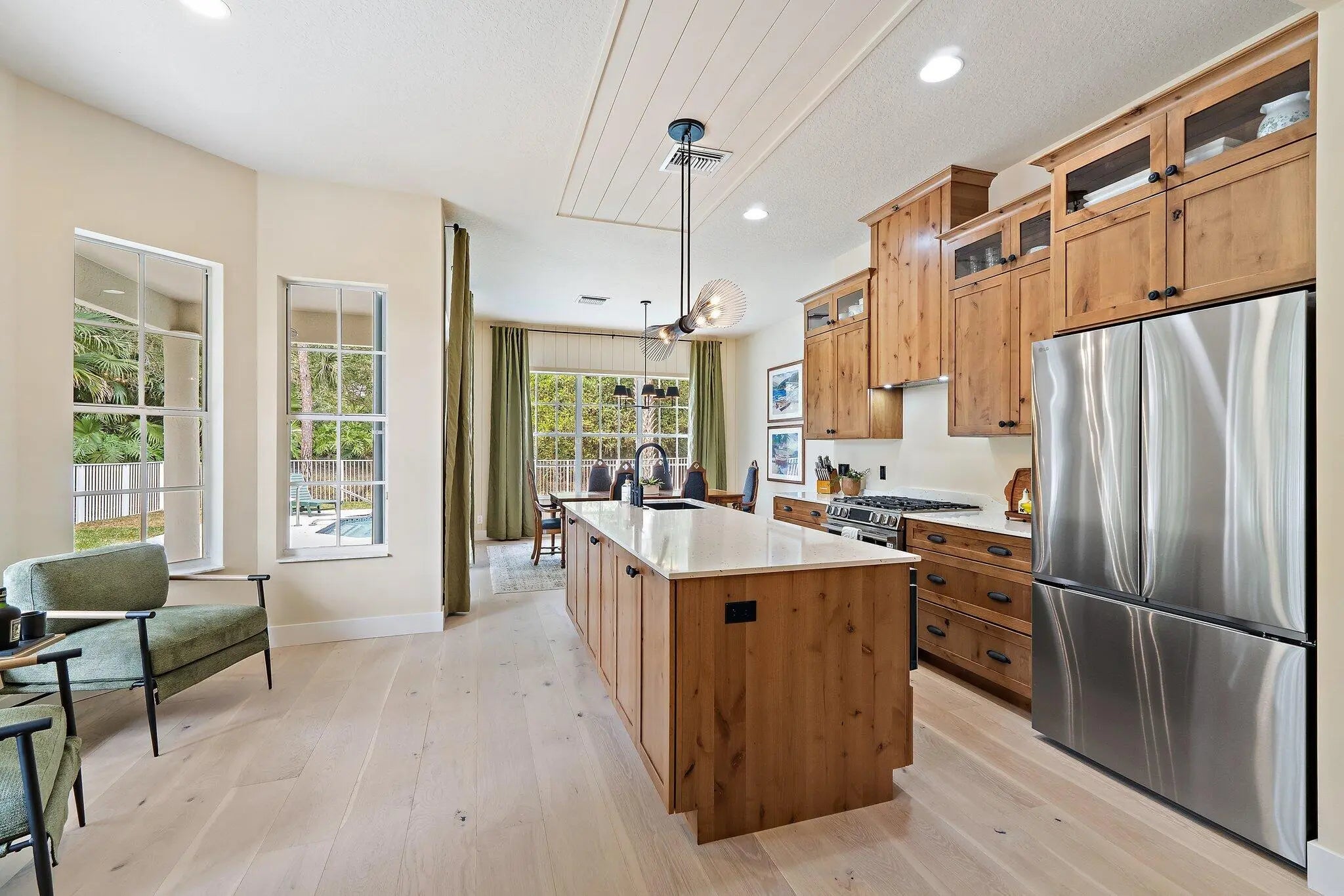 ***This is truly a home that must be experienced in person -- it shows even more beautifully than photos can capture. The finishes, natural light, and sense of privacy create an elevated living experience that can only be fully appreciated firsthand. Welcome to your move-in ready, fully renovated home in the highly sought-after community of PGA National, ideally positioned behind a 24/7 manned gate. This beautifully updated 3-bedroom, 3 full-bath pool home sits on a private CORNER LOT with an OVERSIZED FENCED BACKYARD, offering exceptional privacy, elegance, and peace of mind. Every space has been professionally remodeled with thoughtful, high-end finishes throughout. Custom rustic Alder cabinetry enhances the kitchen, bathrooms, and stunning built-in media wall. READ MORE... The chef's kitchen is both functional and visually striking, featuring a gas range, Pompeii quartz countertops, abundant storage, and designer details perfect for entertaining. The spacious primary suite is filled with natural light and overlooks the pool, complete with custom his-and-hers built-in closet systems. The primary bath features dual sinks, custom cabinetry, exquisite tile work, upgraded hardware, and a seamless glass shower enclosure. The main guest room features a built-in desk with open shelving and a pull-down Queen Murphy/wall bed that converts with just a touch. An attached ensuite full bath provides complete privacy for overnighters and true convenience for daytime office use. The second guest bedroom is generously sized with custom closet built-ins and beautiful natural light. Wide-plank European Oak engineered flooring flows throughout the home. The oversized laundry room offers custom cabinetry with a new front-load washer and dryer. Recent exterior improvements enhance curb appeal and longevity, including a freshly painted exterior (2025), roof pressure washed (2025), new landscaping and sod, and a freshly painted pool deck surrounding the pristine swimming pool. Accordion shutters provide added storm protection. Major system upgrades include a 2014 roof, natural gas tankless water heater, and a Generac whole-house generator for uninterrupted comfort. Step outside to your PRIVATE BACKYARD RETREAT, a true standout feature. Situated on an oversized corner lot with ultimate privacy, this expansive fenced backyard offers rare space and seclusion within PGA National. The BEAUTIFUL, PRISTINE POOL is surrounded by a freshly painted deck and lush landscaping, creating the perfect setting for entertaining, sunset swims, weekend gatherings, or quiet mornings with coffee. With generous yard space beyond the pool, there is room to expand, play, or simply enjoy the open-air Florida lifestyle in complete privacy. PGA National offers optional memberships and is conveniently located near dining, shopping, and world-class amenities, delivering the ultimate Palm Beach lifestyle.