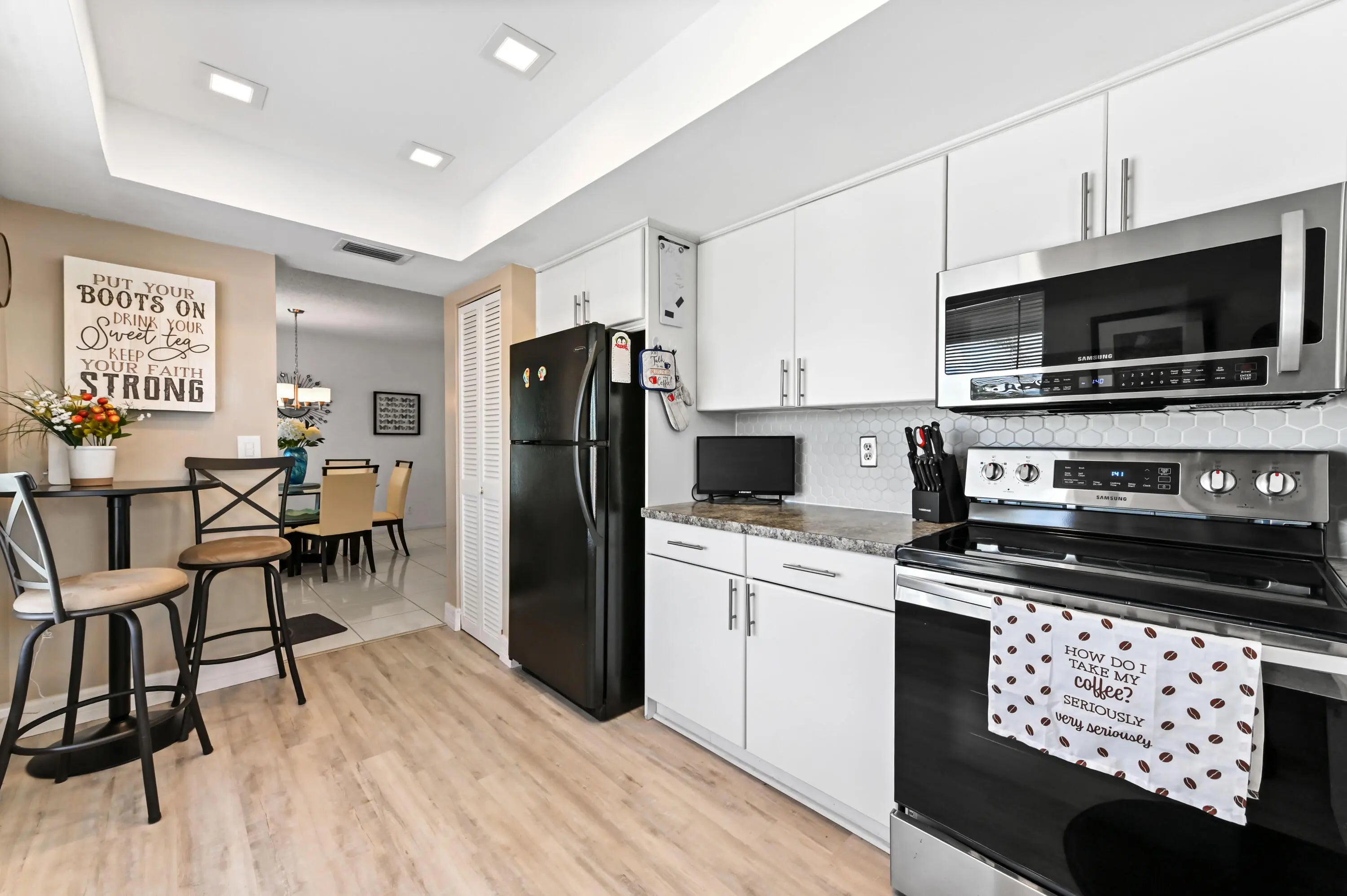 Beautifully maintained furnished 2-bedroom, 2-bath second-floor corner unit in the sought-after Palm Greens 55+ community. This light-filled residence features impact windows throughout, tile flooring, and a desirable split-bedroom floor plan for added privacy. Functional kitchen offers tray ceilings and a spacious pantry. Enjoy relaxing on the large screened balcony with tranquil views.Brand-new clubhouse is now open — a major highlight of Palm Greens — offering enhanced resort-style amenities and an active social lifestyle including tennis, pickleball, fitness, and more. A/C replaced September 2025 and water heater 2019 for added peace of mind. Prime location close to shopping, dining, and beaches. Move-in ready and perfect for enjoying the South Florida lifestyle.